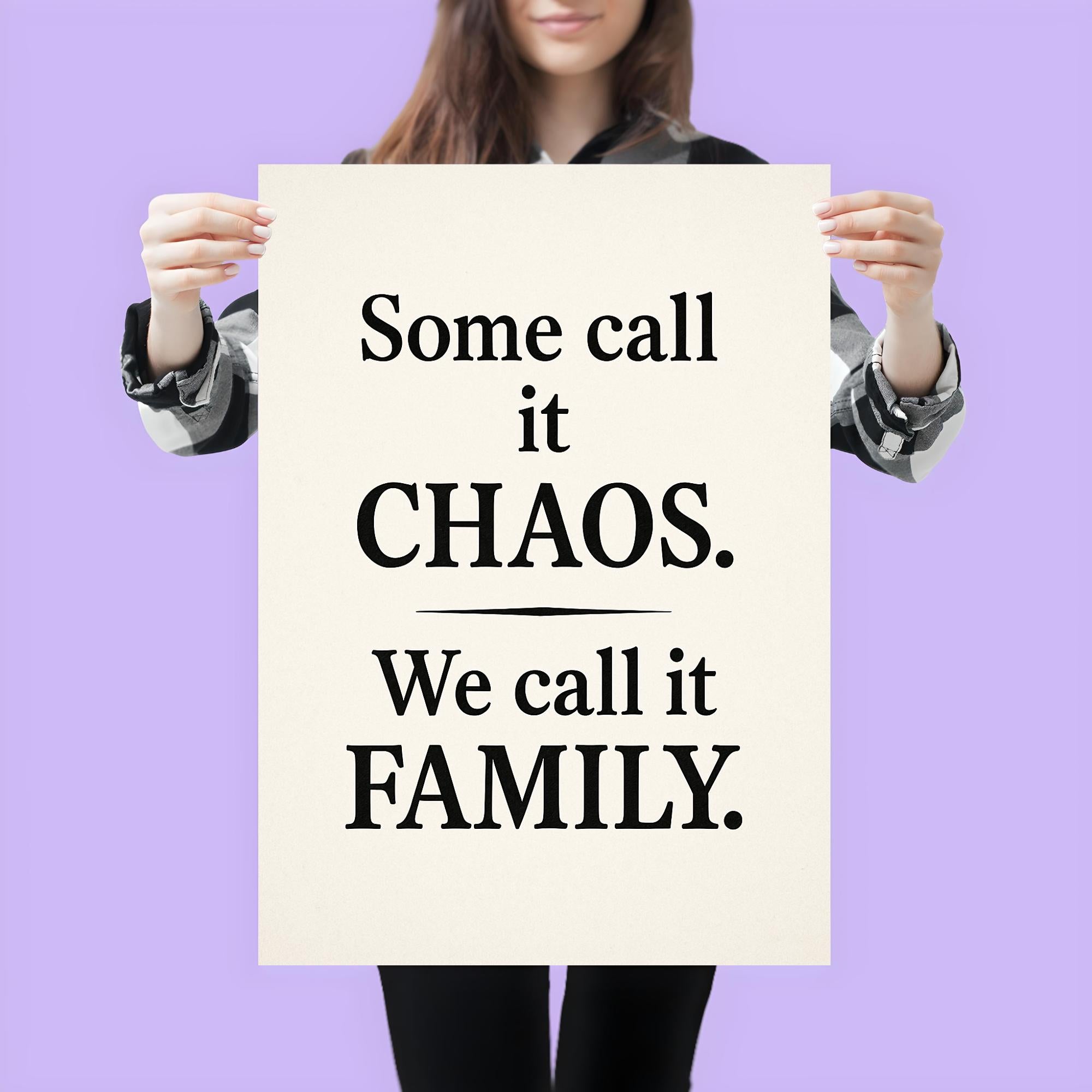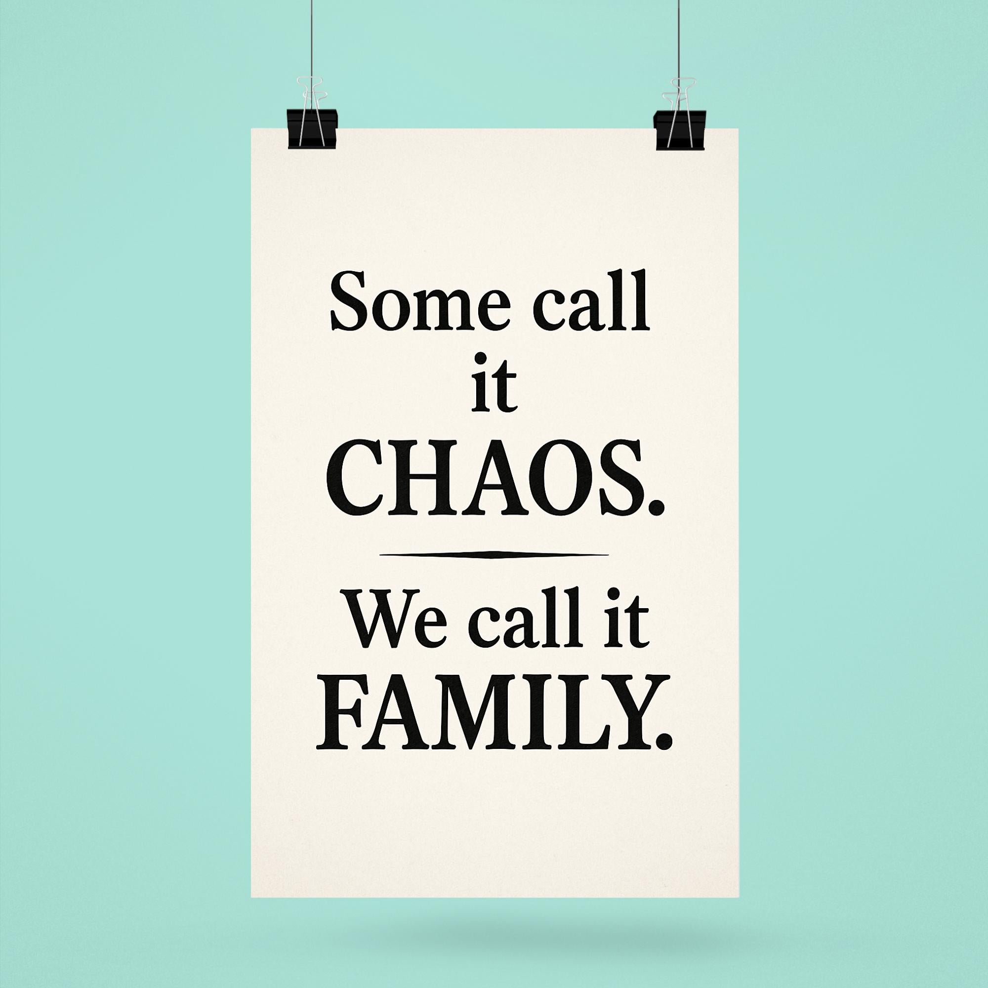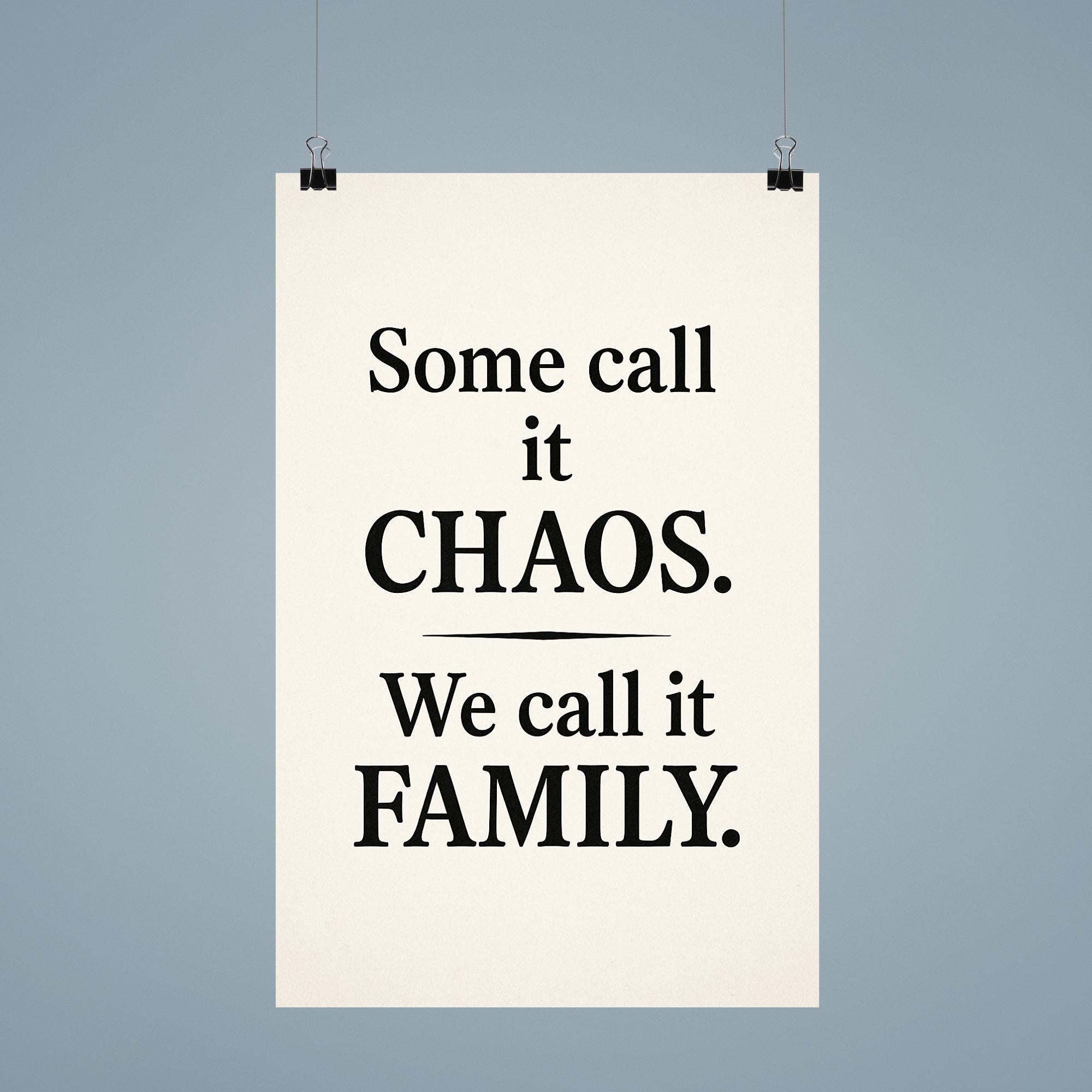 Bring a smile to your space with a poster that celebrates the beautiful mess of family life. The phrase "Some call it chaos, we call it family" captures the heart, humor, and warmth of shared moments together—perfect for every home that embraces both laughter and love.