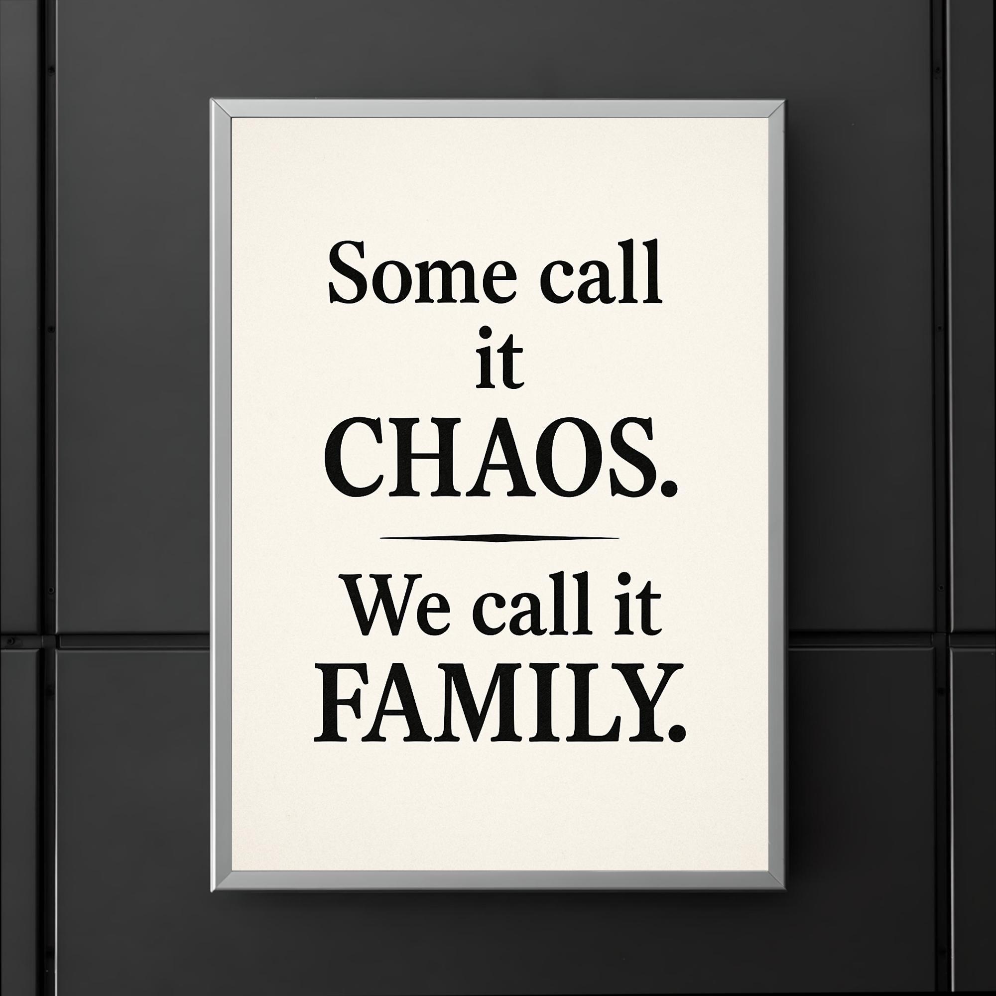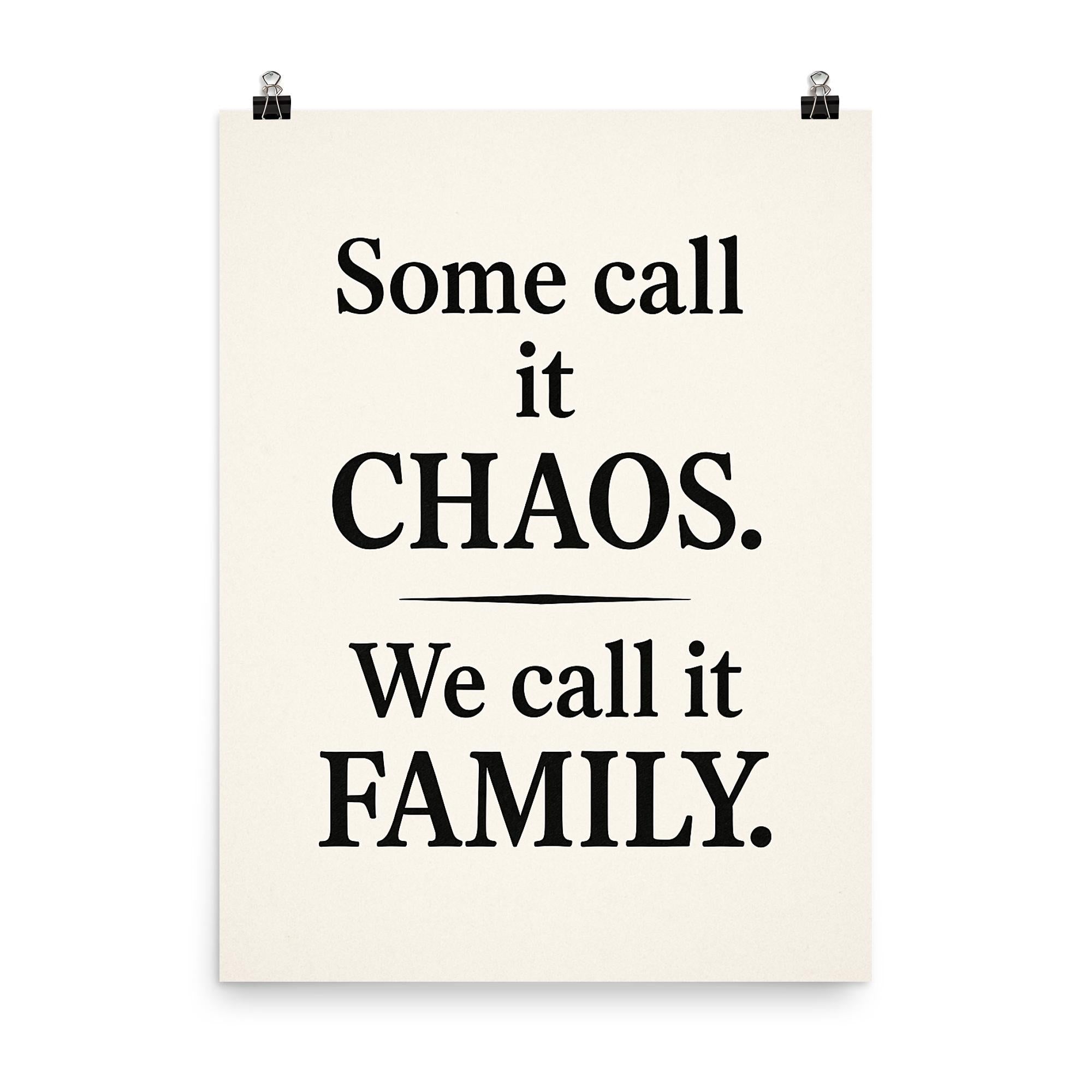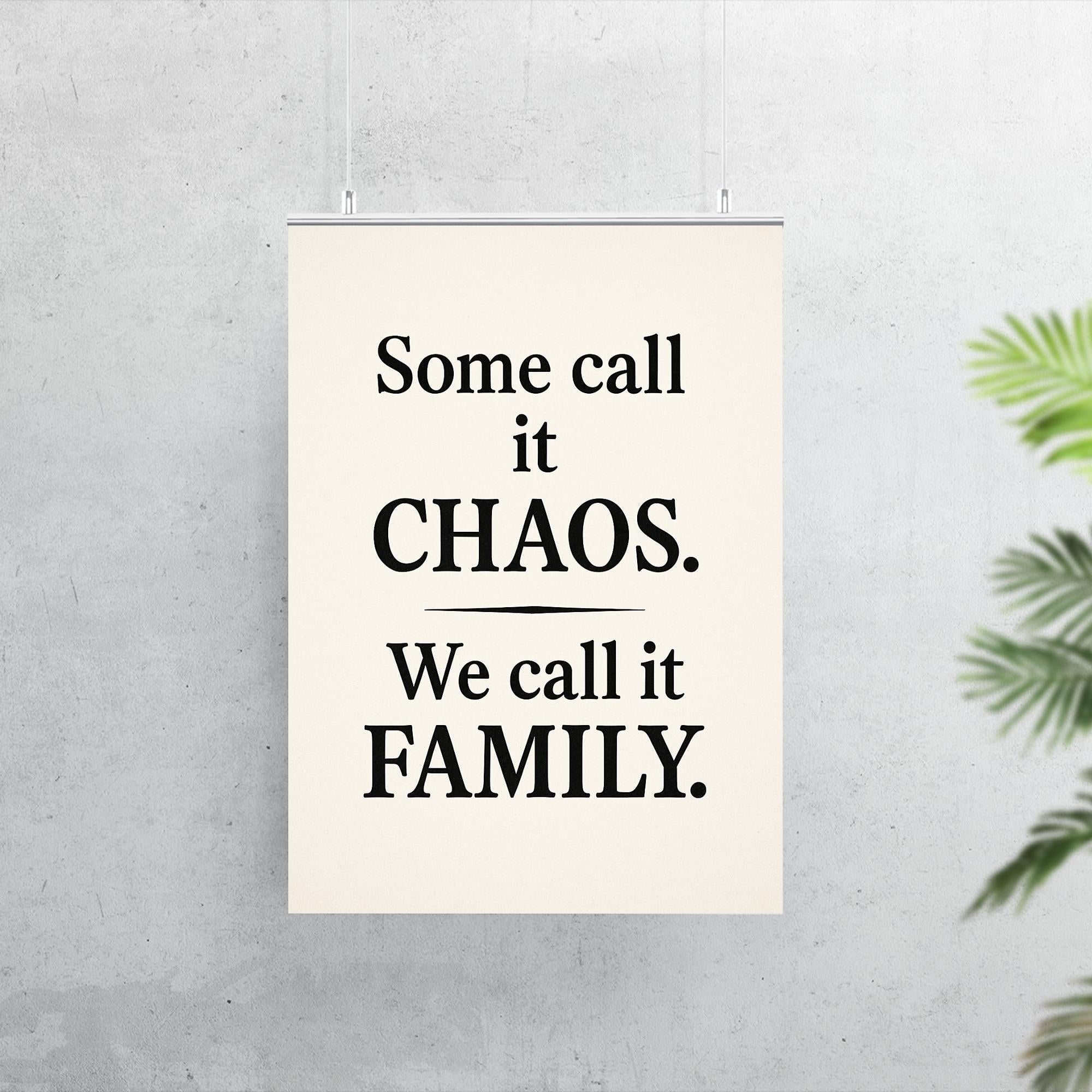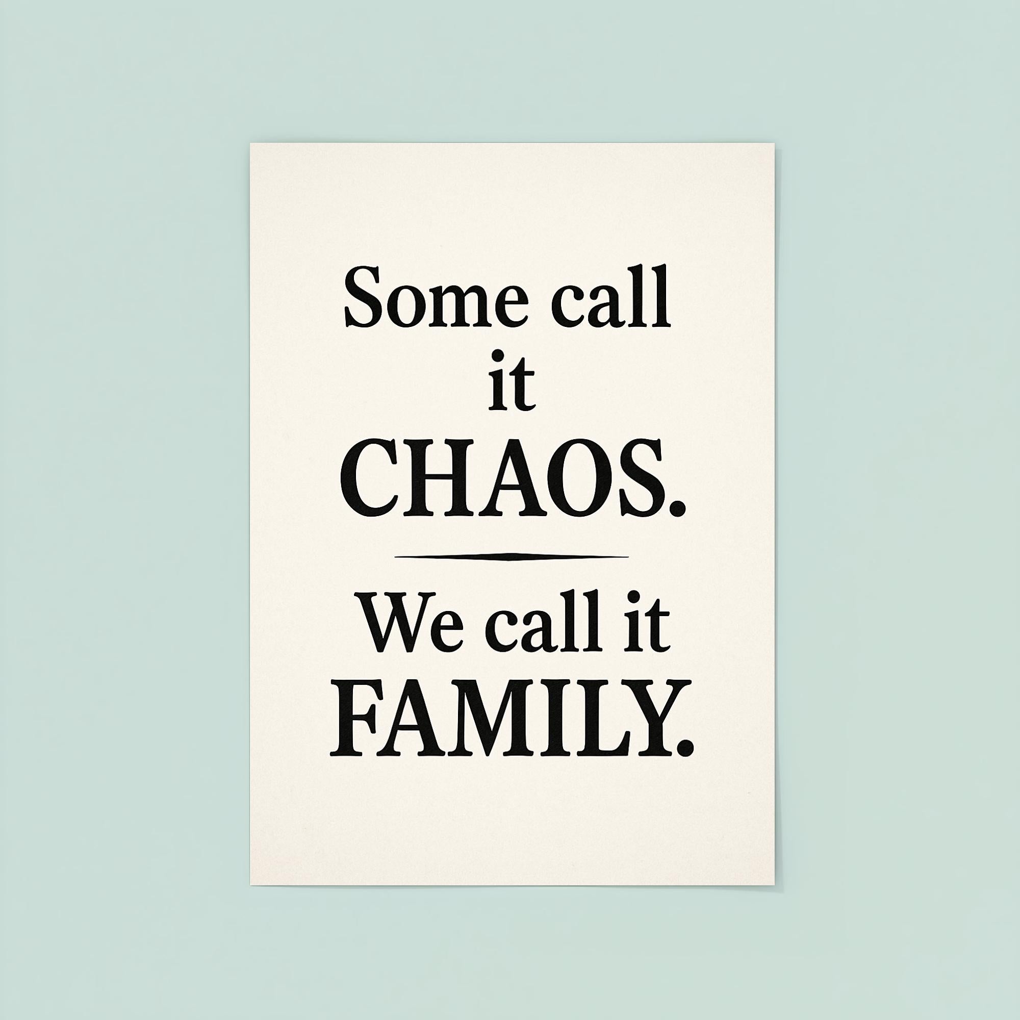 Bring a smile to your space with a poster that celebrates the beautiful mess of family life. The phrase "Some call it chaos, we call it family" captures the heart, humor, and warmth of shared moments together—perfect for every home that embraces both laughter and love.