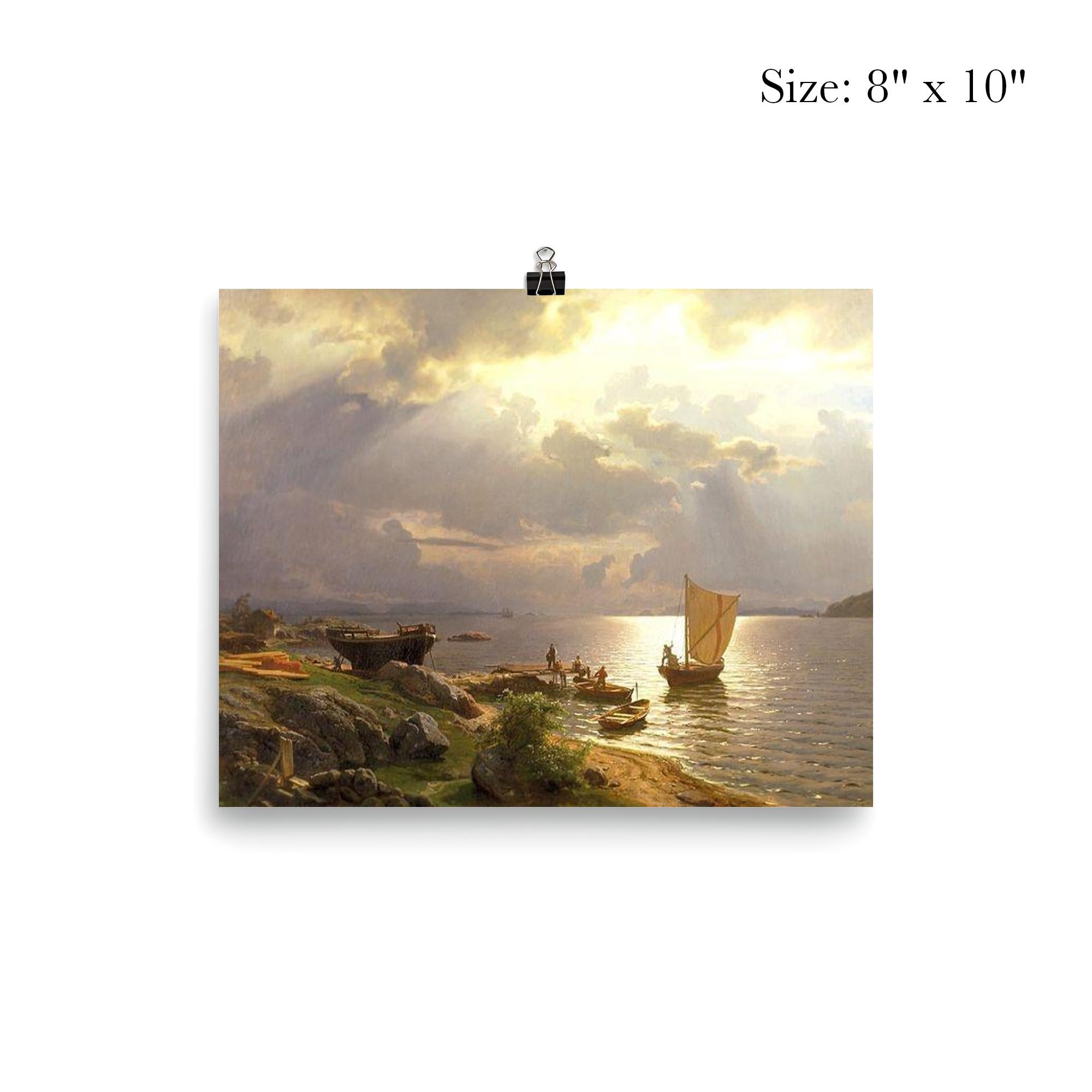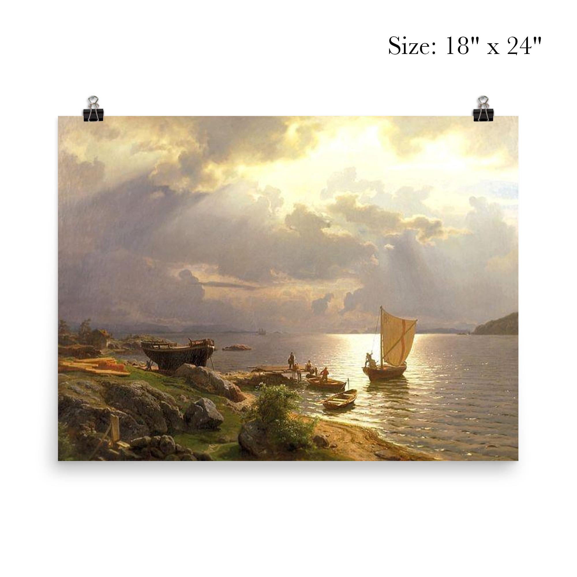 Immerse yourself in the serene beauty of Norwegian nature with "Sommerdag på Christianiafjorden" by Hans Fredrik Gude. This timeless masterpiece captures the tranquil essence of a summer day by the fjord, inviting calm and inspiration into any space. Perfect for art lovers who appreciate classic romantic landscapes, this poster brings a touch of natural elegance and peaceful reflection to your home or office.