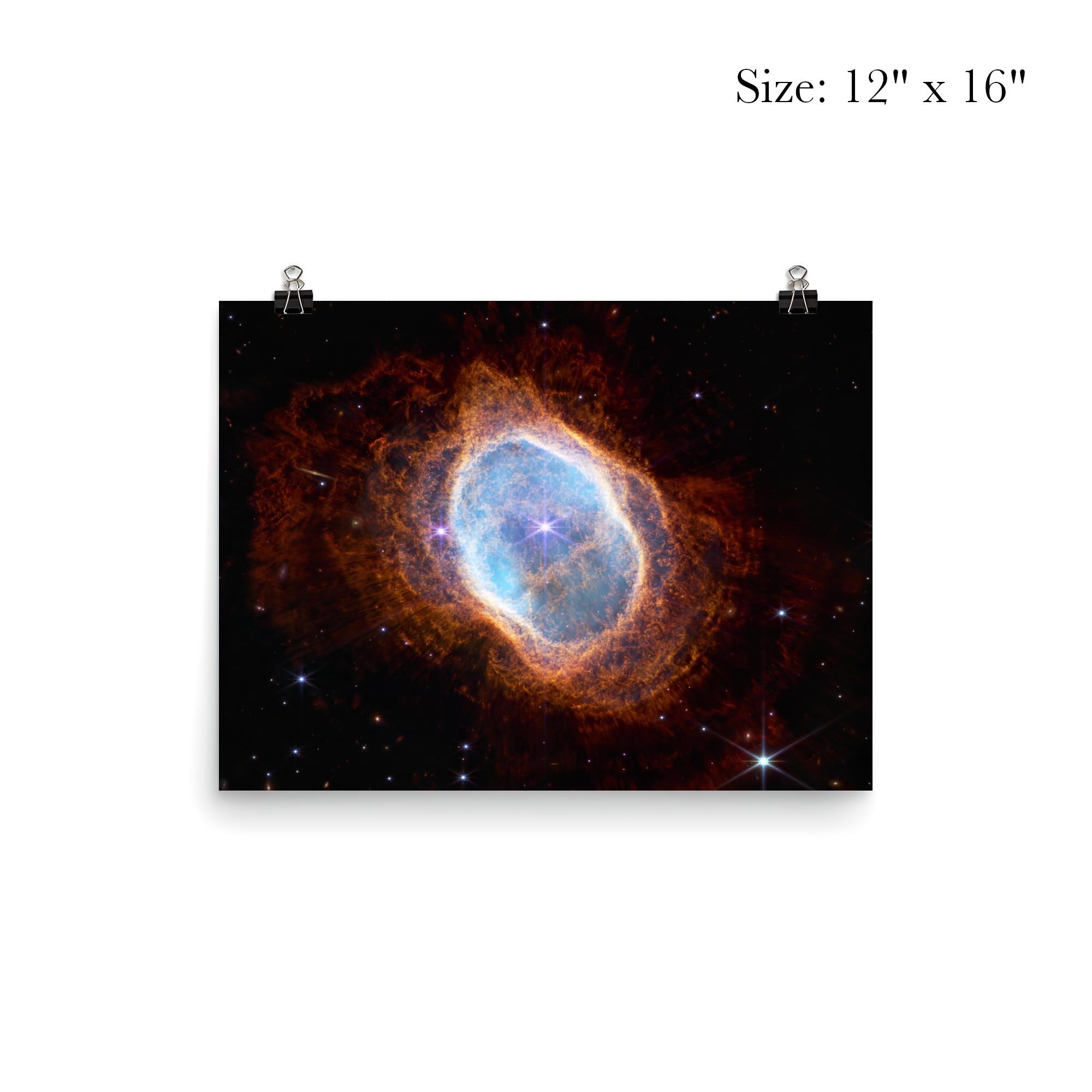 Transform your space with the breathtaking Southern Ring Nebula poster captured by the James Webb Space Telescope in 2022. This stunning print brings the awe-inspiring beauty of deep space right into your home, showcasing the intricate cosmic dance of gas and dust in vivid detail. Perfect for astronomy lovers and dreamers alike, it invites you to explore the universe every day.