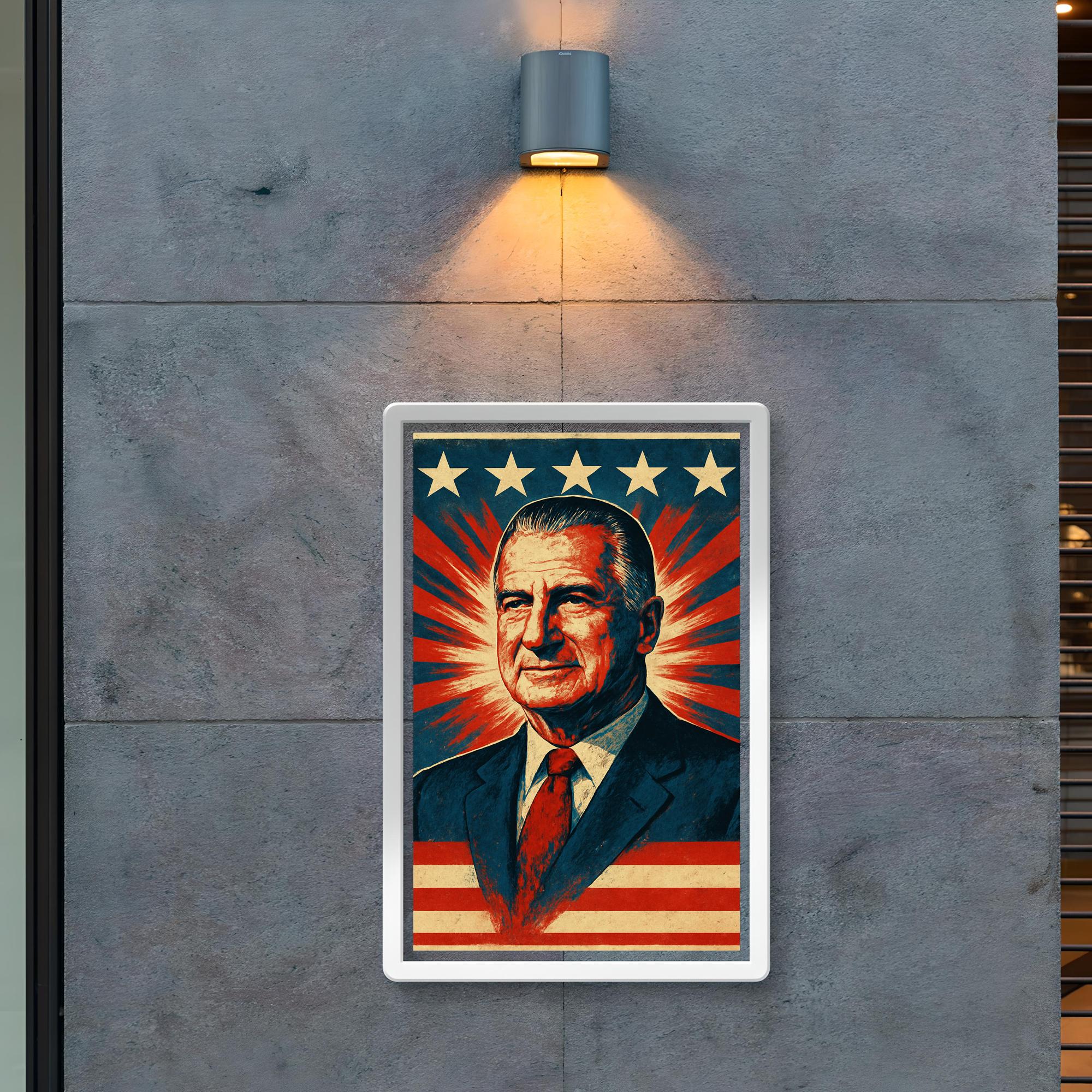 Celebrate a unique piece of American political history with this striking Spiro Agnew poster. Perfect for collectors and history enthusiasts alike, it captures the essence of a distinctive figure whose legacy continues to spark conversation. Add a bold statement to your space with this compelling tribute to a memorable chapter in U.S. politics.