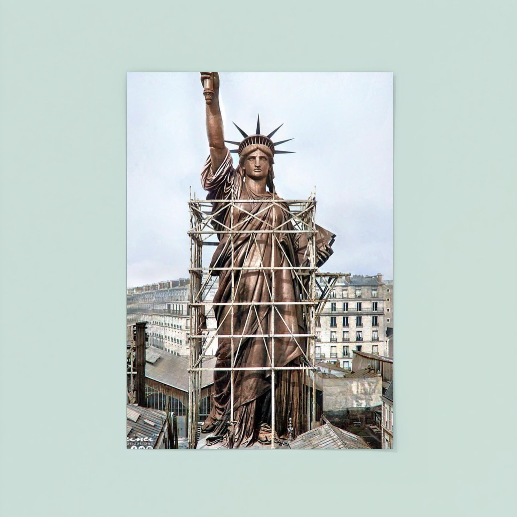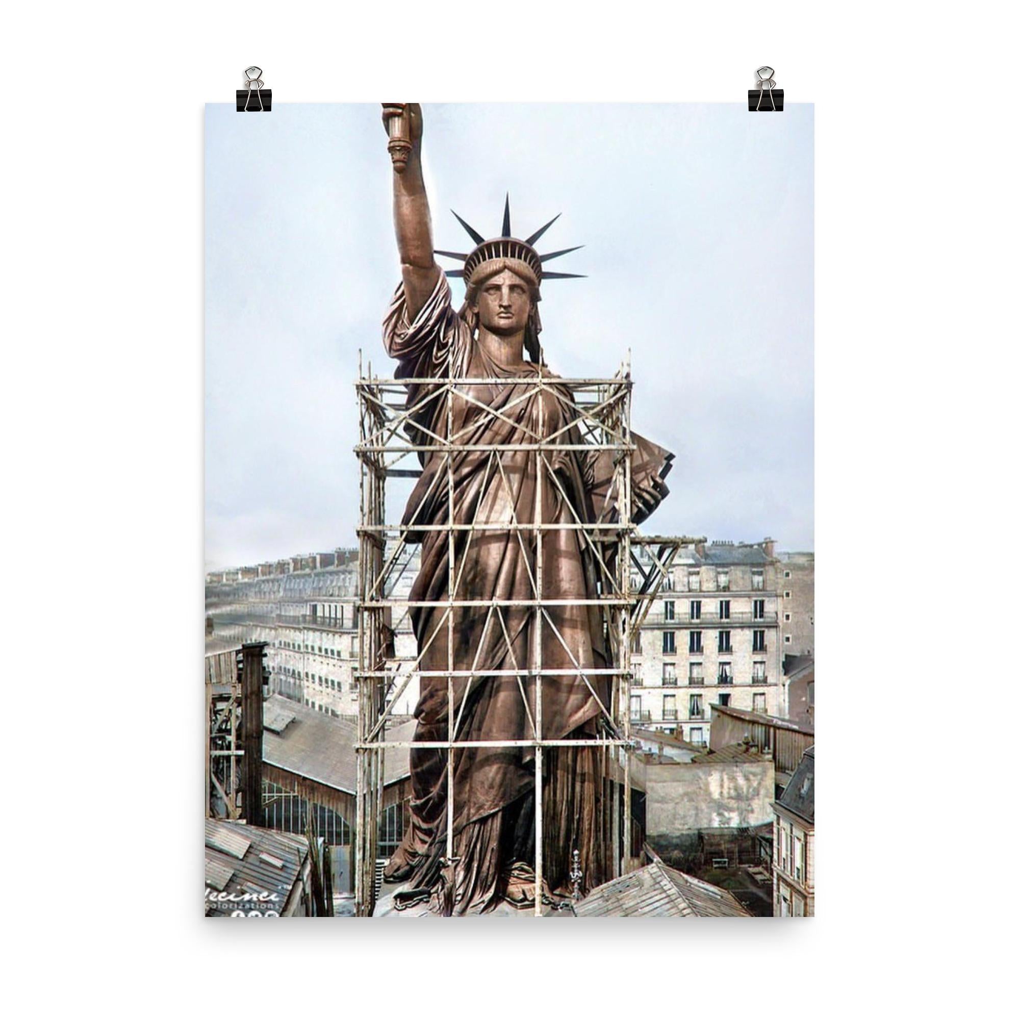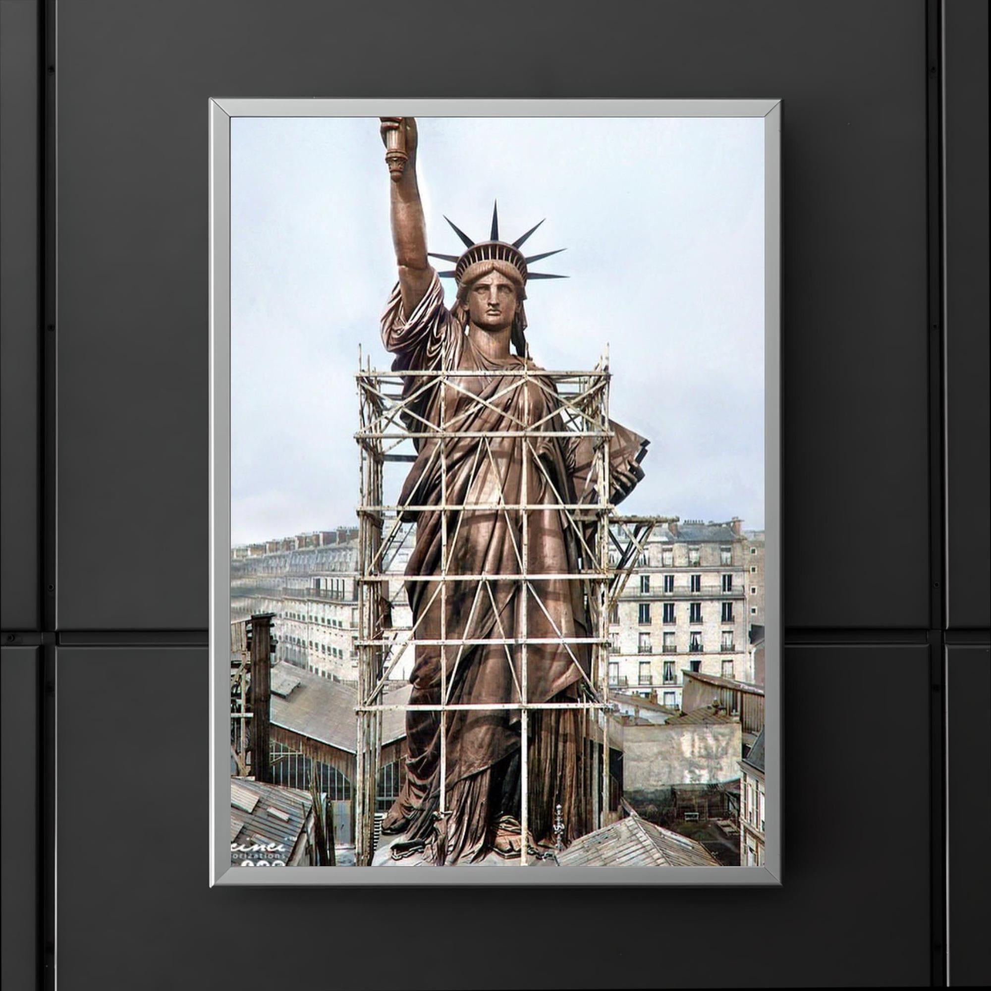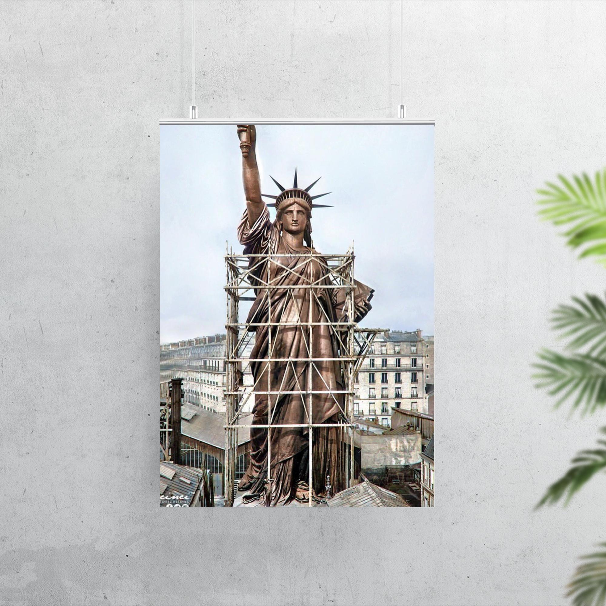 Capture a remarkable moment in history with this stunning poster of the Statue of Liberty standing proudly in Paris before its journey to New York in 1886. This timeless image offers a rare glimpse into the origins of an iconic symbol of freedom, beautifully preserving the statue's Parisian presence just before it changed the world. Perfect for history enthusiasts and art lovers alike, this poster brings a powerful story of hope, friendship, and resilience into your space.