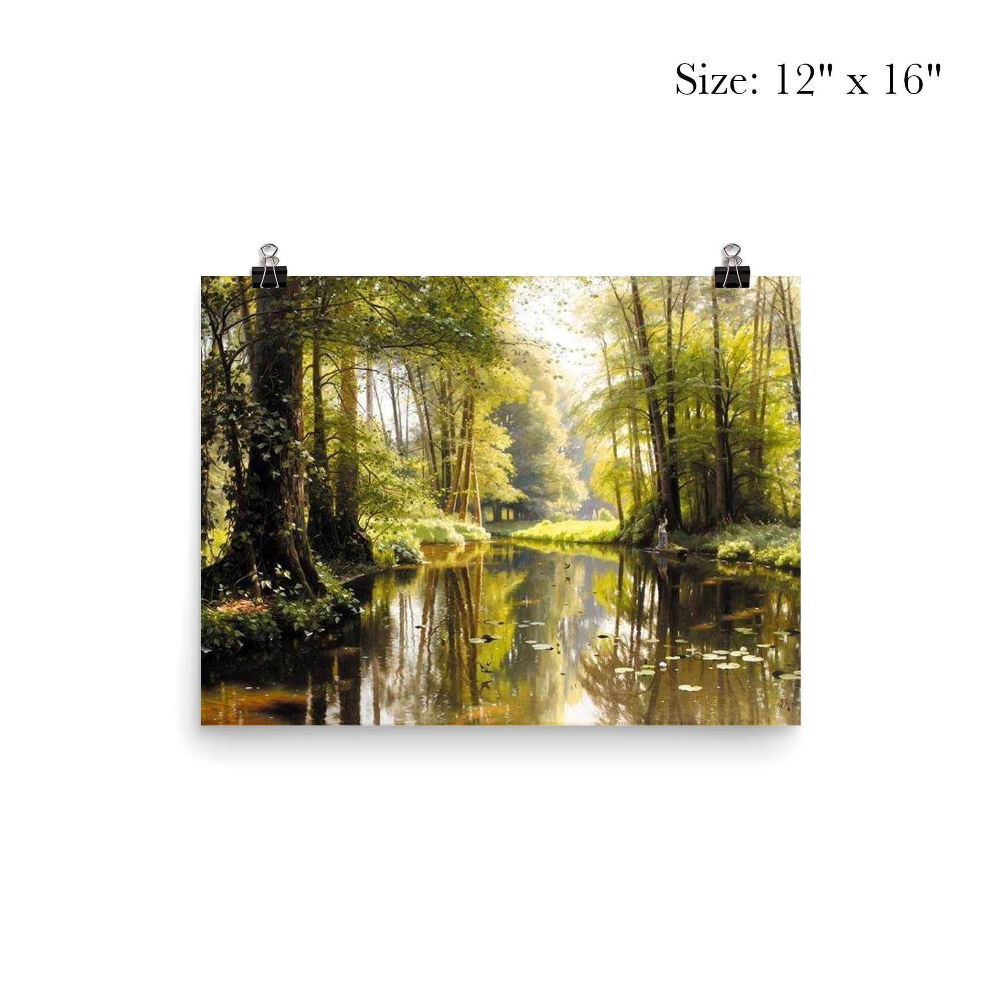 Bring timeless serenity to your space with this stunning poster of "Streaming in the Woods" by Peder Mork Monsted, 1911. Experience the tranquil beauty and masterful artistry that captures a peaceful woodland scene, inviting you to pause and breathe amidst nature’s quiet elegance. Perfect for adding a touch of classic charm to any room.