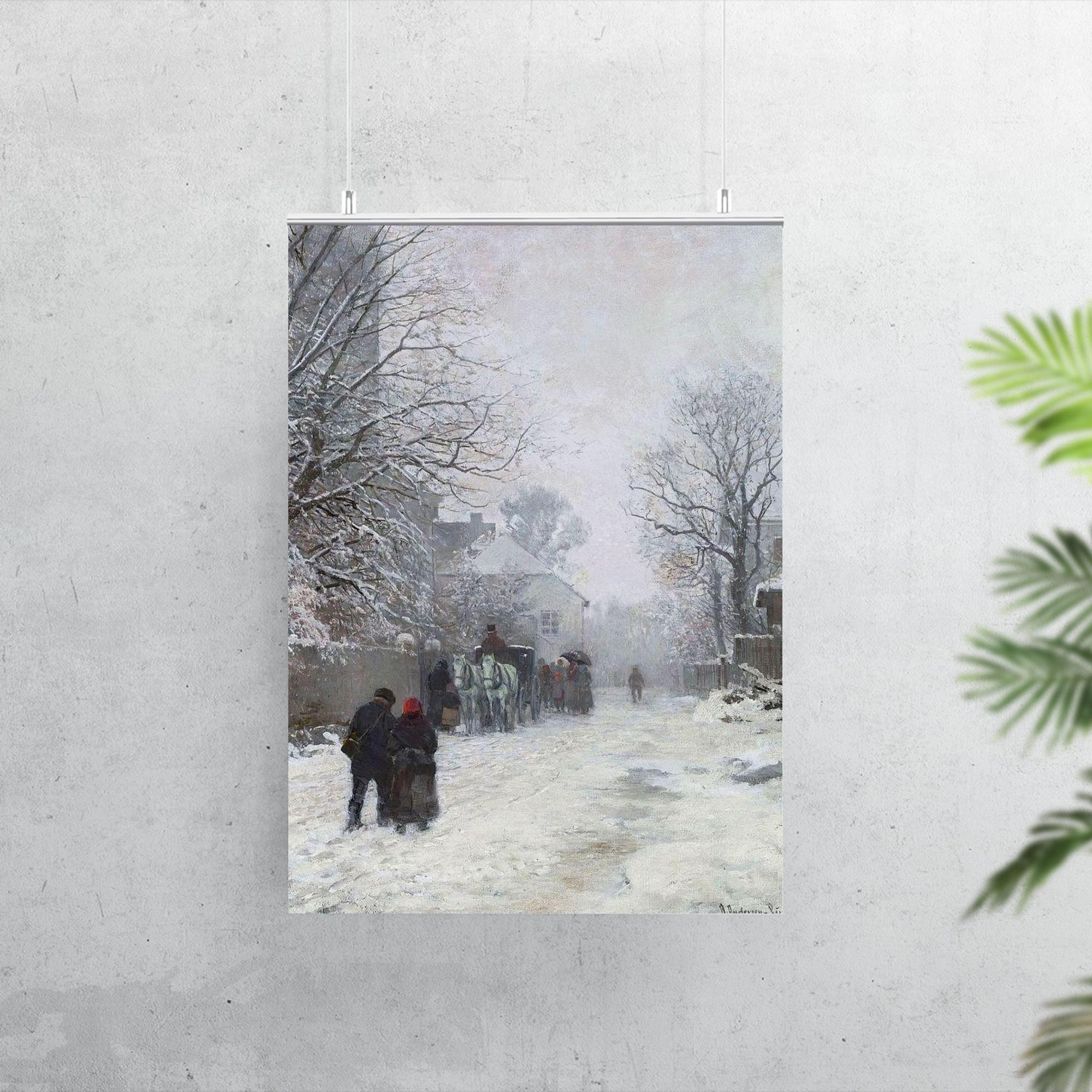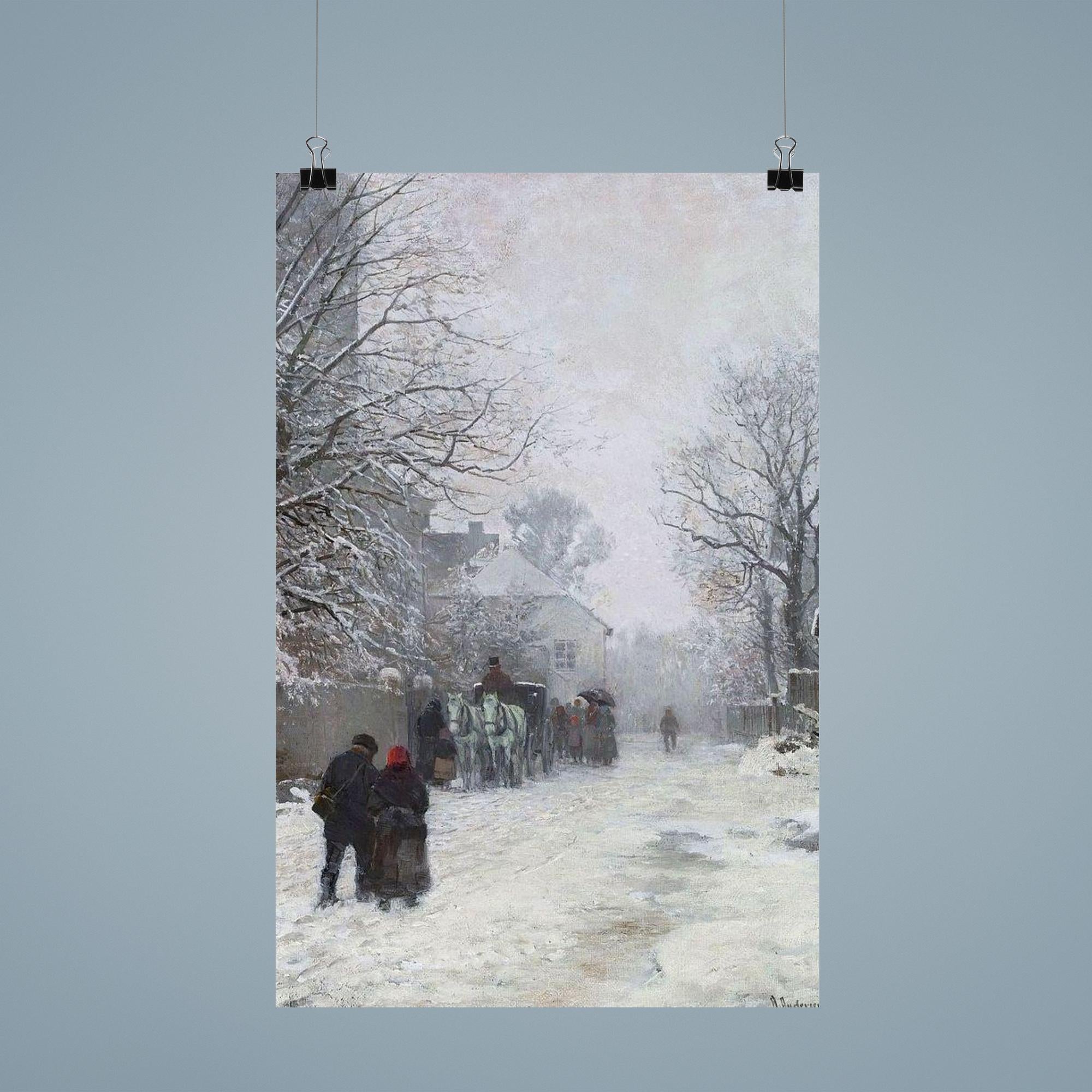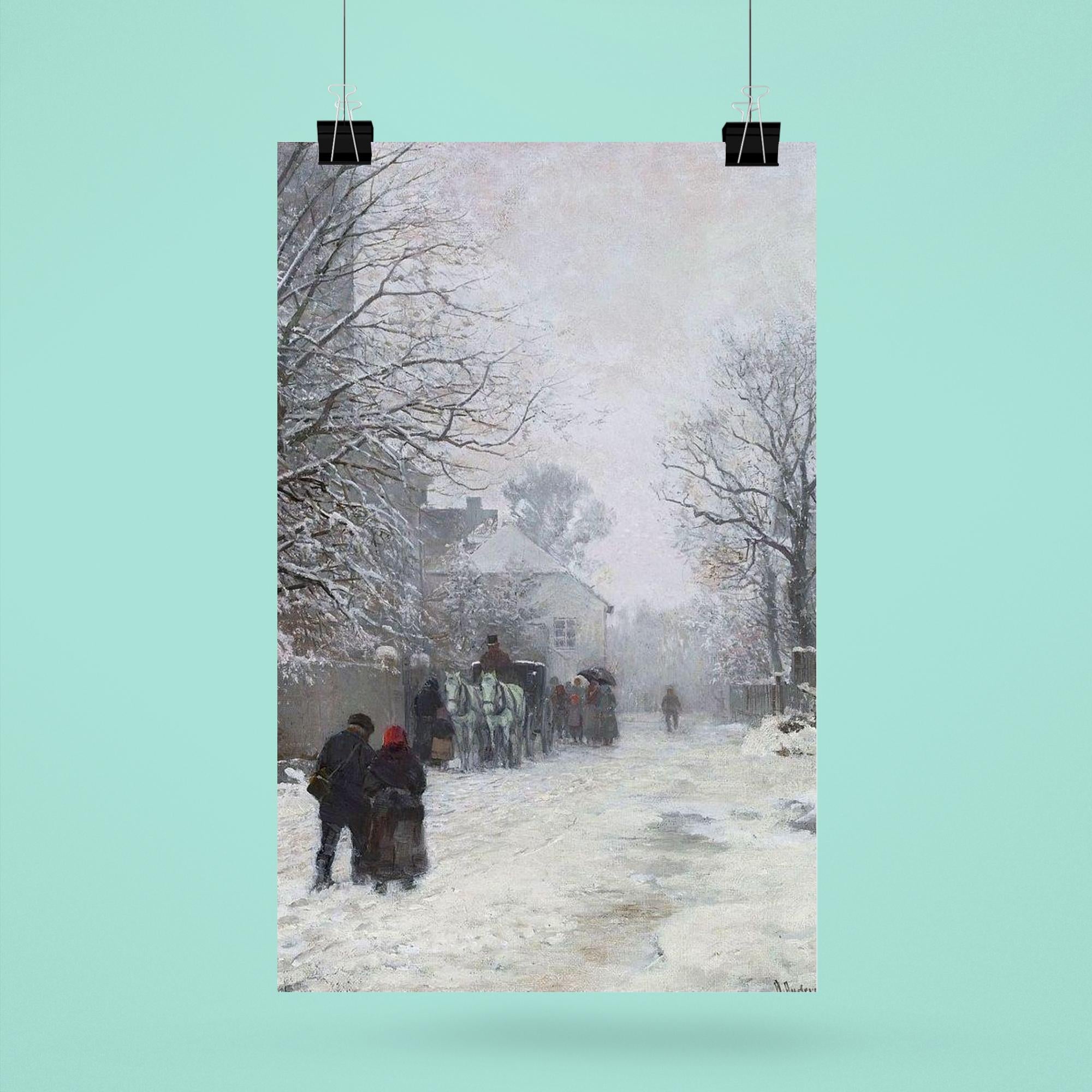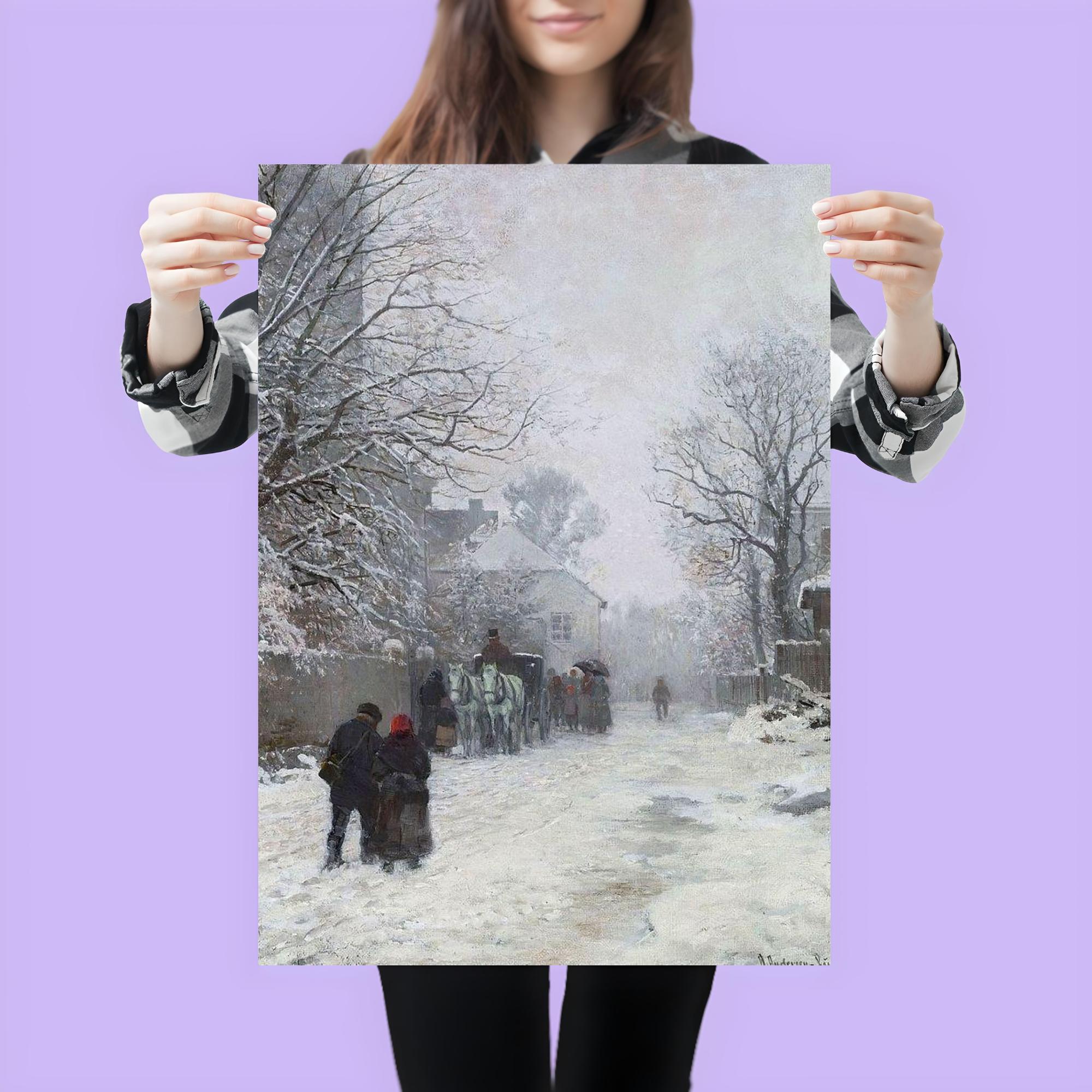 Transform your space with the serene charm of "Suburban Street in Winter, München" by Anders Andersen-Lundby, 1923. This timeless poster captures the quiet beauty of a snowy street scene, inviting a peaceful, reflective atmosphere into any room. Its subtle elegance and historic artistry make it a perfect centerpiece for those who appreciate classic Scandinavian winter landscapes.