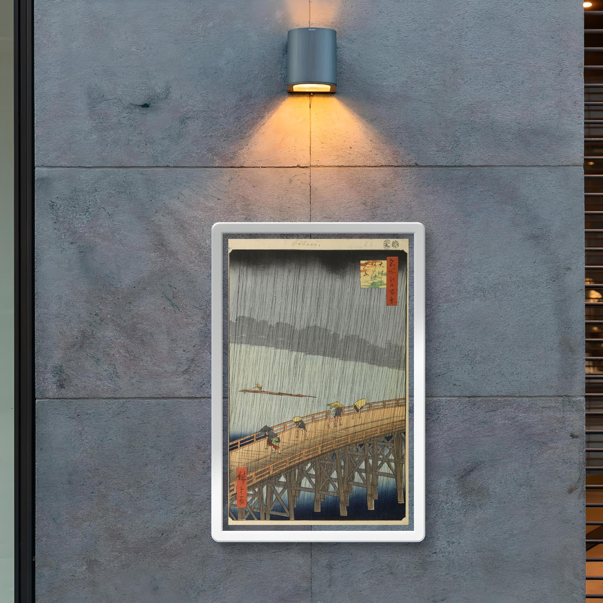 Sudden Shower Over Shin-Ohashi Bridge Poster Print by Hiroshige 1857 – Vibrant Japanese Ukiyo-e Wall Art for Home & Office Decor