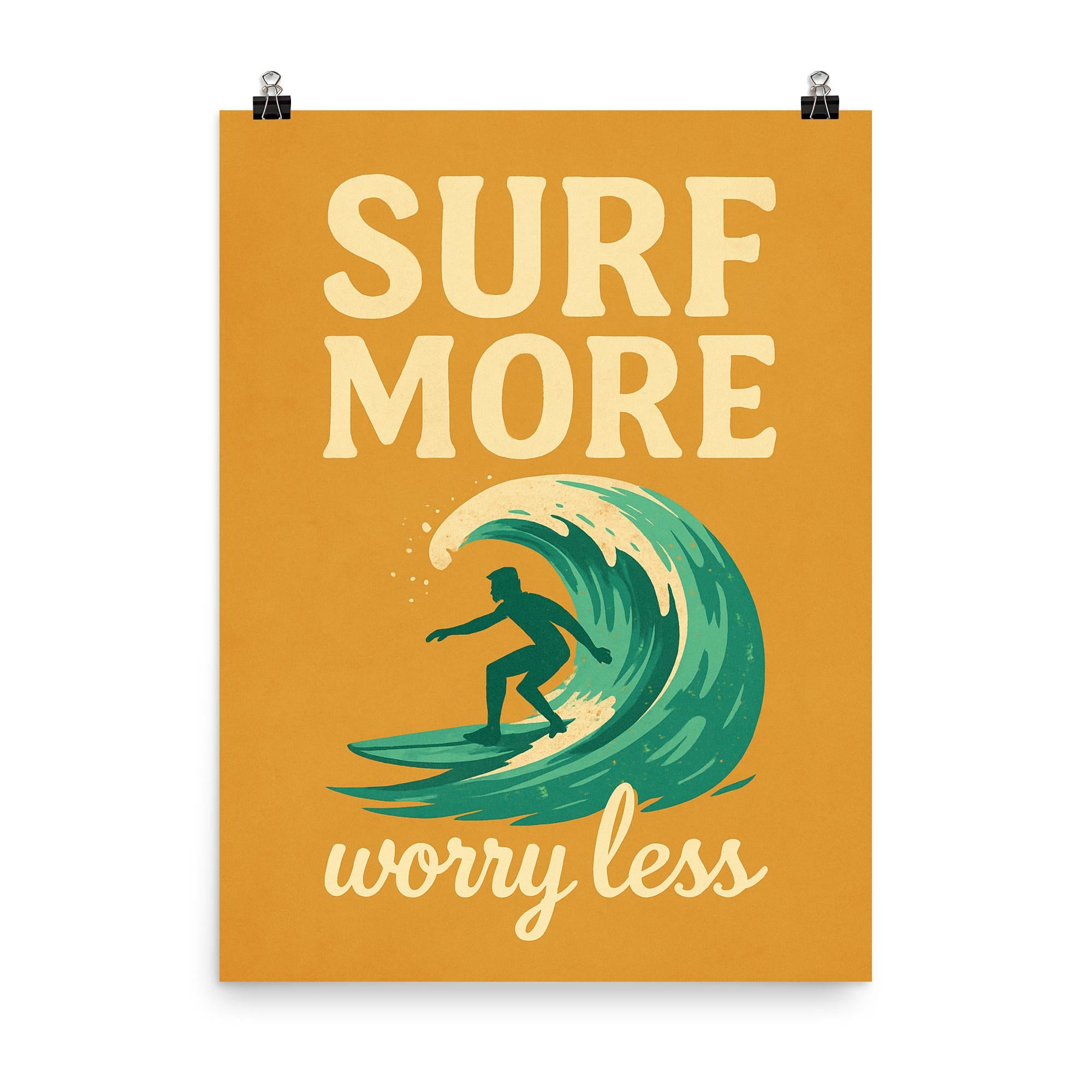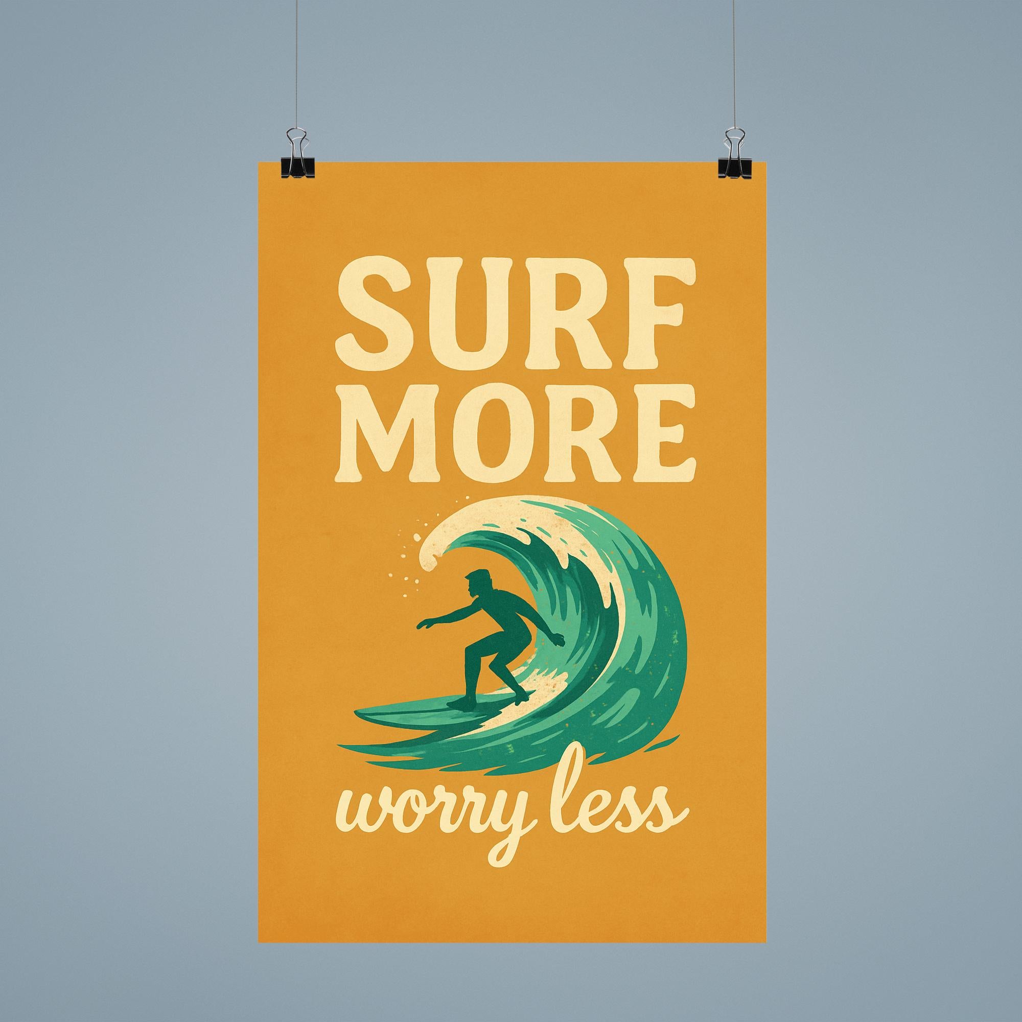 Ride the waves of life with a reminder to let go and embrace the moment. This "Surf more, worry less" poster is the perfect daily nudge to prioritize joy and stay carefree—at home, in the office, or anywhere you need a boost of positive energy. Bring the spirit of the sea to your walls and keep your focus where it matters most.