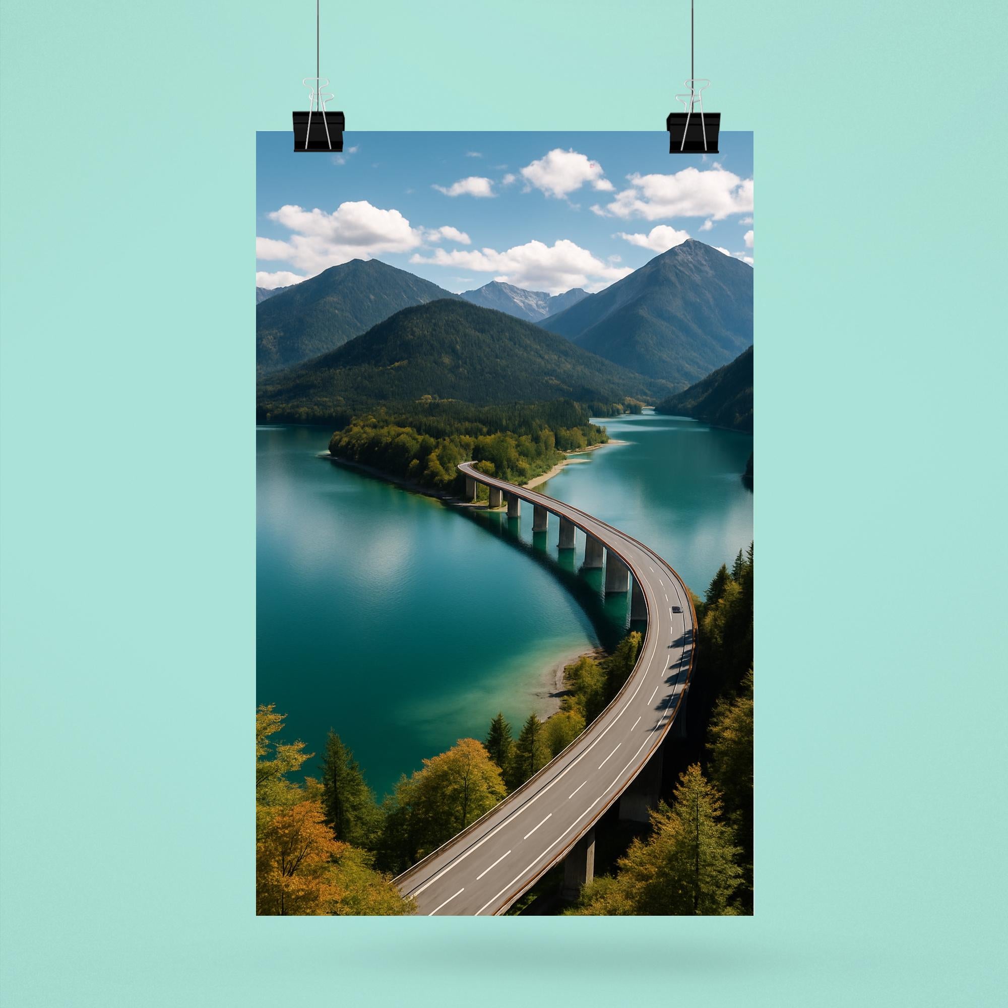 Experience the serene beauty of Sylvensteinsee with this stunning panorama poster capturing the tranquil waters and majestic surroundings of Germany’s alpine gem. Perfect for inspiring calm and a sense of wanderlust, this high-quality print transforms any space into a peaceful retreat. Bring a touch of natural splendor and timeless elegance to your home or office with this breathtaking landscape.