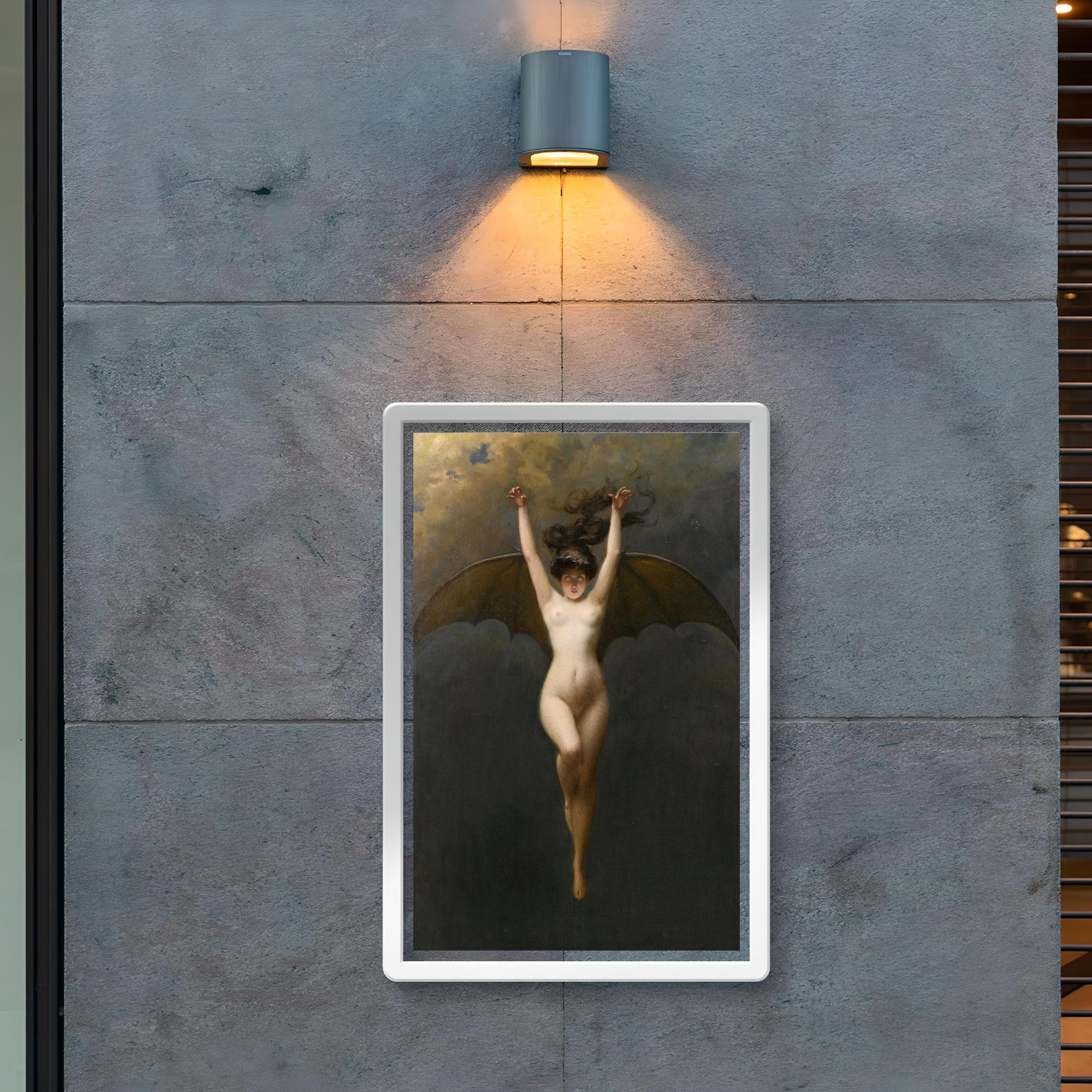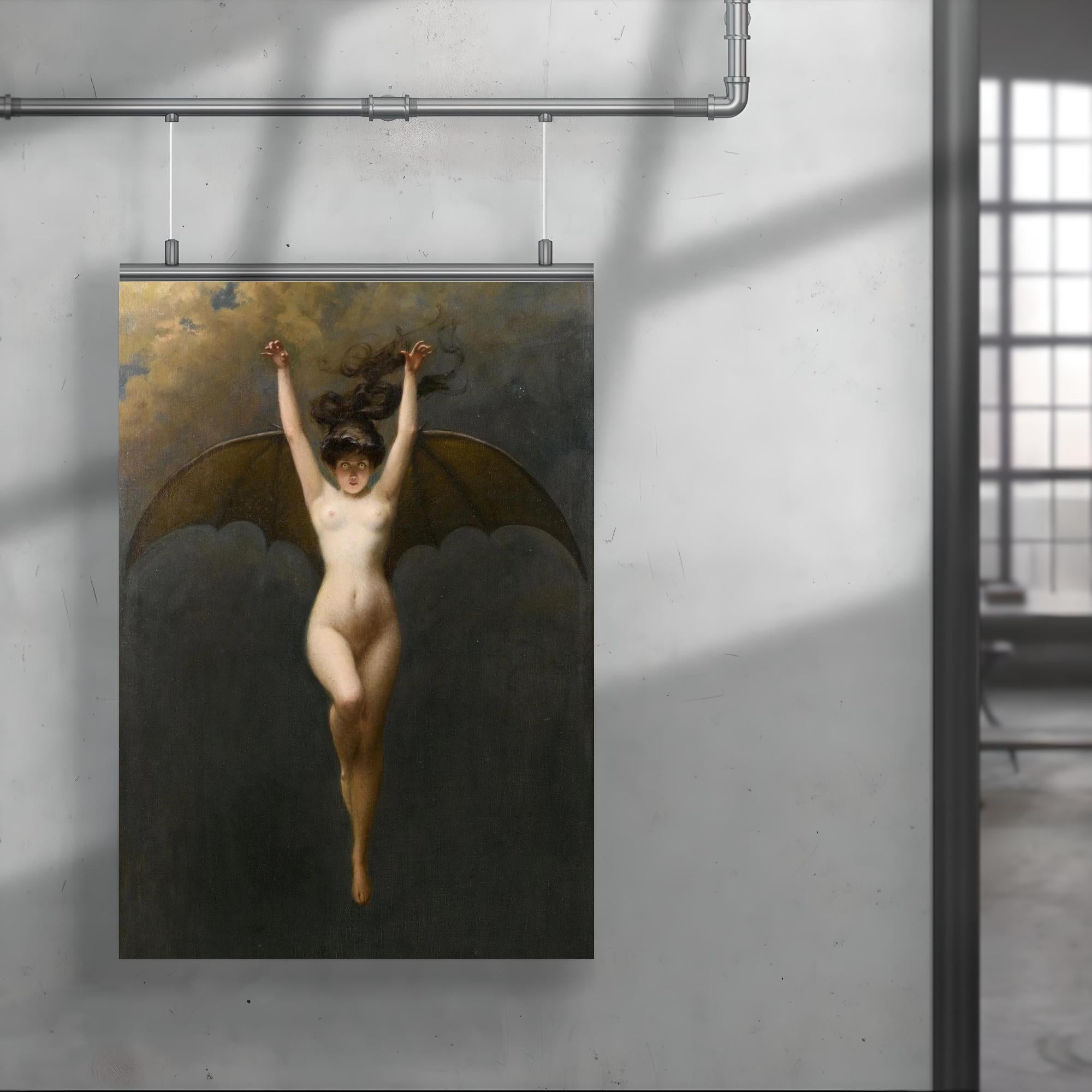 Step into the mysterious allure of the late 19th century with "The Bat Woman" by Albert Joseph Penot, 1890. This striking poster captures a haunting elegance that echoes the era’s fascination with the nocturnal and the supernatural. Perfect for art lovers and collectors, it brings a touch of vintage intrigue and timeless sophistication to any space.