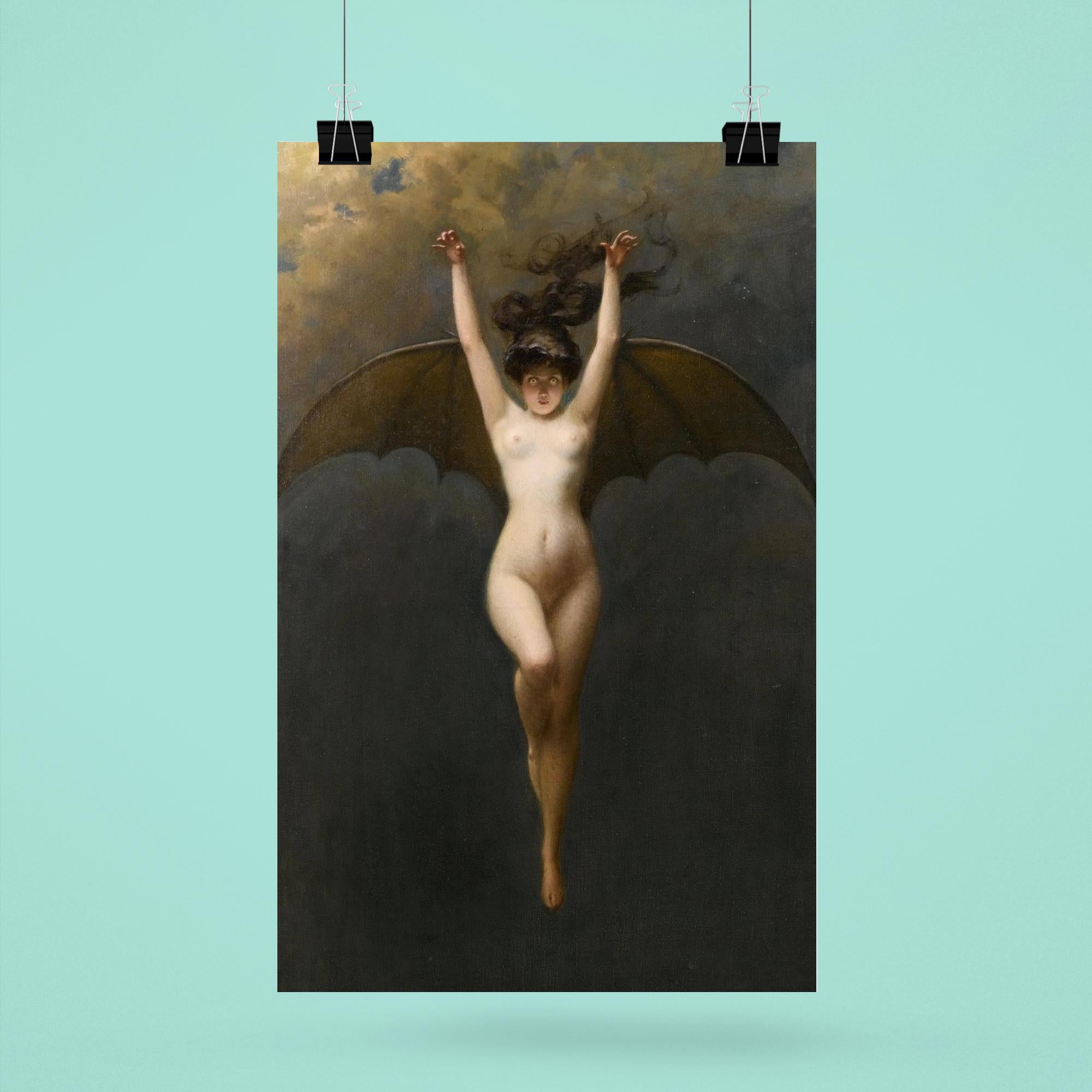 Vintage Bat Woman Poster Print by Albert Joseph Penot 1890 – Unique Gothic Wall Art for Classic Home Décor