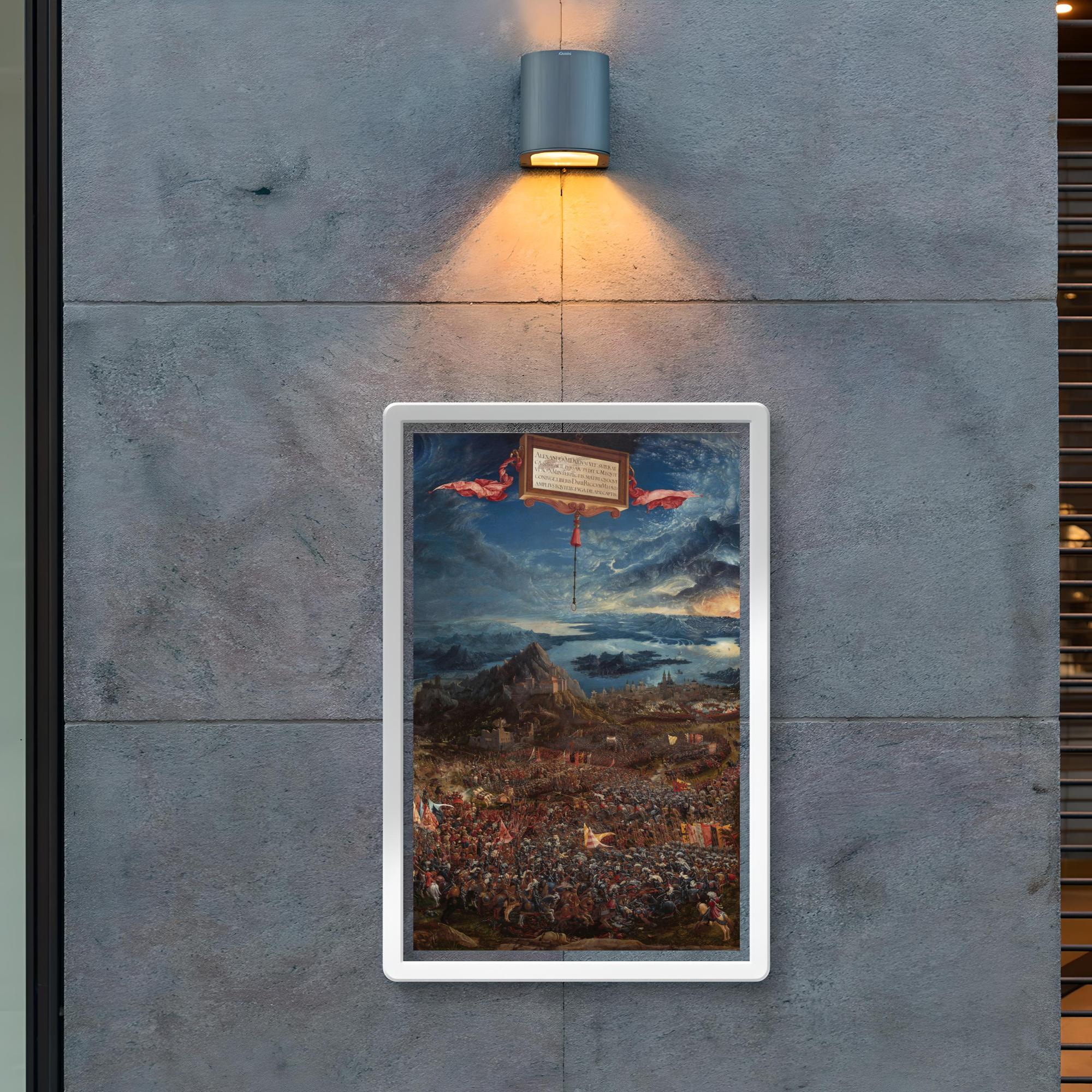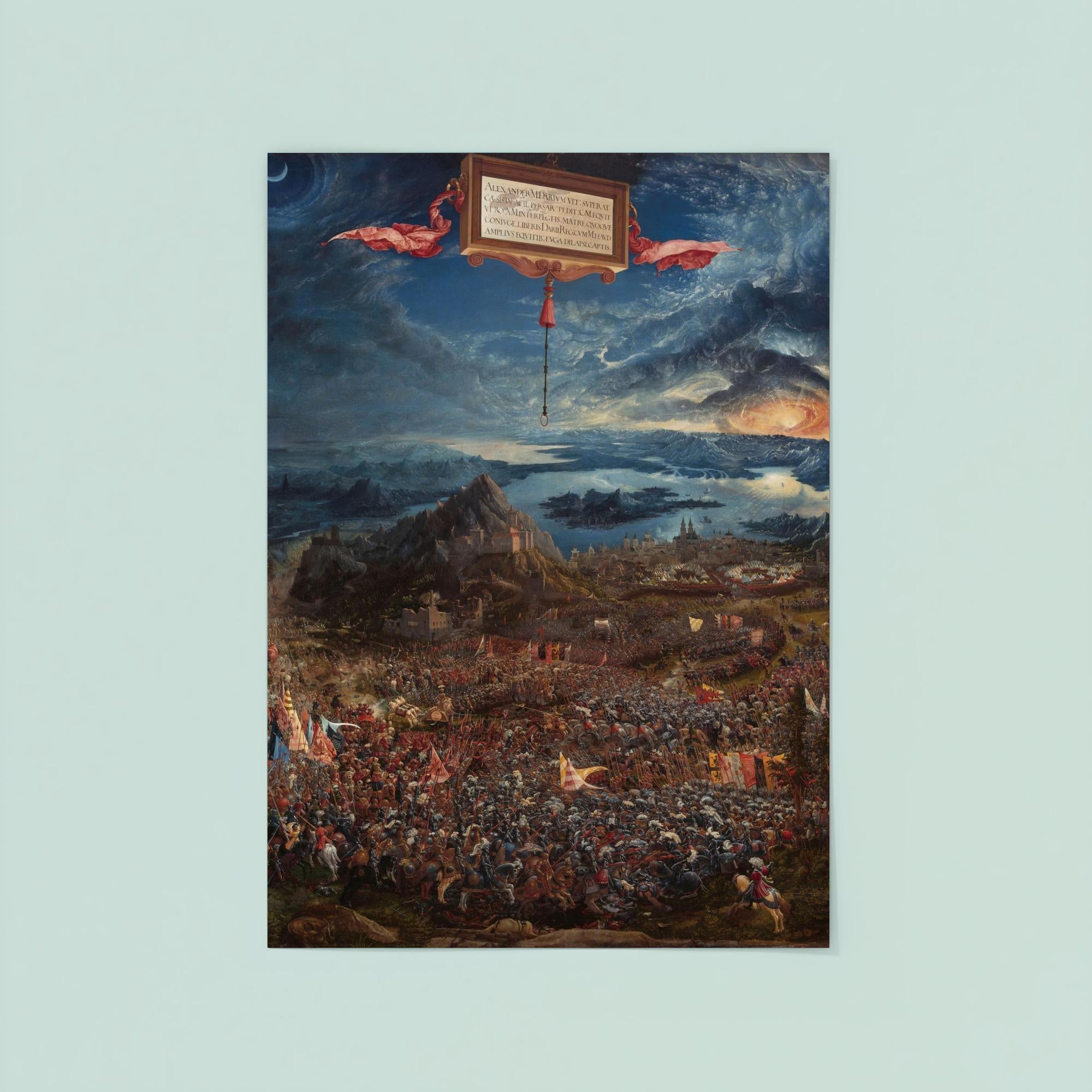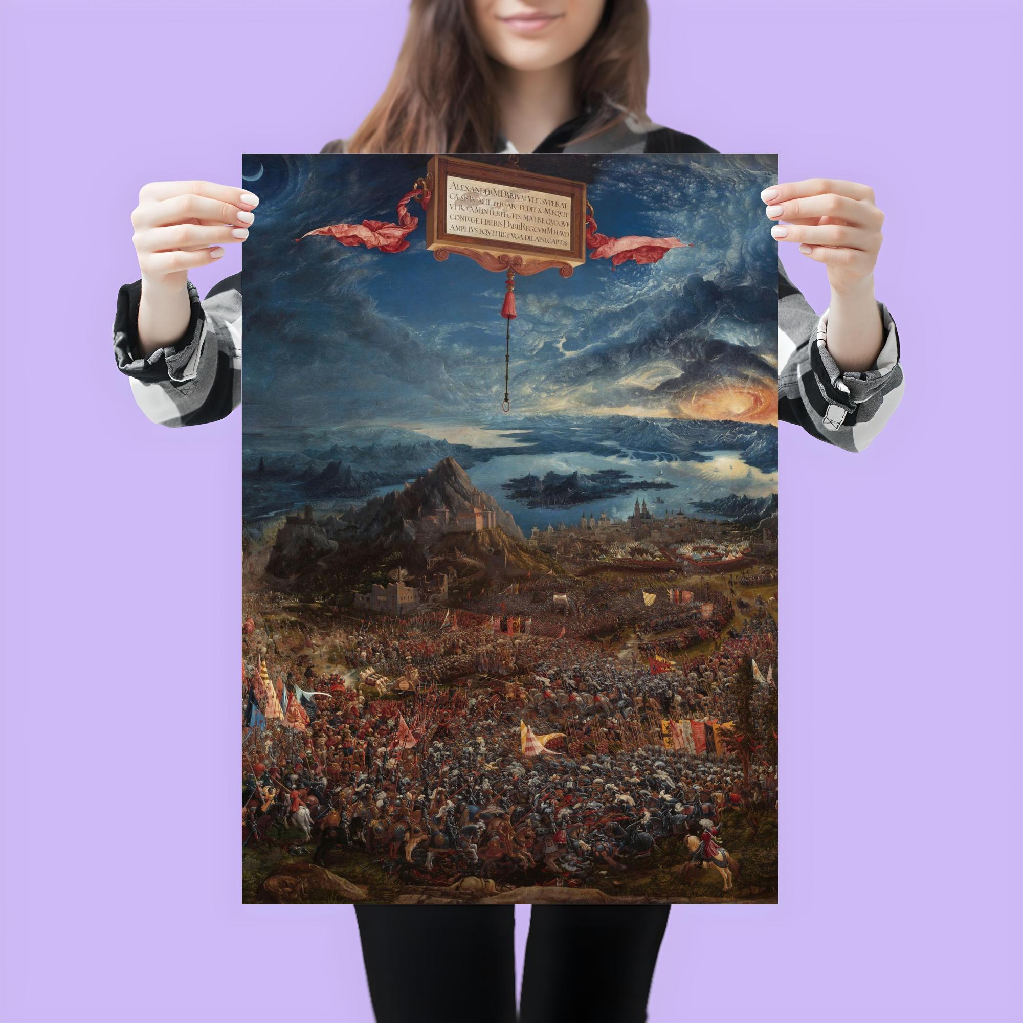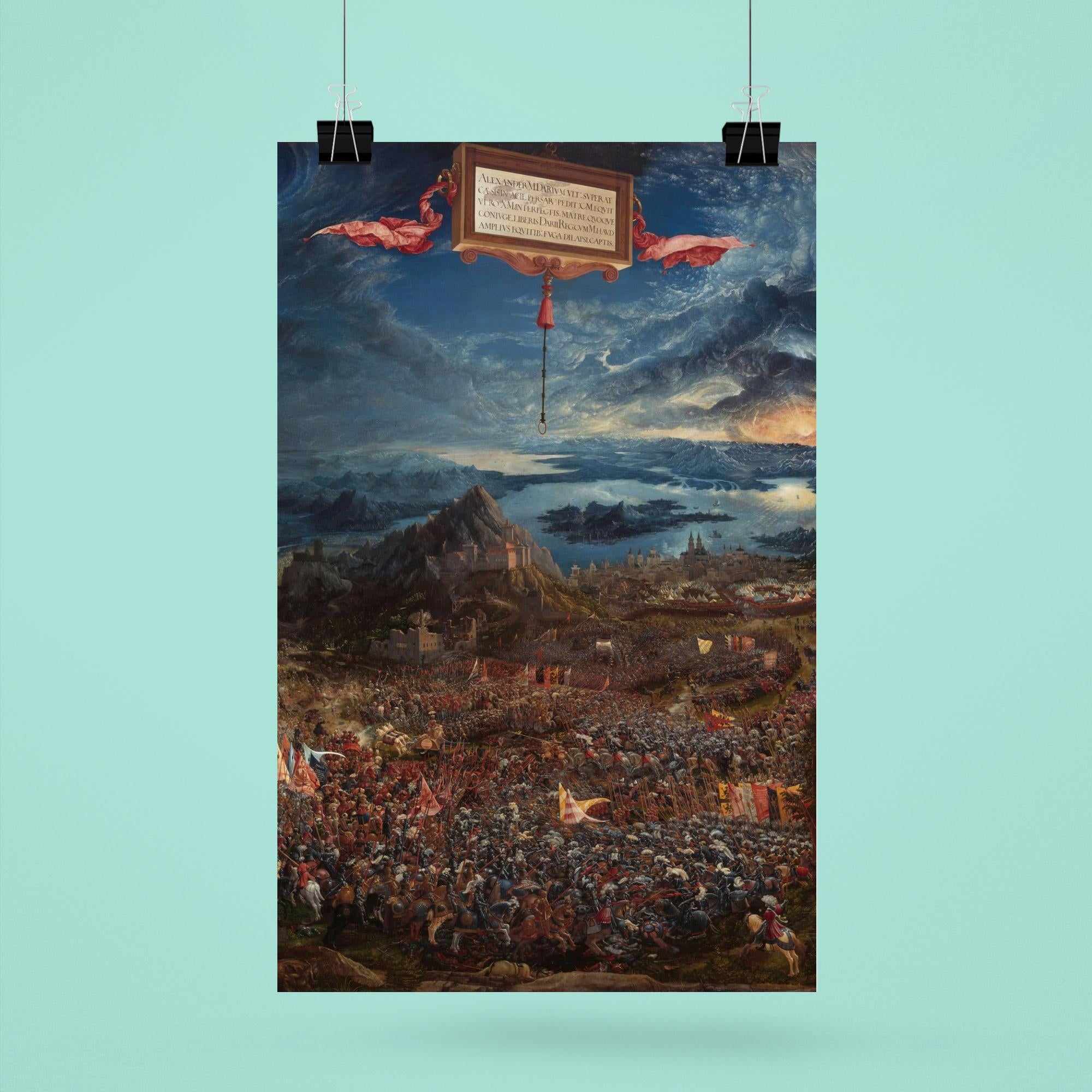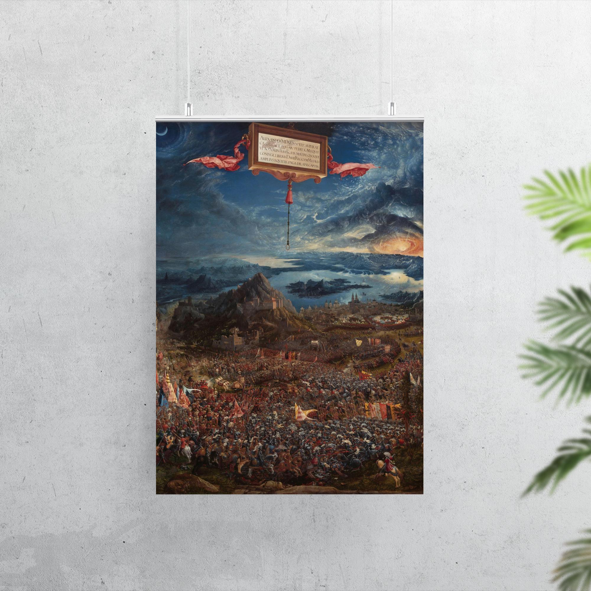 Bring home a masterpiece of Renaissance art with Albrecht Altdorfer's 1529 iconic poster, The Battle of Alexander at Issus. This striking depiction captures the historic clash with remarkable detail and vibrant intensity, transporting you to a pivotal moment in history. Perfect for art lovers and history enthusiasts alike, this poster transforms any space into a gallery of timeless valor and intricate beauty.