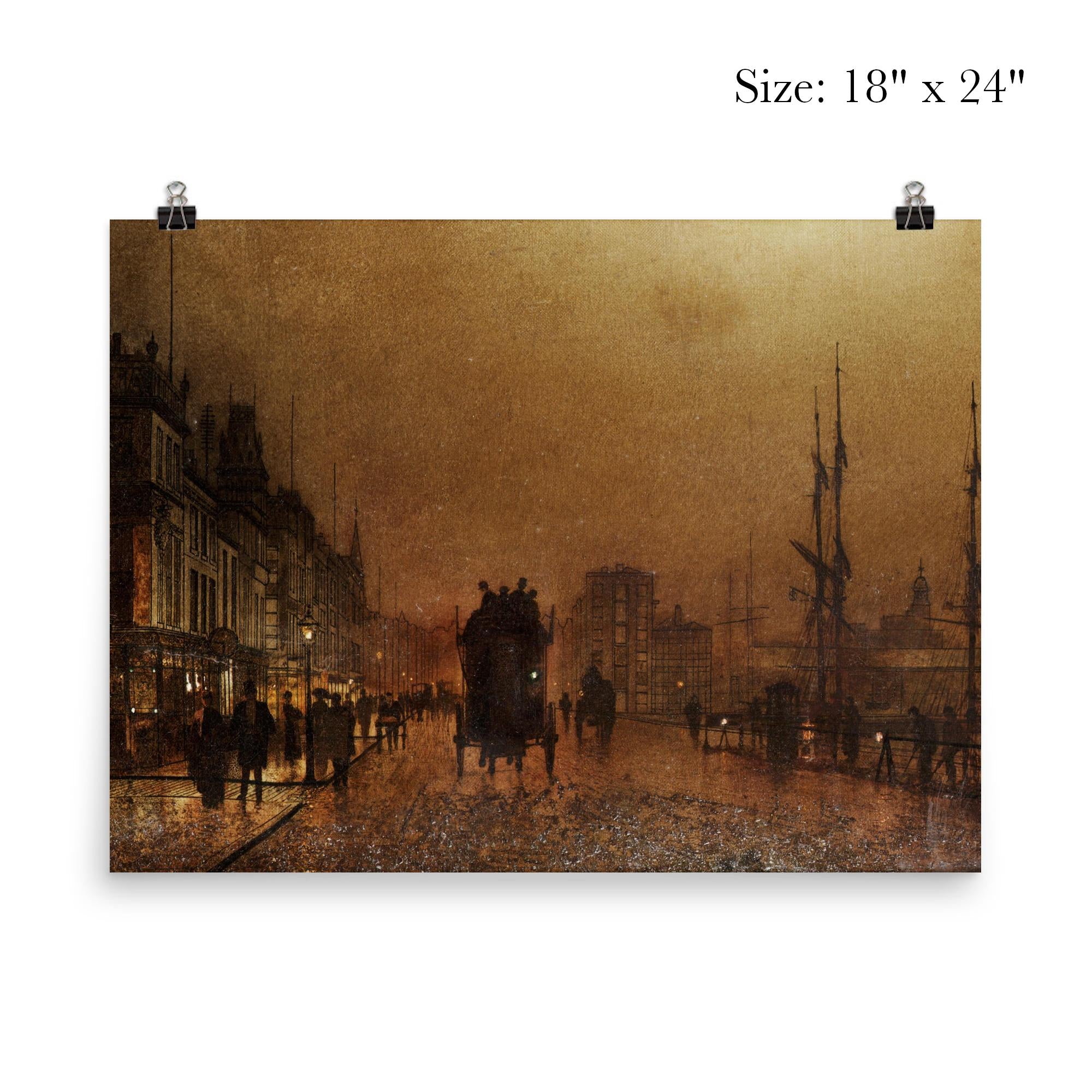 The Broomielaw Glasgow 1889 Poster Print by John Atkinson Grimshaw – Vintage Urban Nightscape Wall Art Poster