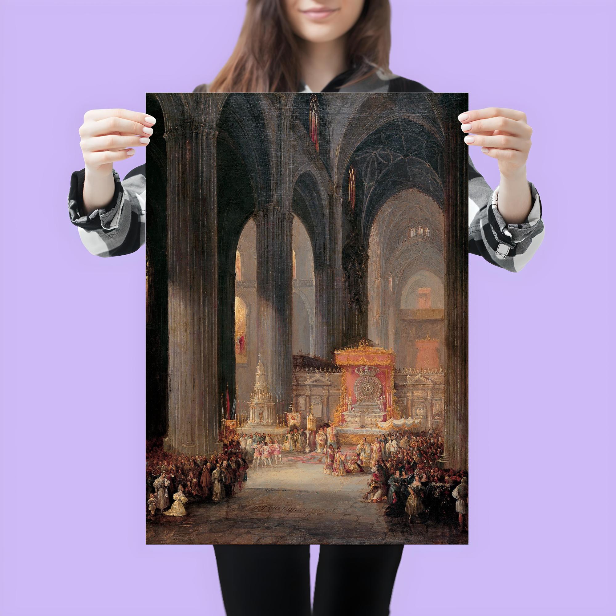 Immerse yourself in the profound reverence of The Corpus Christi Procession inside Seville Cathedral with this stunning poster. Capturing a moment of sacred tradition within one of the world’s most iconic cathedrals, it invites you to experience the timeless blend of faith and history. Perfect for those who appreciate spiritual artistry and cultural heritage, this poster transforms any space into a tribute to devotion and grandeur.