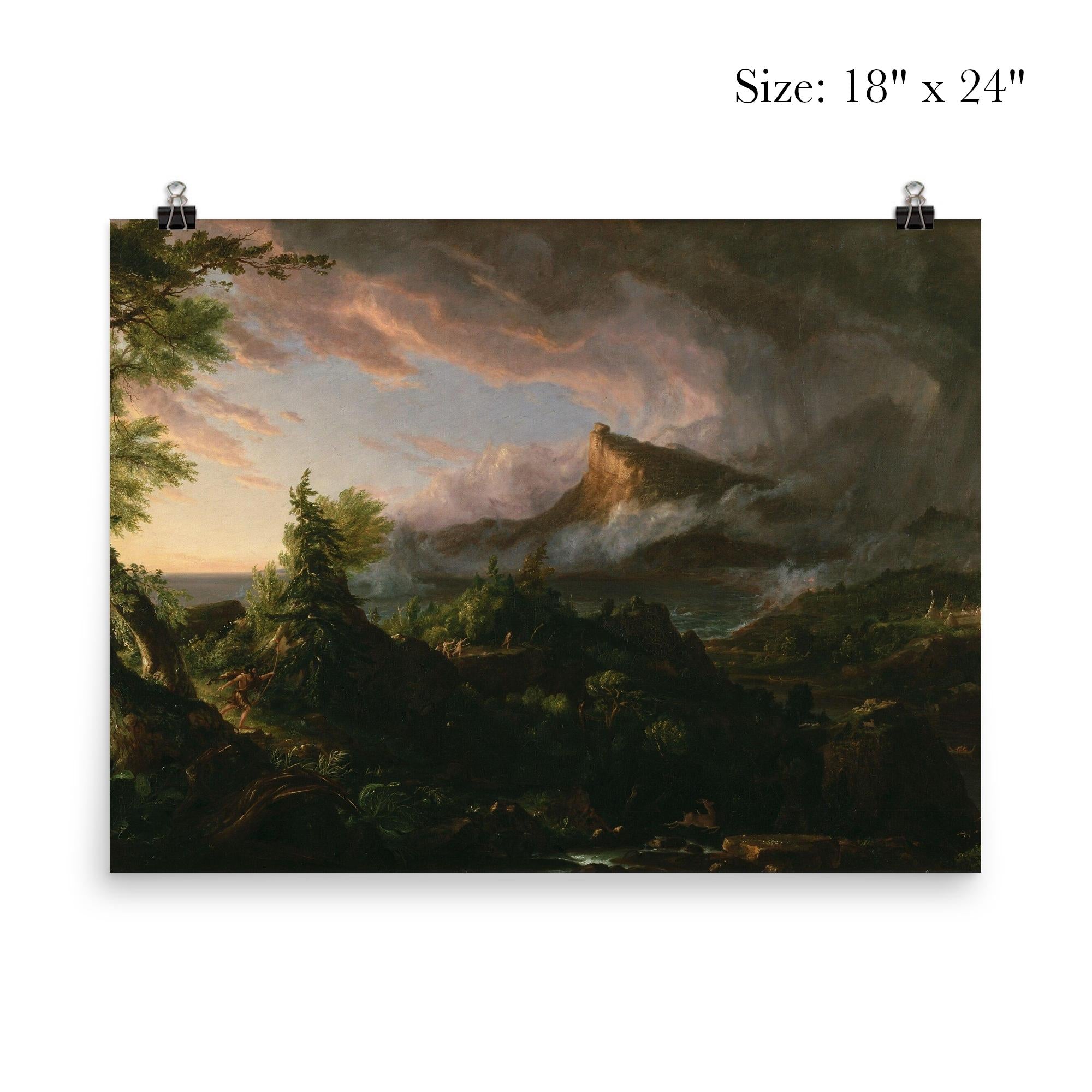 Transform your space with a timeless masterpiece: Thomas Cole’s "The Course of Empire: The Savage State" (1834). This powerful artwork captures a pivotal moment in the epic saga of civilization’s rise, evoking thought and reflection on human history. Printed with striking clarity, this poster brings a profound sense of drama and depth to any room, inviting viewers to explore the enduring themes of ambition, nature, and society.