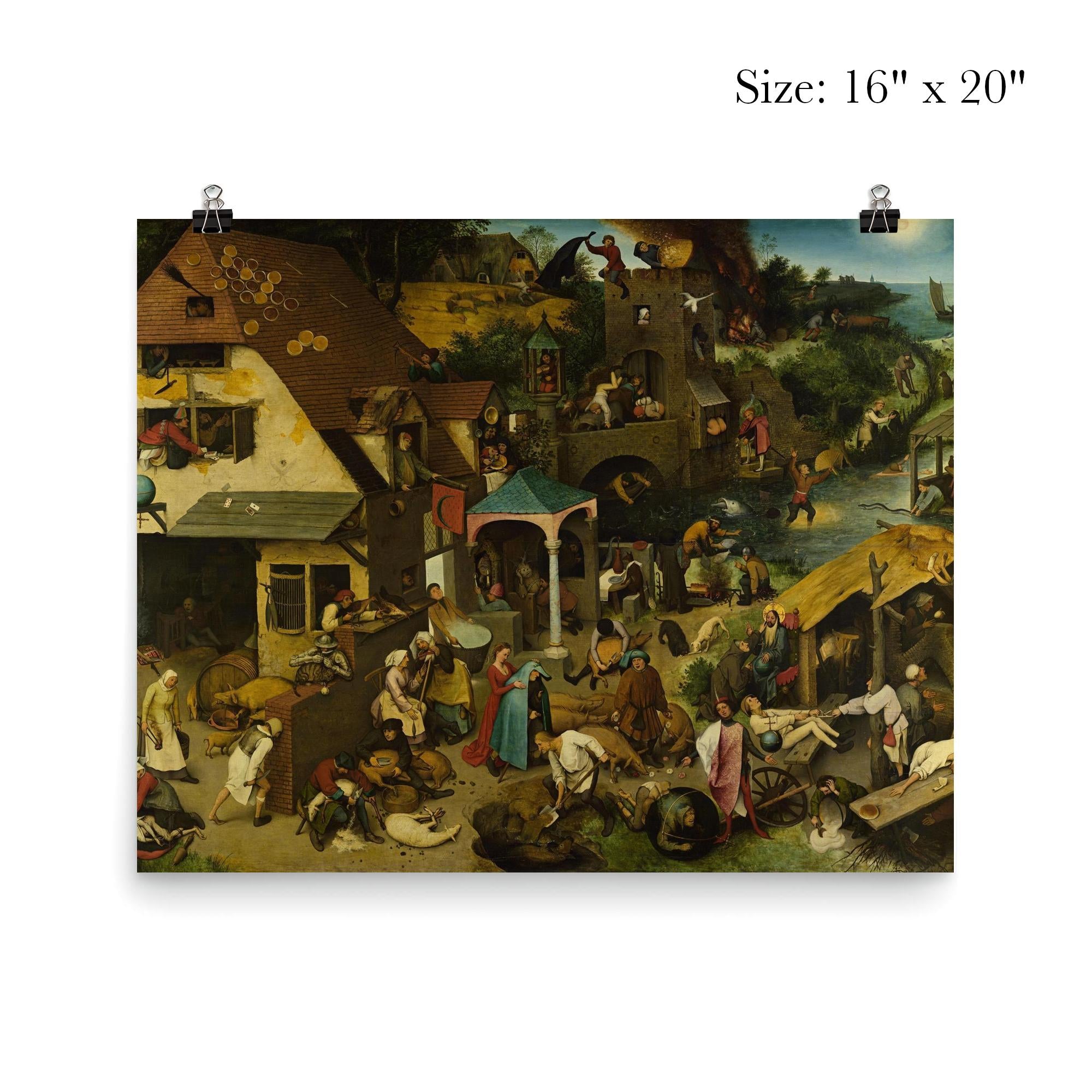 Bring home a timeless masterpiece with this exquisite poster of Pieter Bruegel the Elder’s *The Dutch Proverbs*, 1559. Every glance reveals a rich tapestry of life’s wisdom, captured through vivid scenes that invite reflection and conversation. Perfect for art lovers and thinkers alike, this poster transforms your space with centuries-old insight and unparalleled detail.