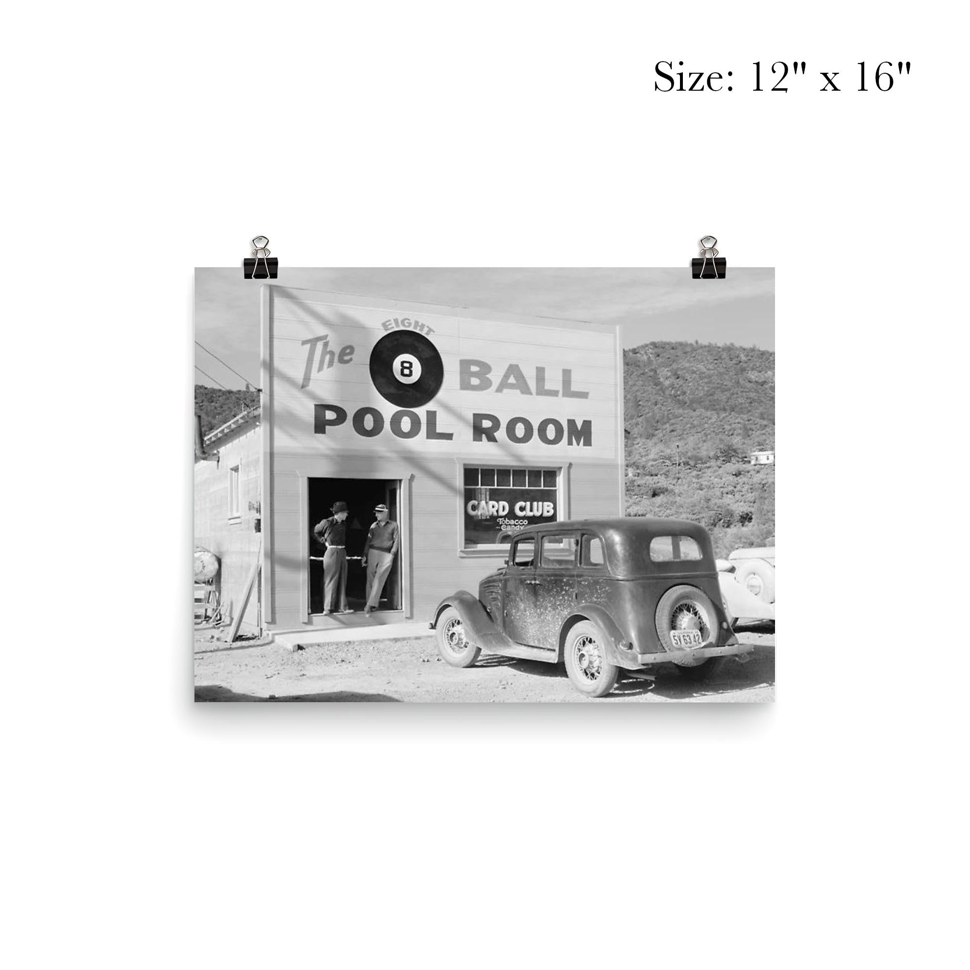 Step back in time with this authentic poster from The Eight Ball Pool Room, the beloved pool hall and card club that brought camaraderie and competition to Shasta County’s miners in 1940. A rare piece of local history, it captures the spirit of an era when the clatter of pool balls and the shuffle of cards provided much-needed escape and fellowship. Perfect for enthusiasts of vintage Americana and mining heritage alike.