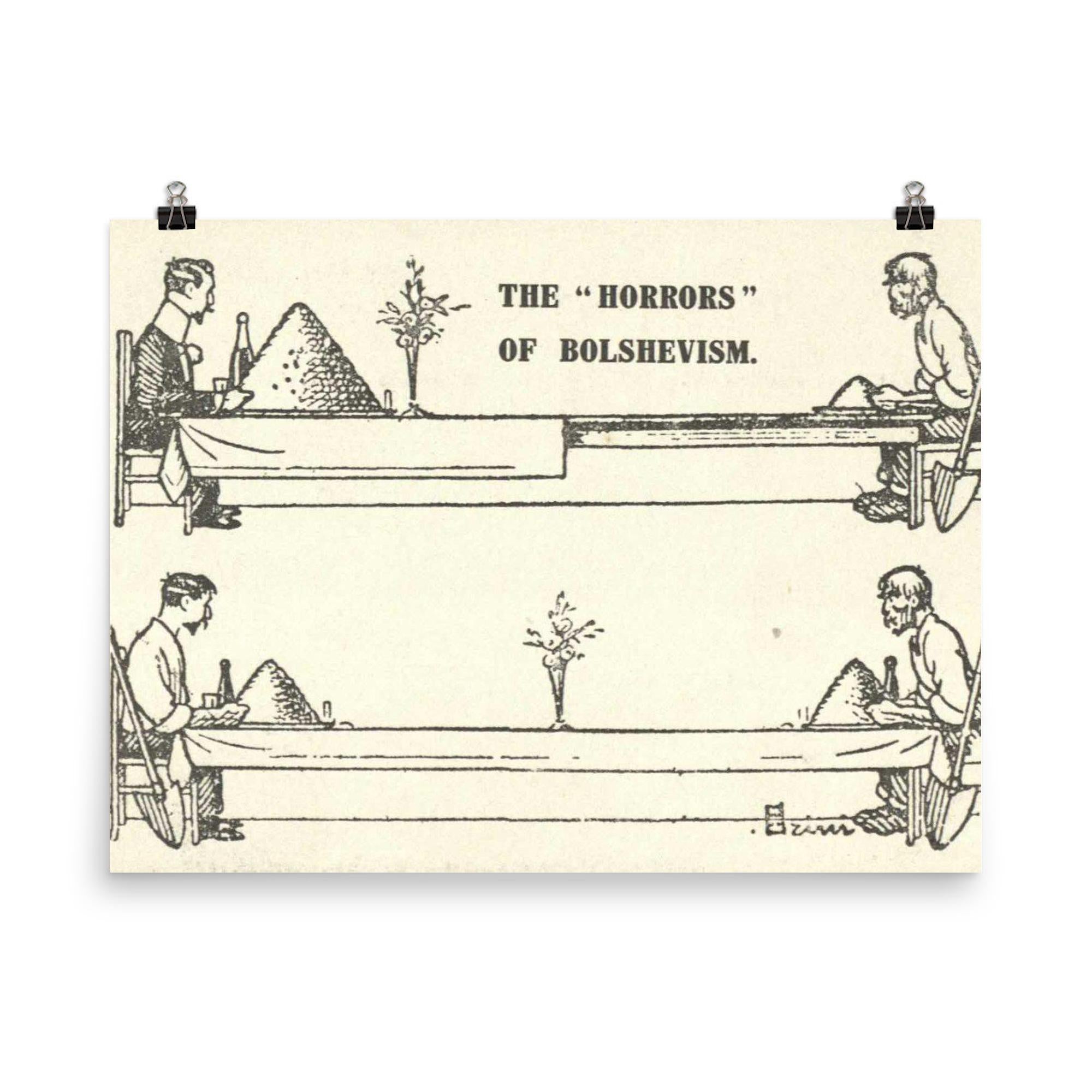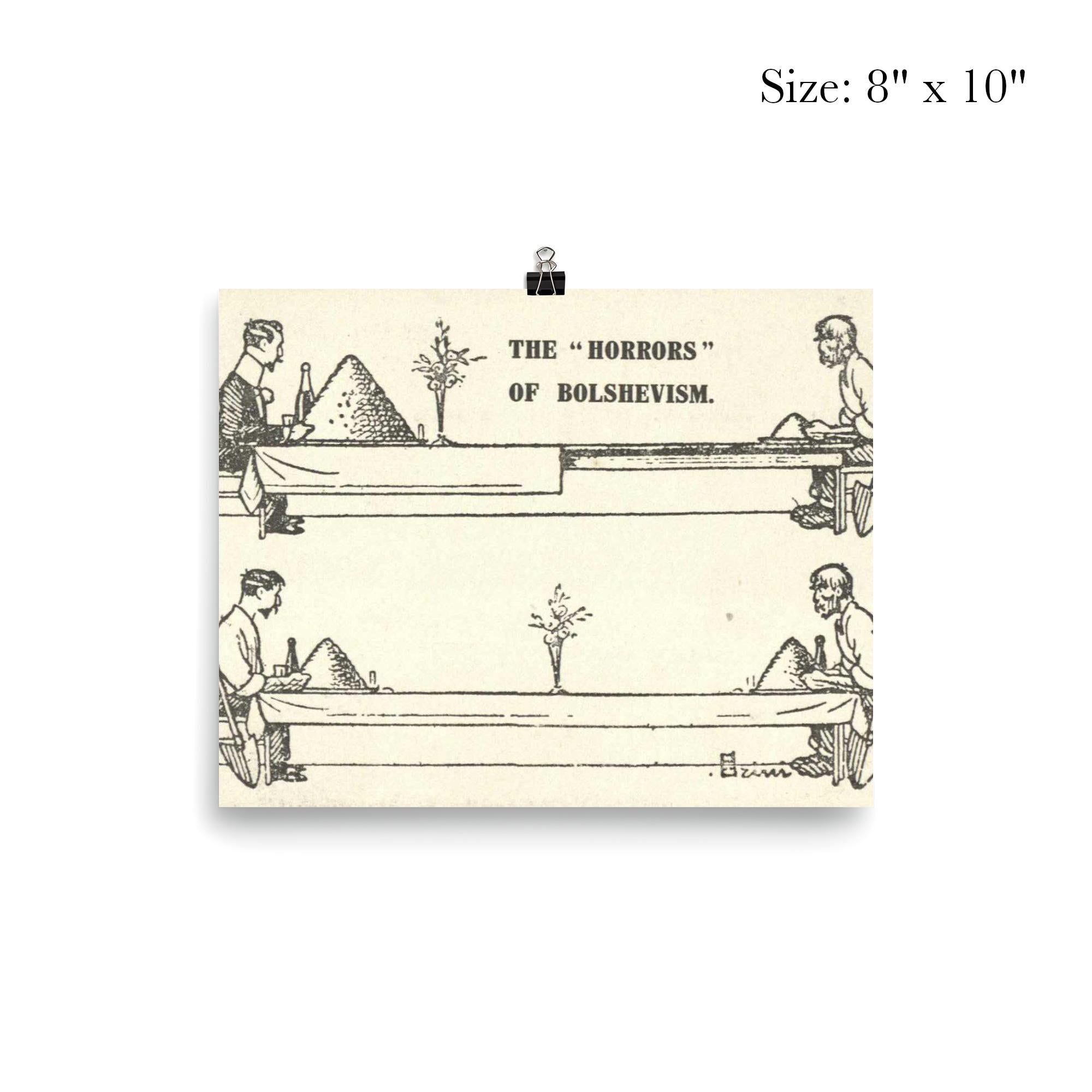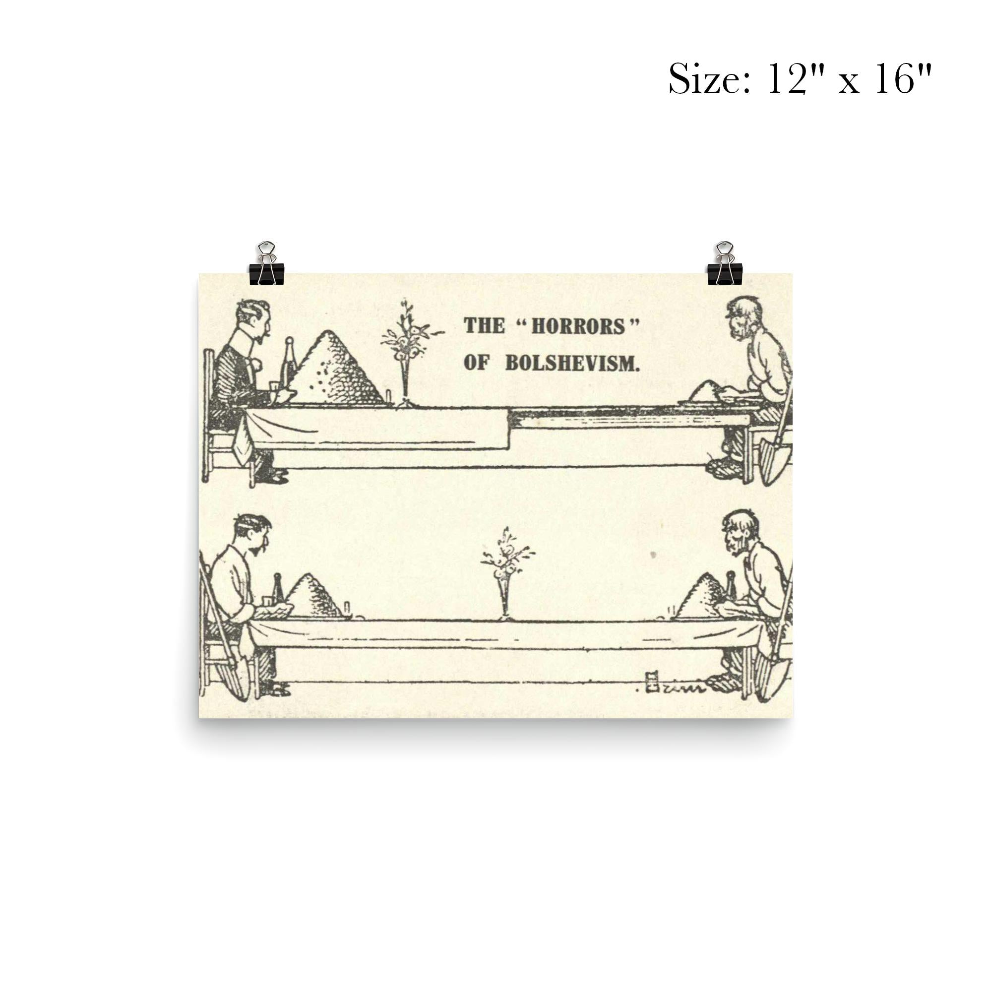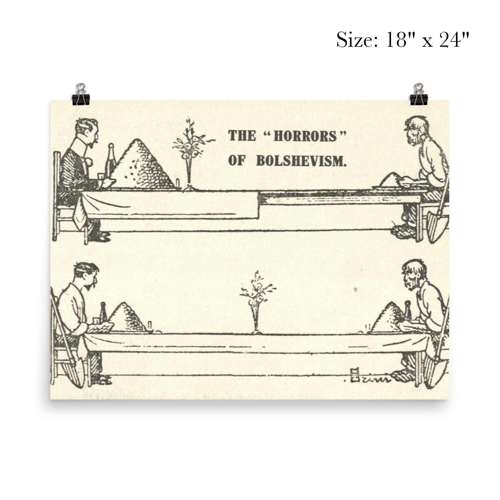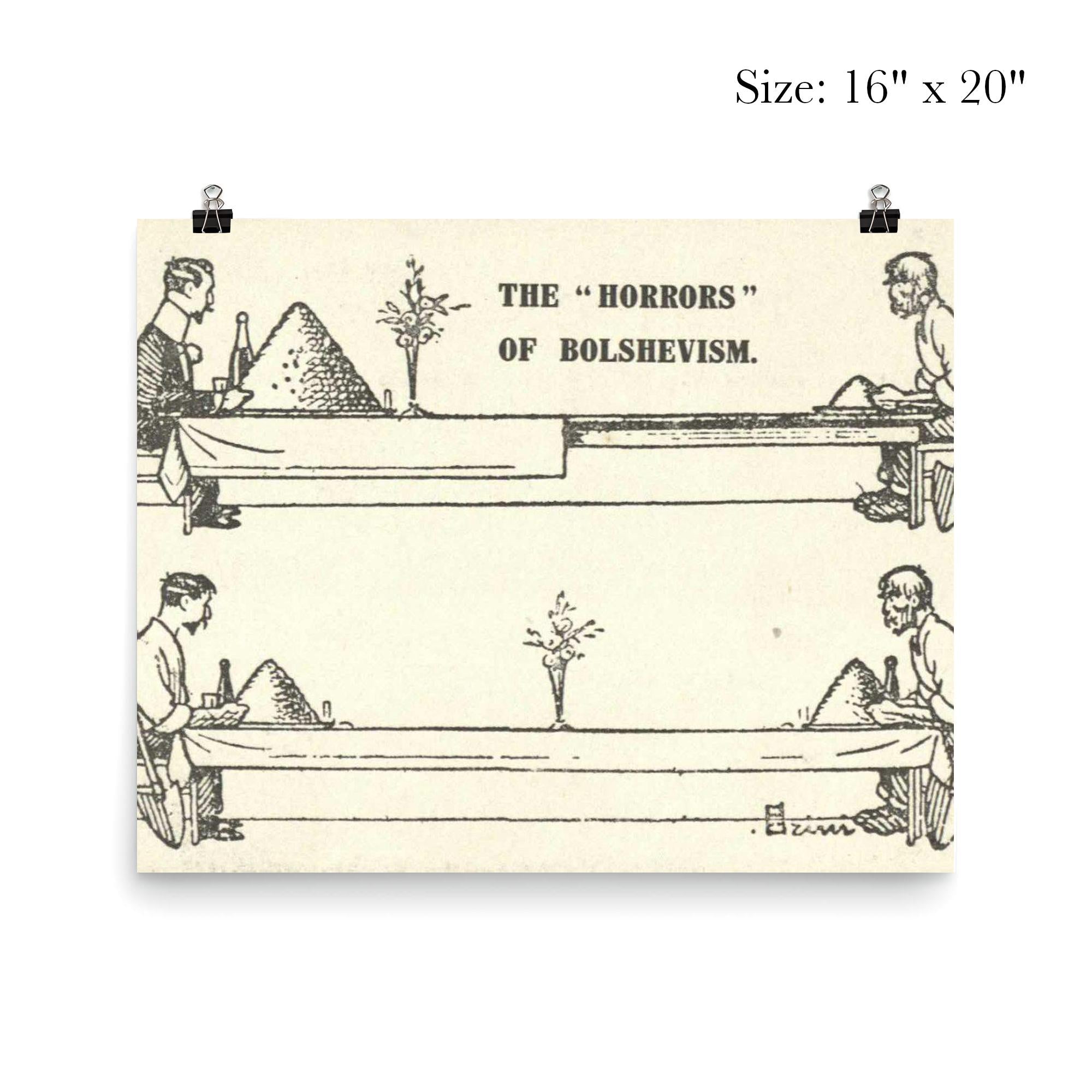 Step back into a pivotal moment in history with this striking British postcard, "The Horrors of Bolshevism," circa 1919. This powerful piece captures the intense sentiments of its time, offering a tangible connection to the fears and political tensions that shaped the post-war era. Perfect for collectors and history enthusiasts alike, this poster invites reflection on the complex narratives of early 20th-century Europe.