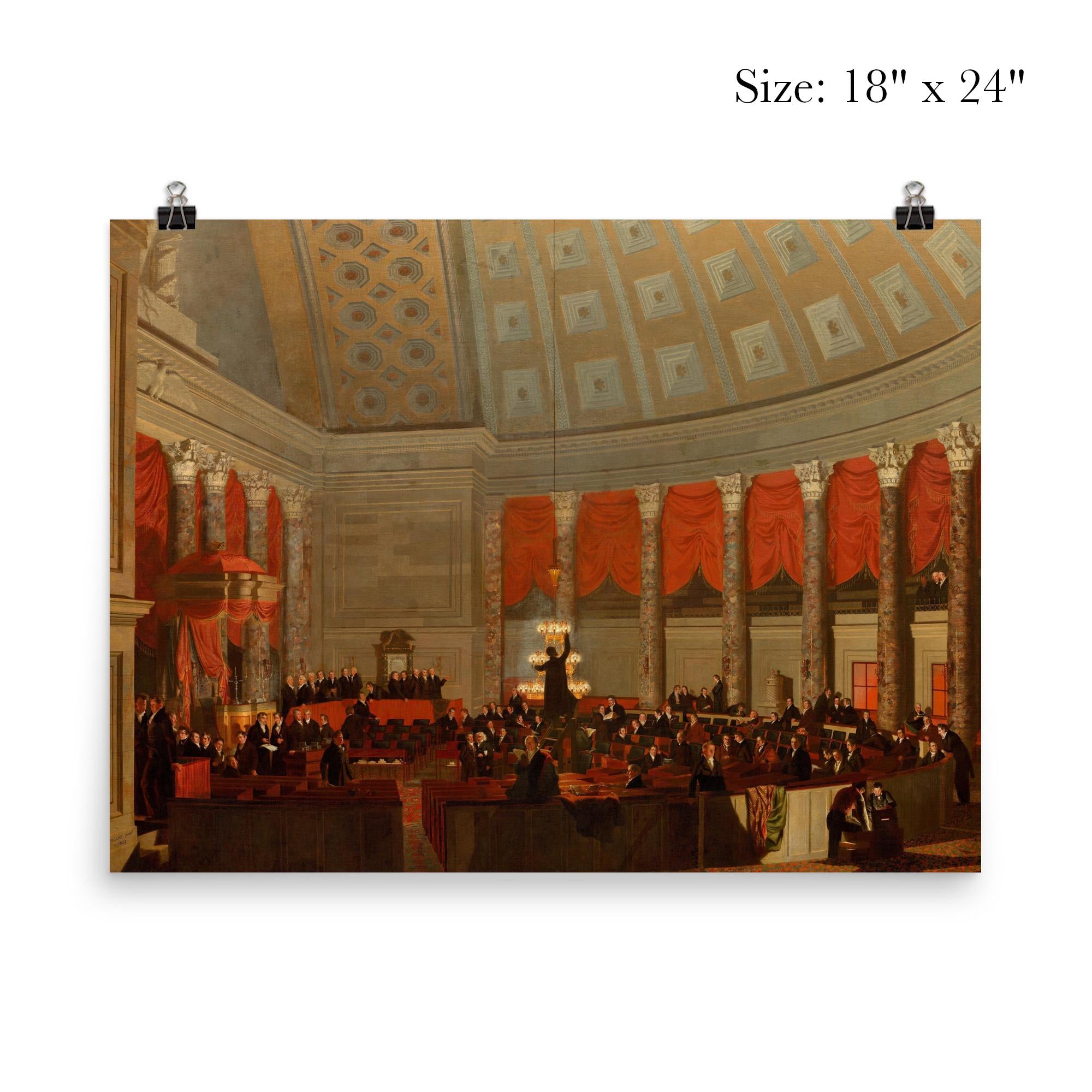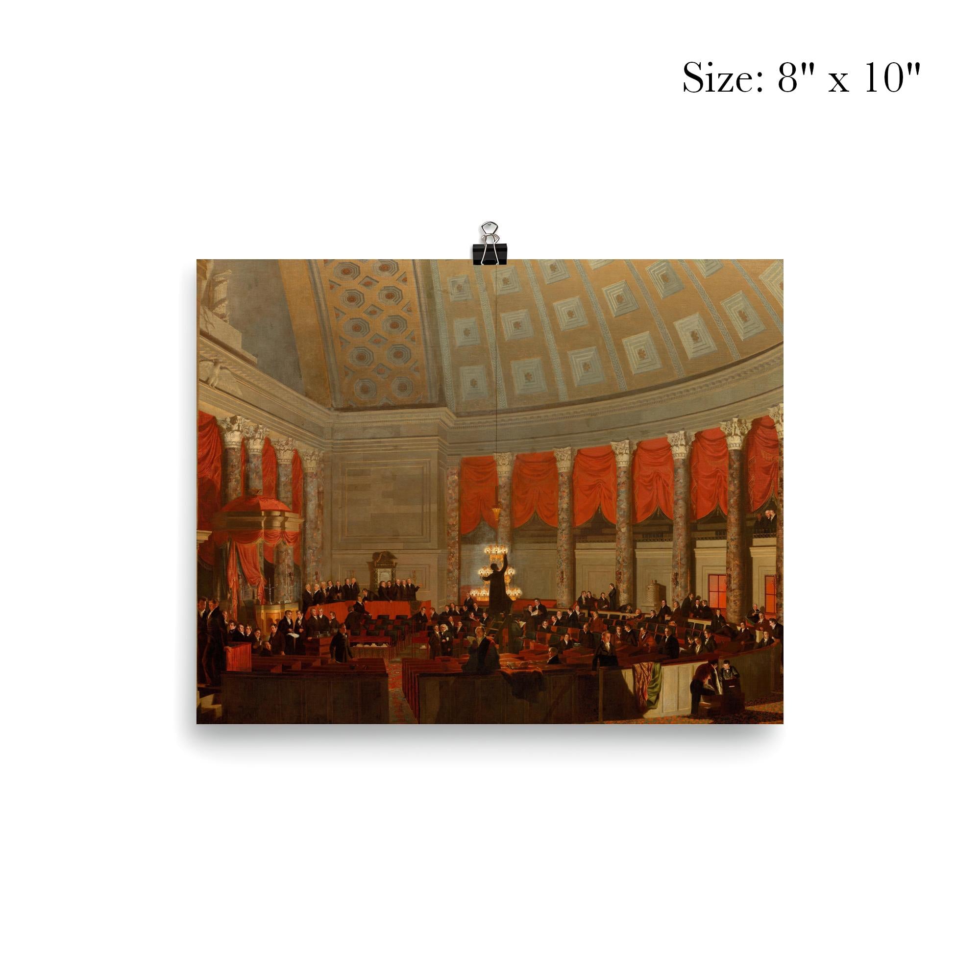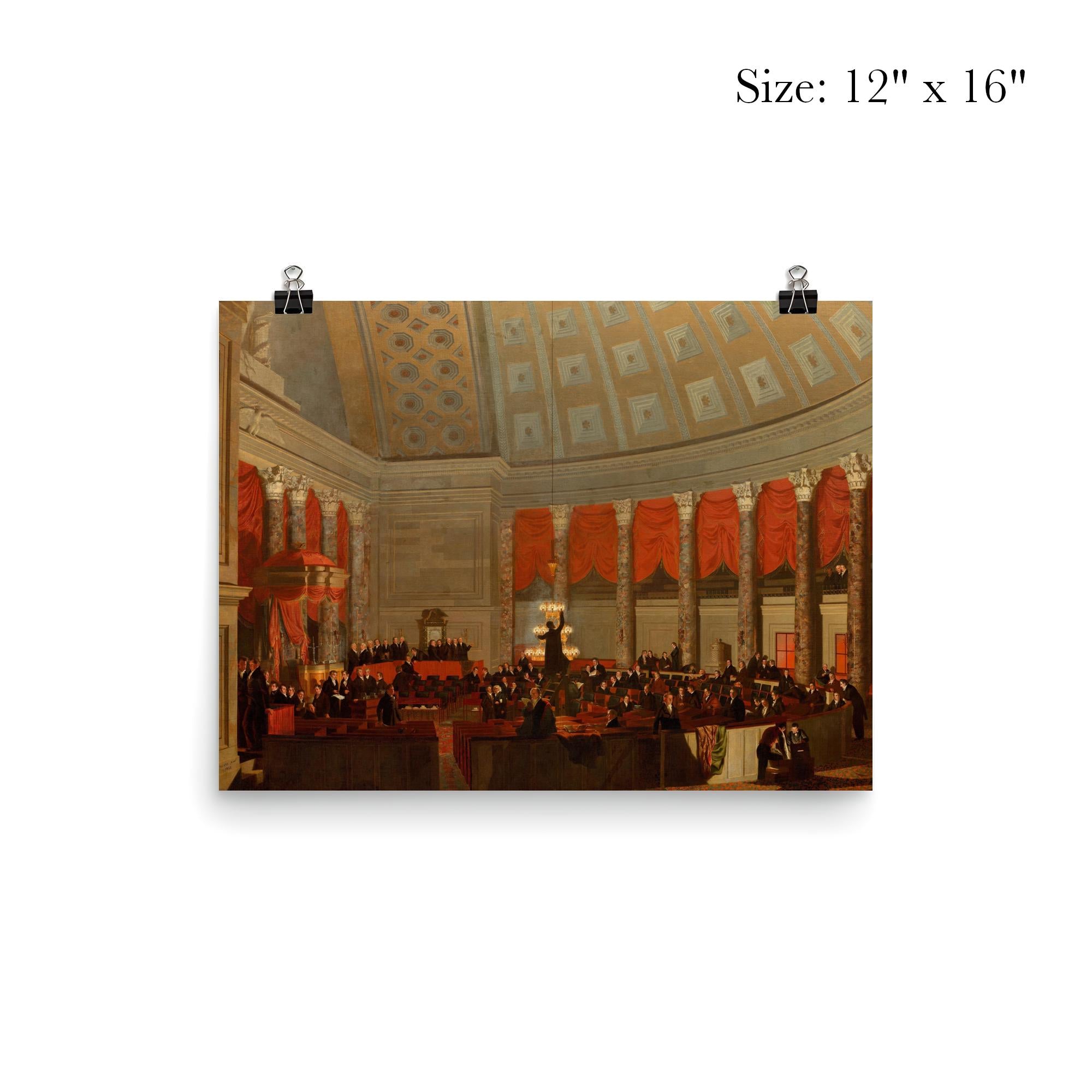 Step back in time with this striking 1822 poster of The House of Representatives by Samuel F. B. Morse. A remarkable historical artifact, it captures an iconic moment in early American democracy, reflecting the earnest spirit of governance and debate. Perfect for history enthusiasts or those who appreciate the roots of American political life, this poster brings a powerful piece of the past into your space.