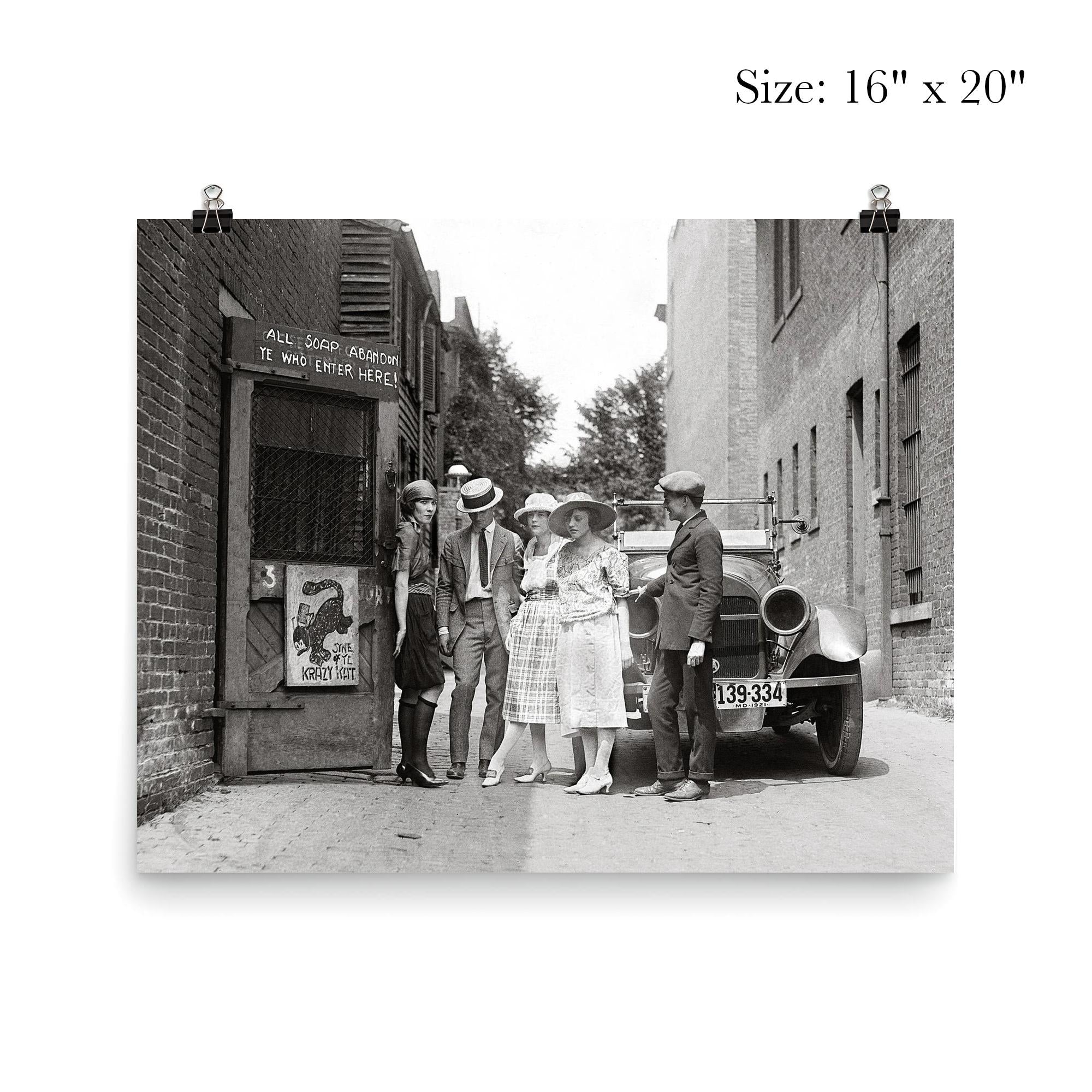 Step back into the Roaring Twenties with this captivating poster of The Krazy Kat, a legendary Washington, DC speakeasy from 1921. Featuring flappers and the electric spirit of the Prohibition era, this vintage piece captures the secret allure and rebellious charm of a time when nightlife thrived behind closed doors. A must-have for lovers of history, jazz, and the timeless thrill of the forbidden.