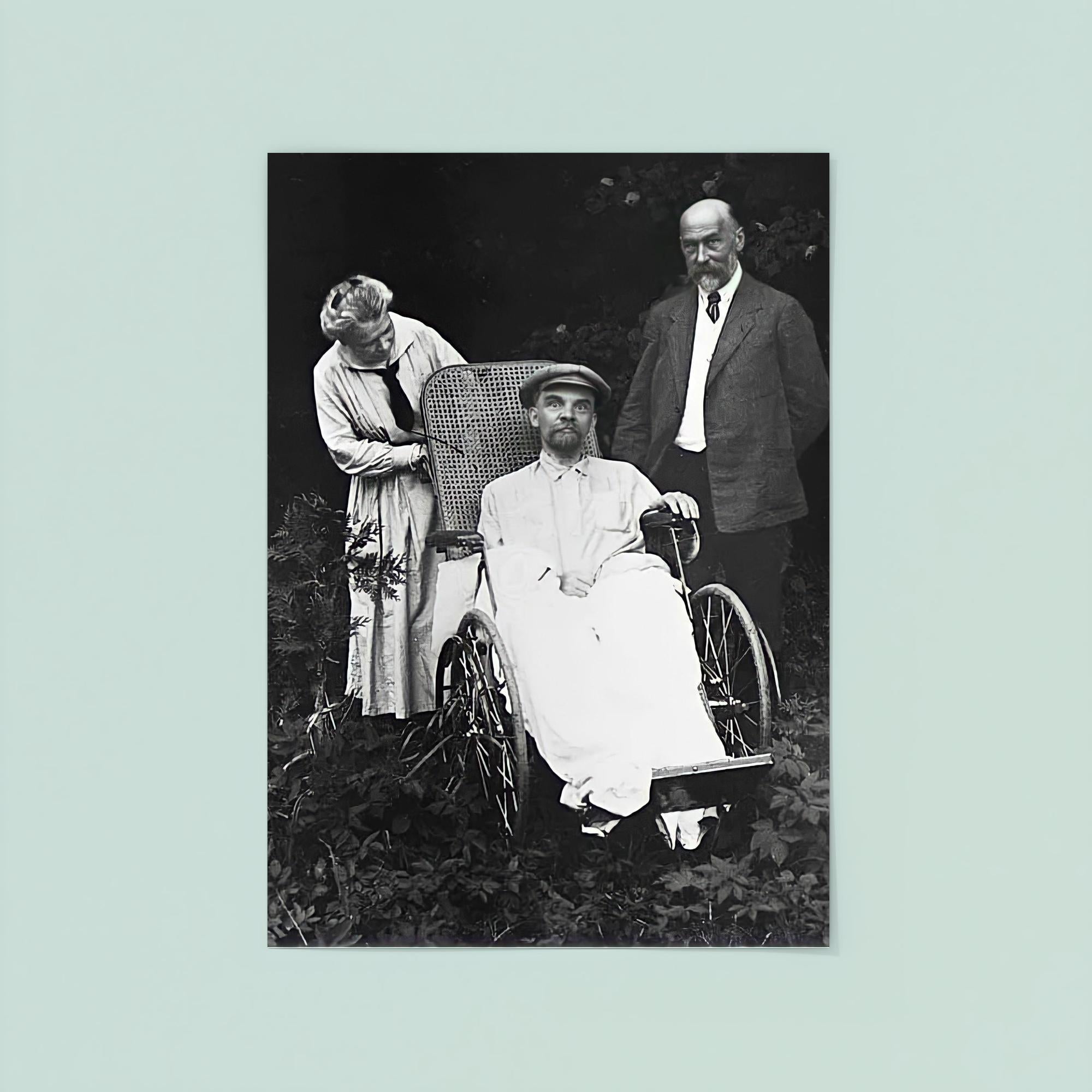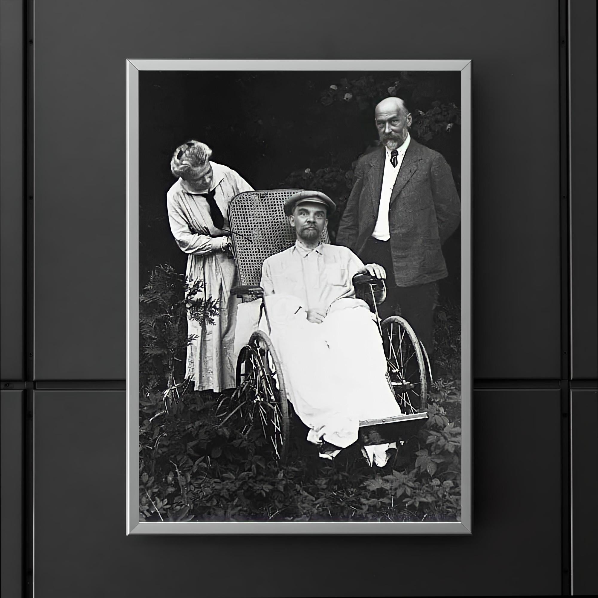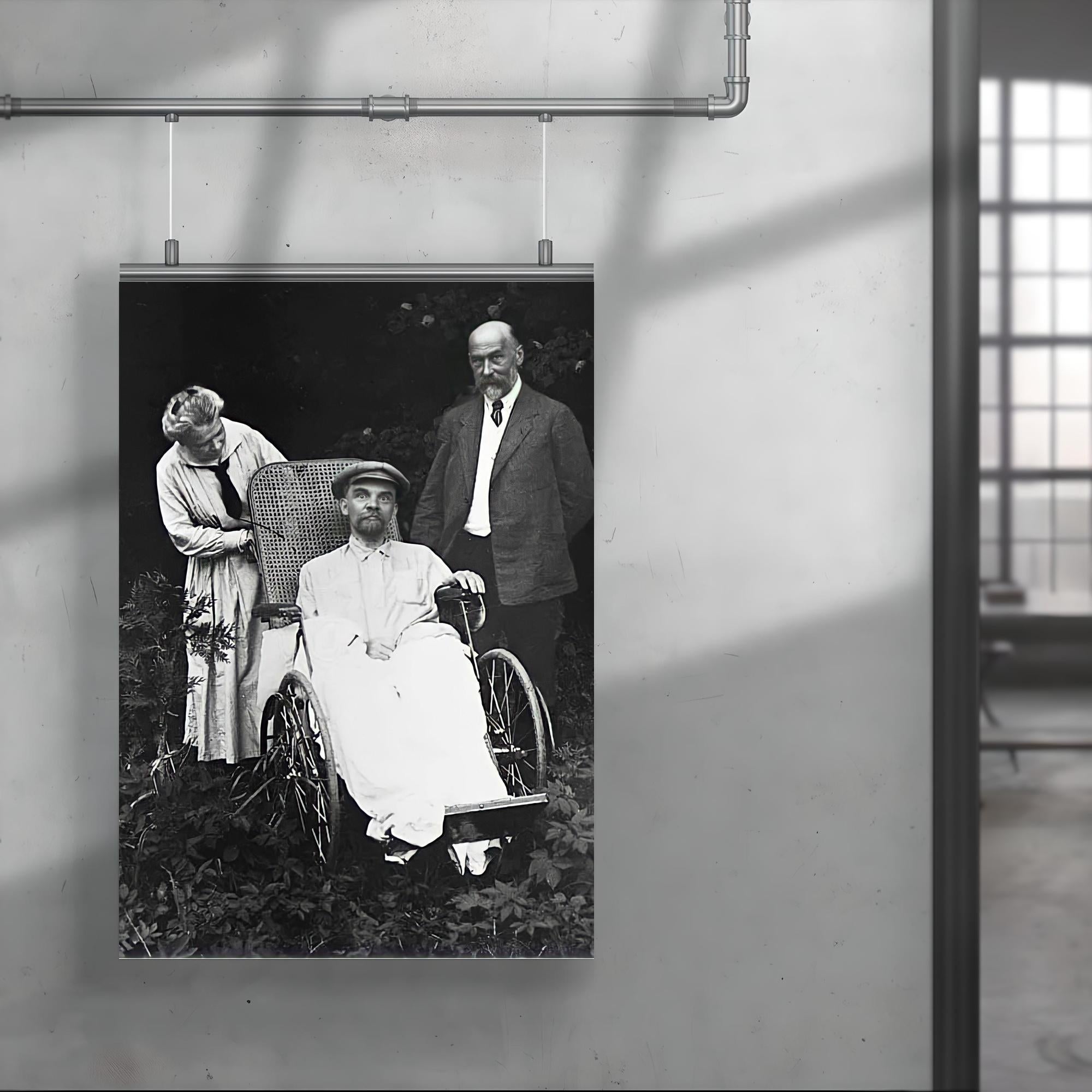 Capture a poignant moment in history with this striking poster of The Last Photograph of Lenin with His Doctor and Sister, taken in May 1923. This rare image offers a deeply personal glimpse into the final days of a revolutionary leader, framed by the presence of those closest to him. Perfect for history enthusiasts and collectors alike, this poster brings a powerful piece of the past into your space with authenticity and timeless resonance.