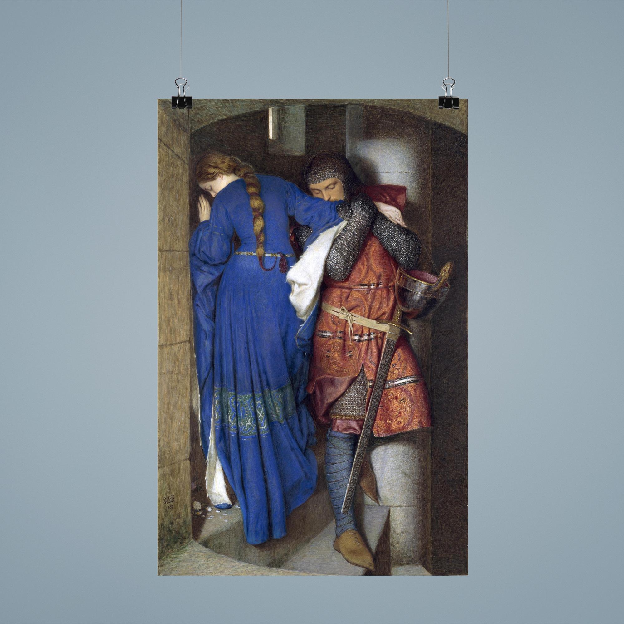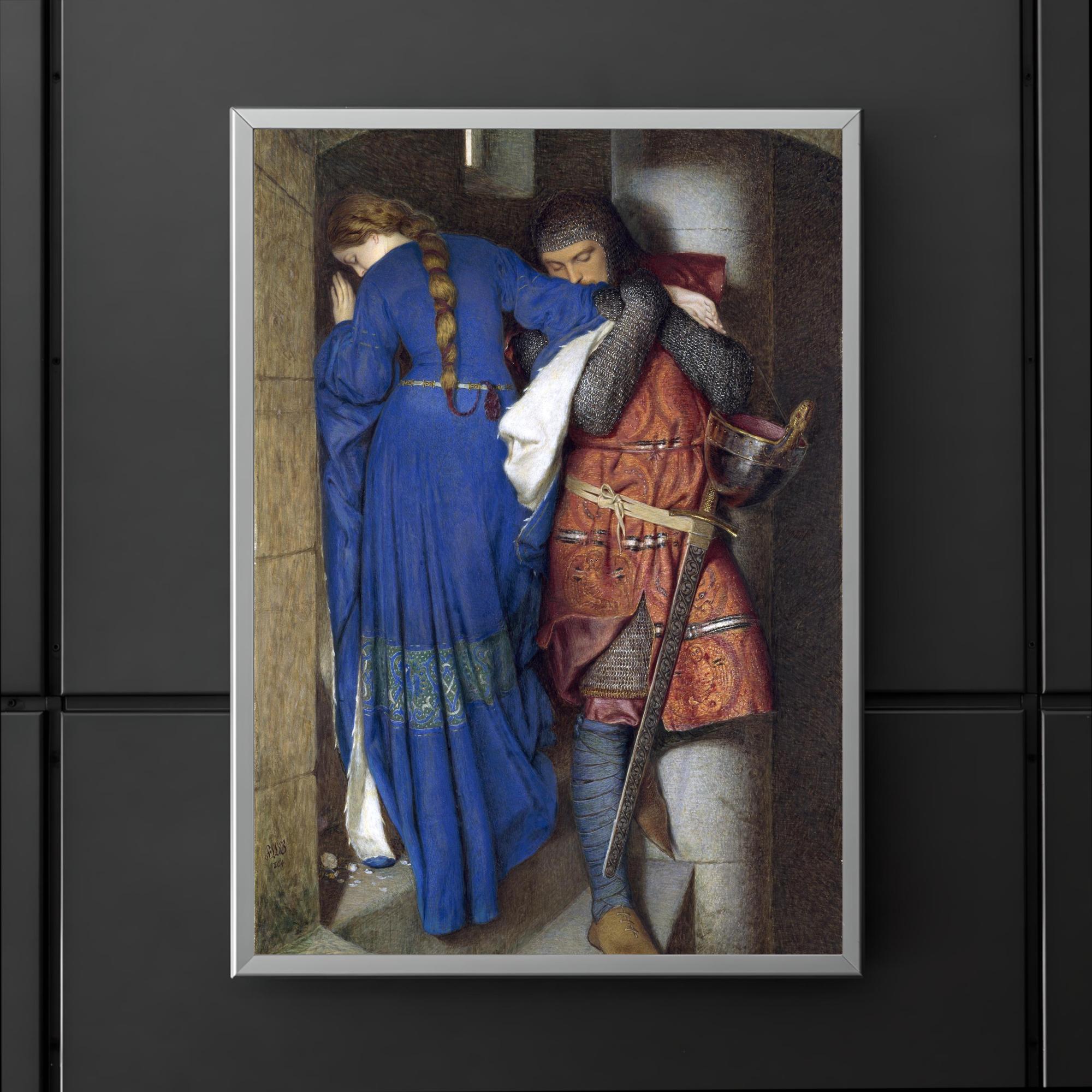 The Meeting on the Turret Stairs Poster Print – Frederic William Burton 1864 Romantic Wall Art for Elegant Home Decor