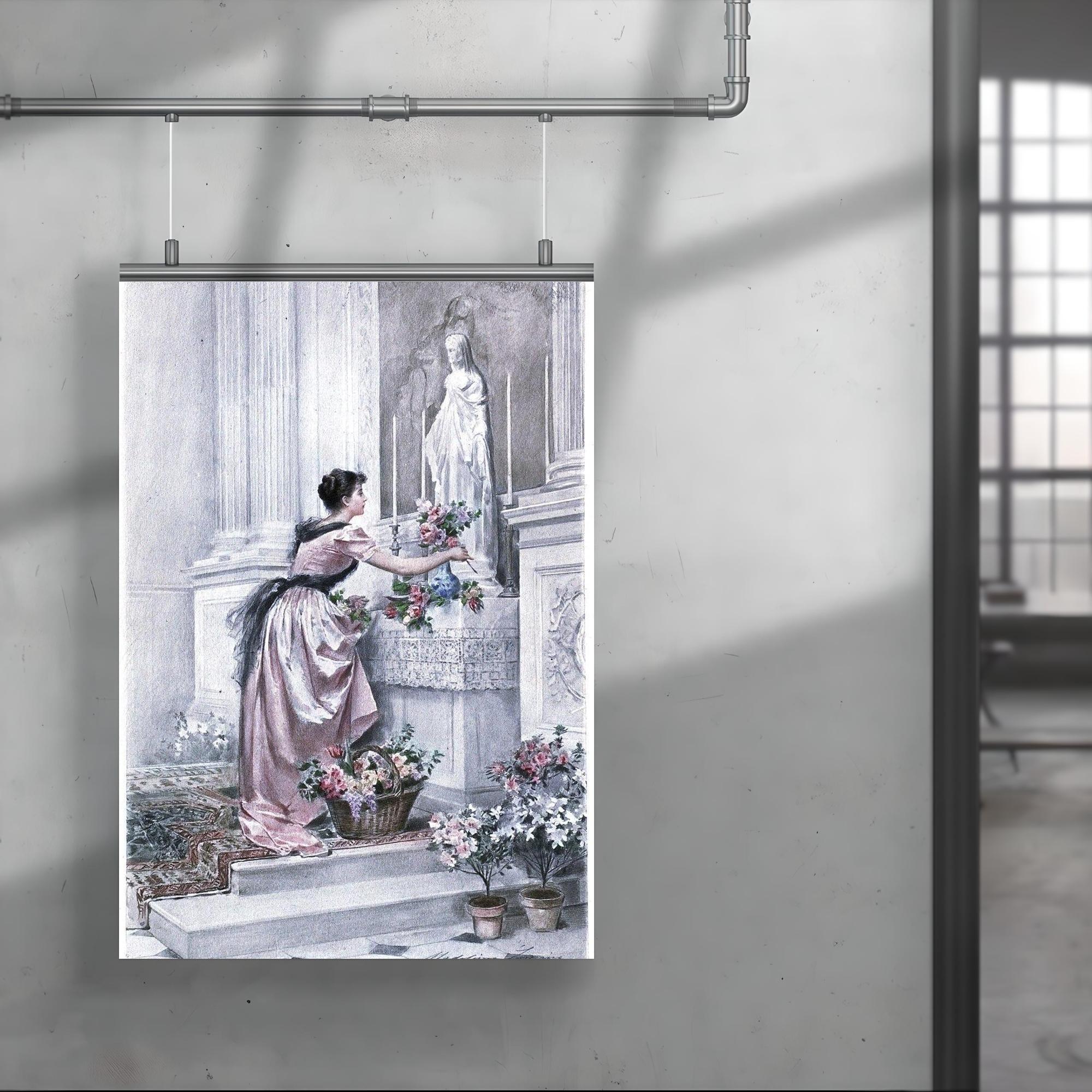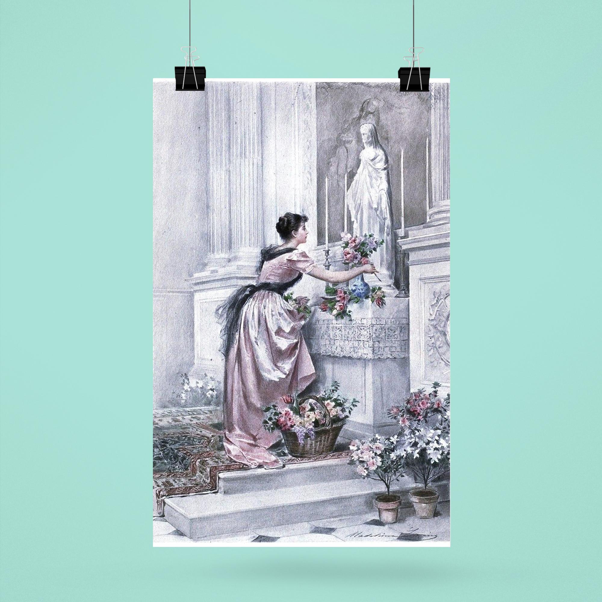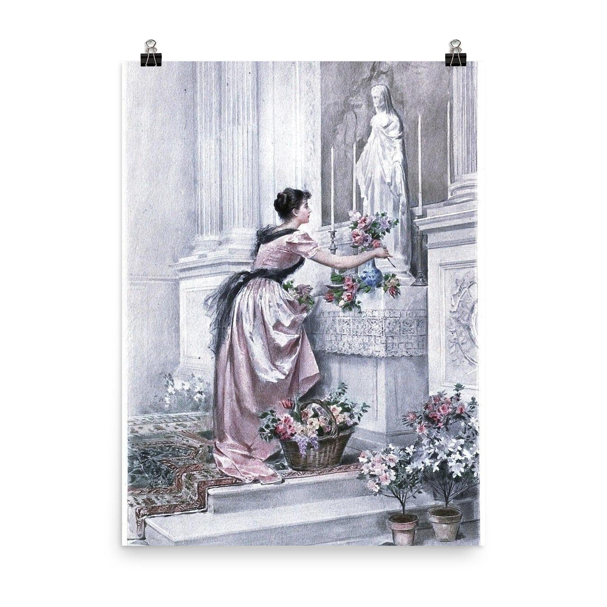 The Month of Mary 1886 Vintage Poster Print by Madeleine Lemaire – Elegant Floral Wall Art for Classic Home Decor