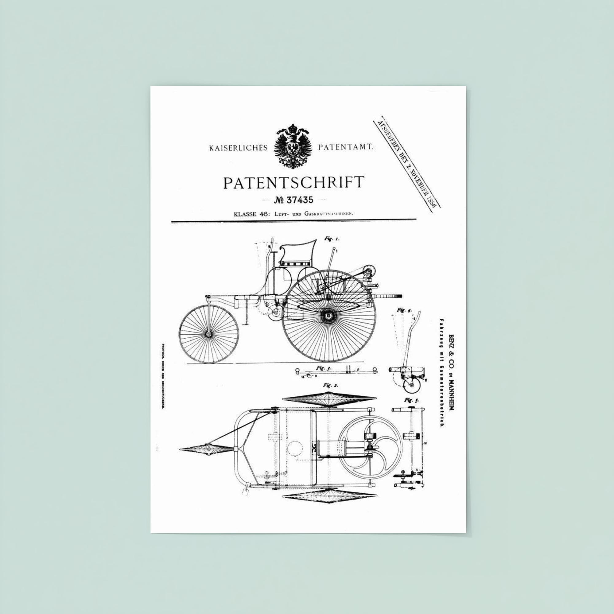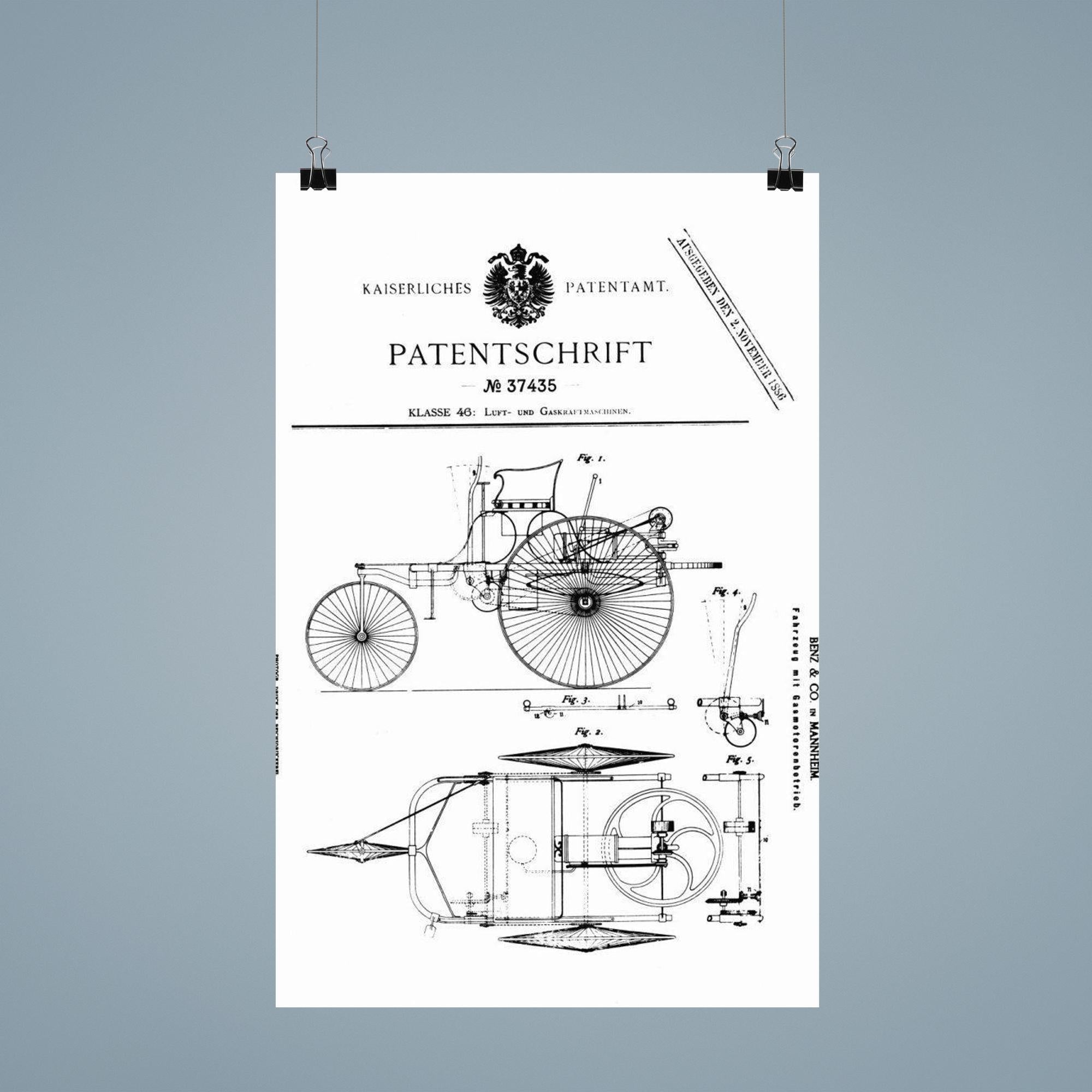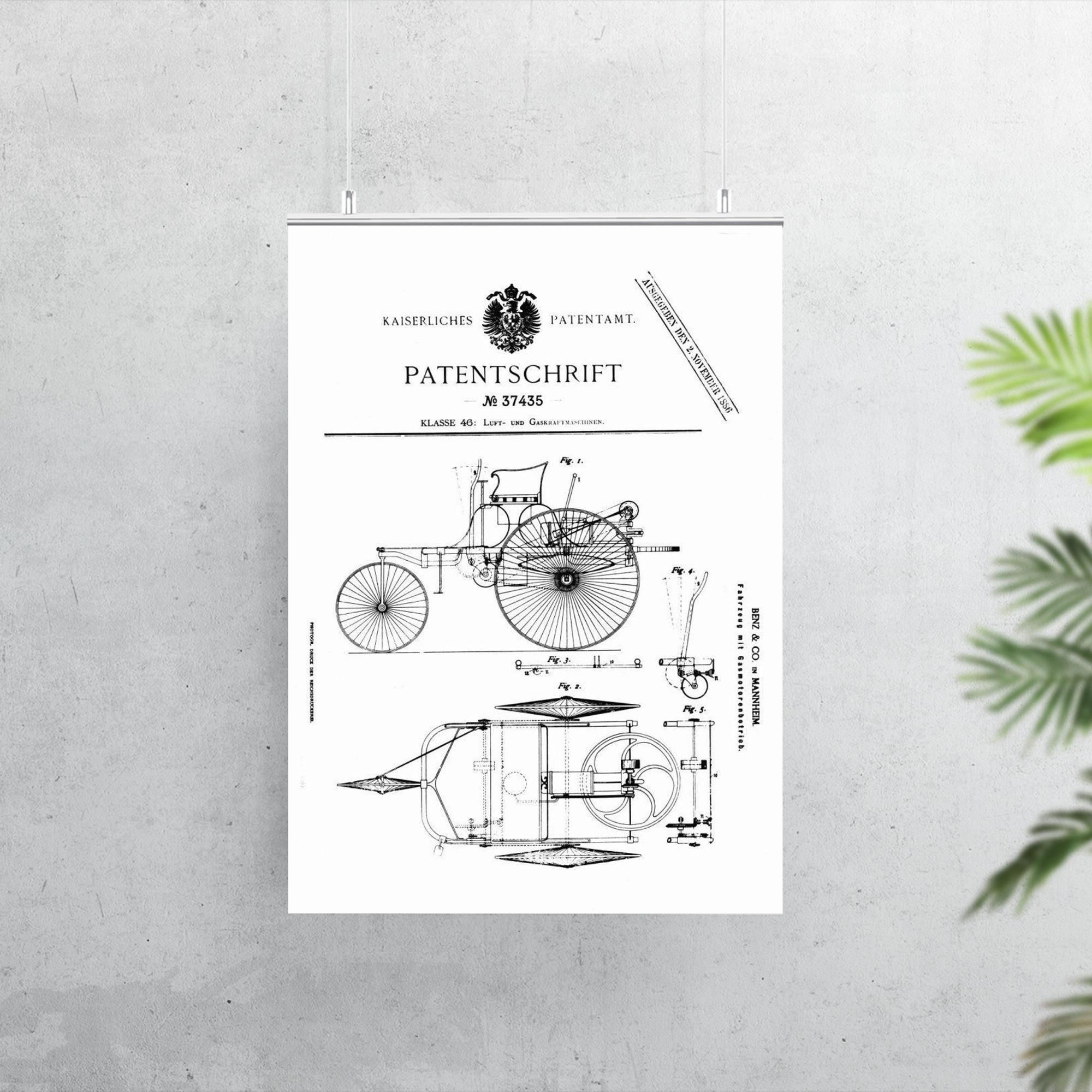 Celebrate automotive history with this striking poster of the original official patent for the Benz Motorwagen — the world’s first-ever car patent. A timeless tribute to innovation, it captures a pivotal moment that ignited the age of the automobile. Perfect for enthusiasts and collectors, this poster turns a groundbreaking blueprint into a bold statement of creativity and progress.