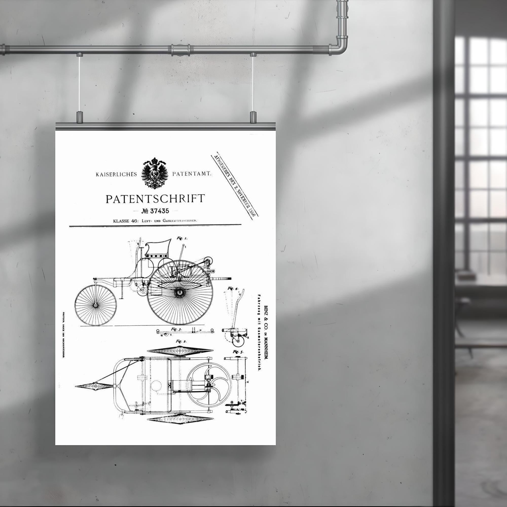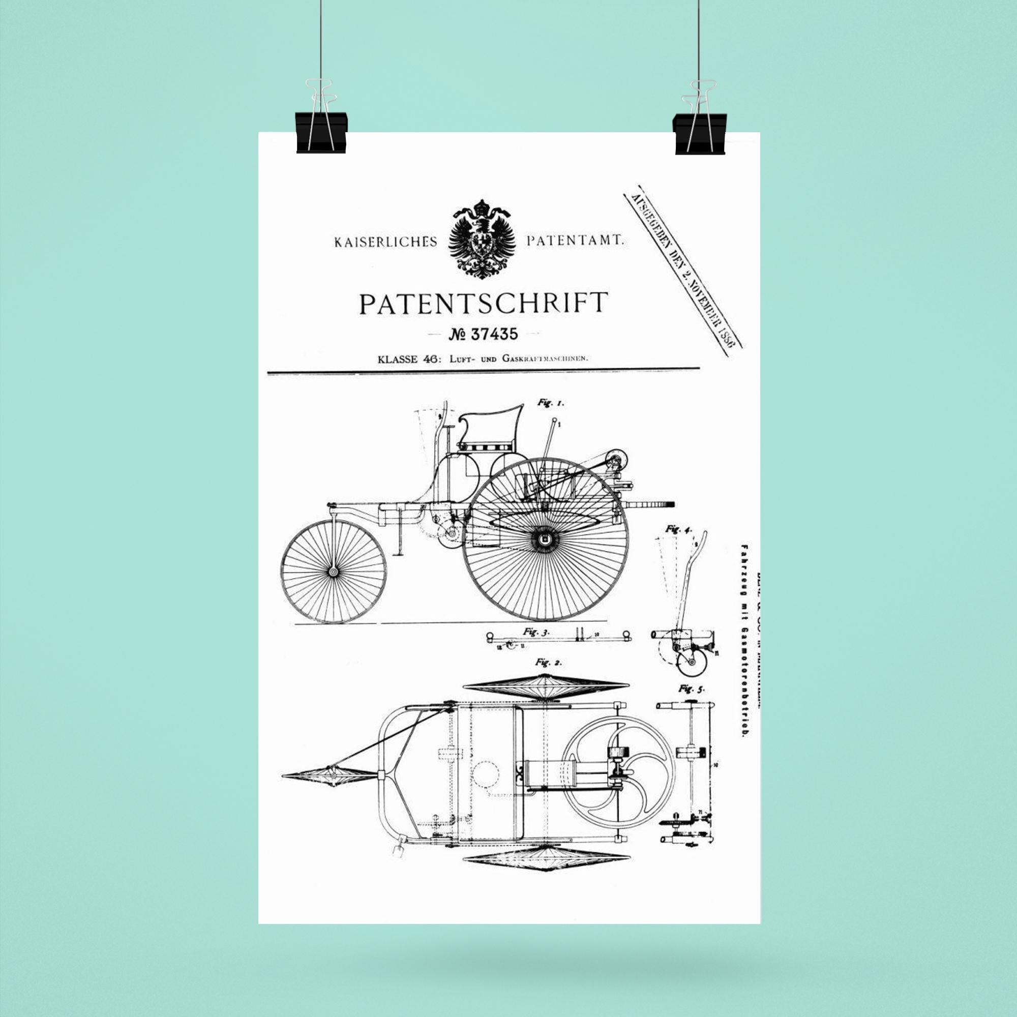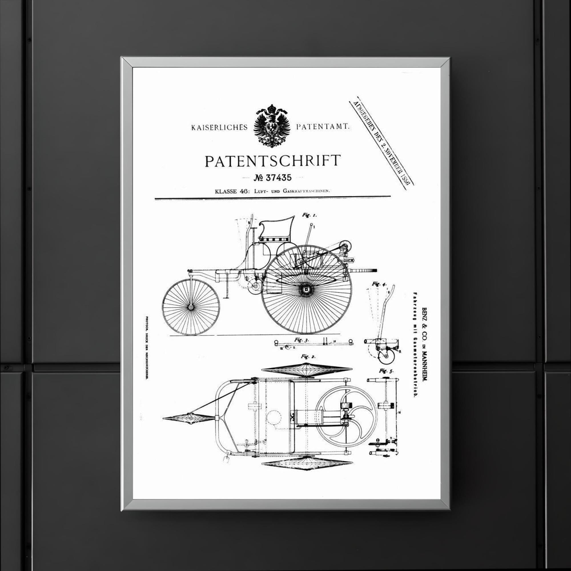 Celebrate automotive history with this striking poster of the original official patent for the Benz Motorwagen — the world’s first-ever car patent. A timeless tribute to innovation, it captures a pivotal moment that ignited the age of the automobile. Perfect for enthusiasts and collectors, this poster turns a groundbreaking blueprint into a bold statement of creativity and progress.