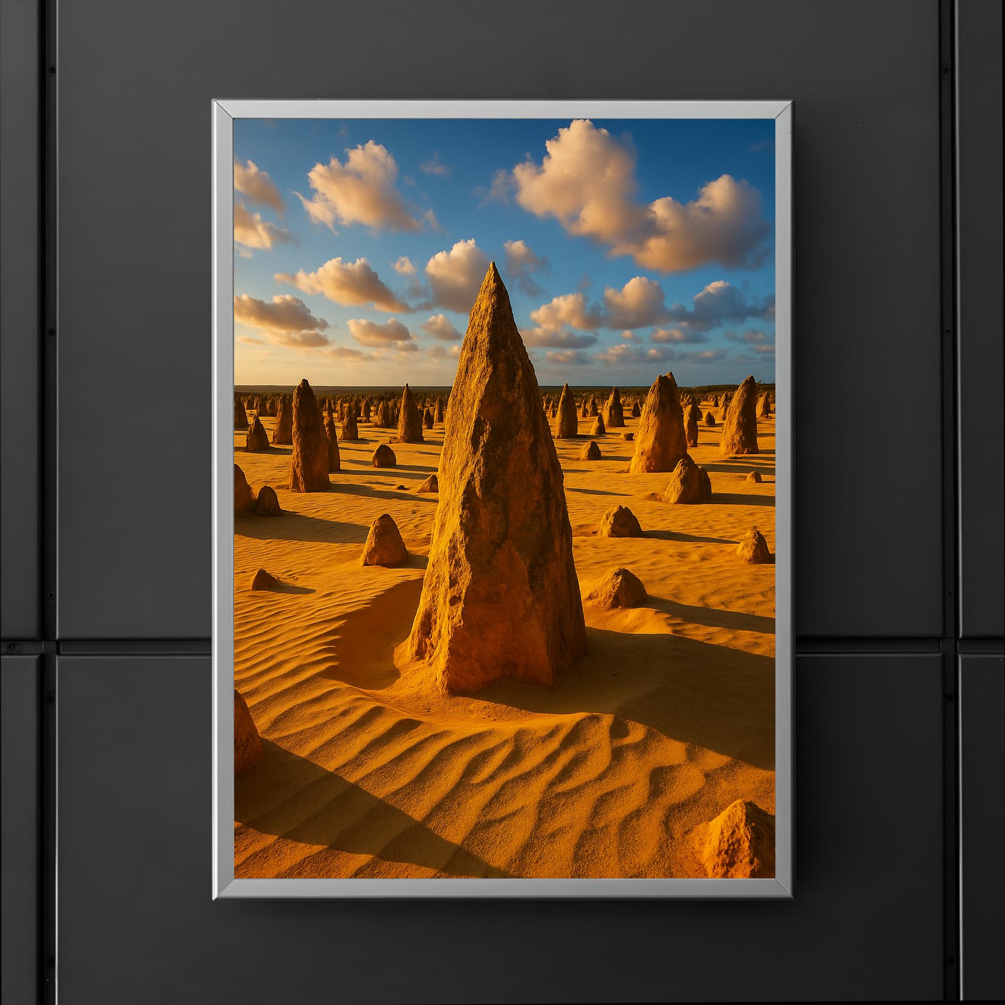 Transform your space with this stunning poster of The Pinnacles in Western Australia, showcasing the region’s unique and striking limestone formations. Perfect for nature lovers and adventure seekers alike, this piece captures the raw beauty and mystique of one of Australia’s most iconic landscapes. Bring home a touch of the wild and inspire your wanderlust every day.