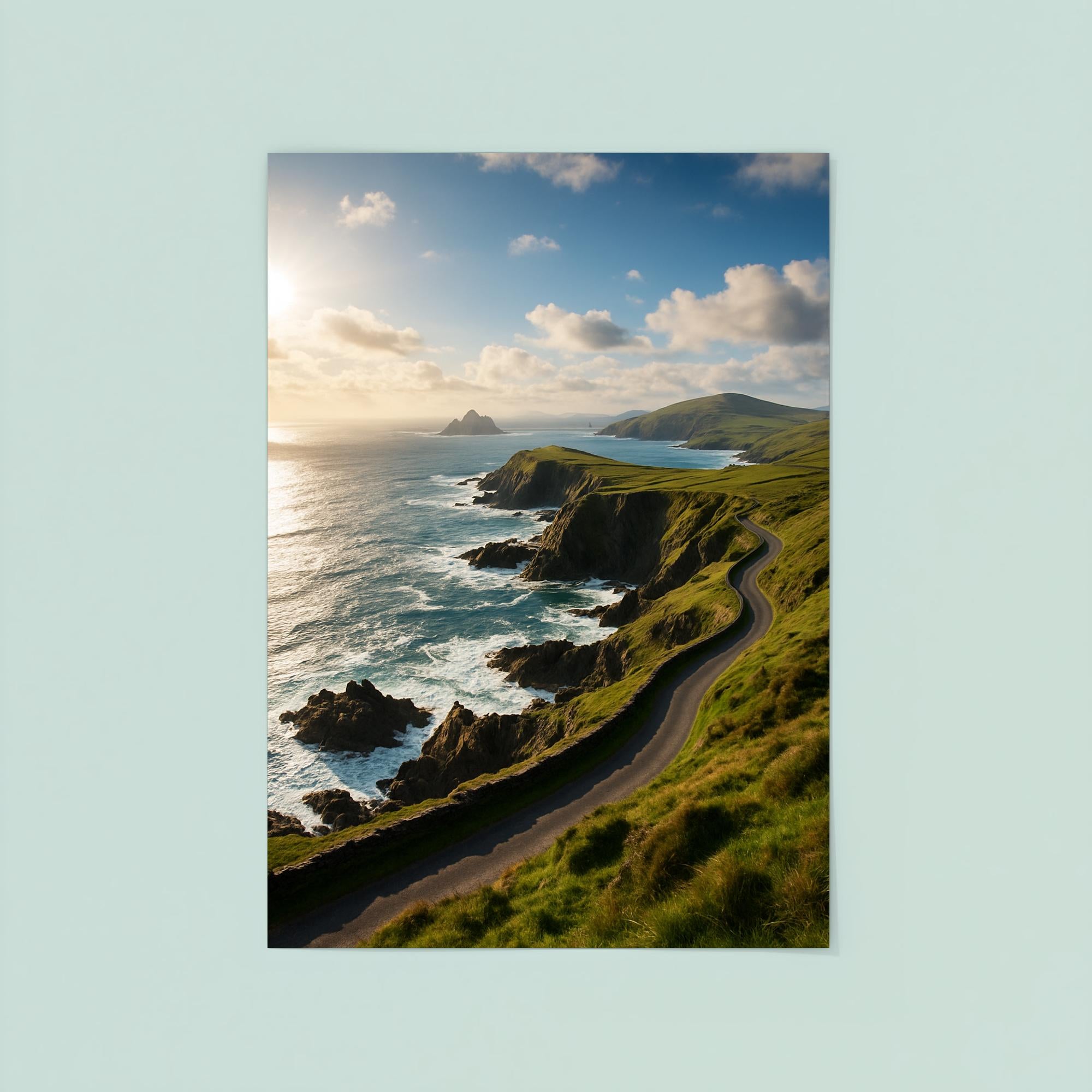 Capture the rugged beauty of Ireland’s Skellig Ring Coast with this stunning poster, a perfect tribute to one of the country’s most breathtaking coastal drives. Whether adorning your living room or office, it brings a piece of wild, serene nature into your space, inspiring adventure and tranquility every day.