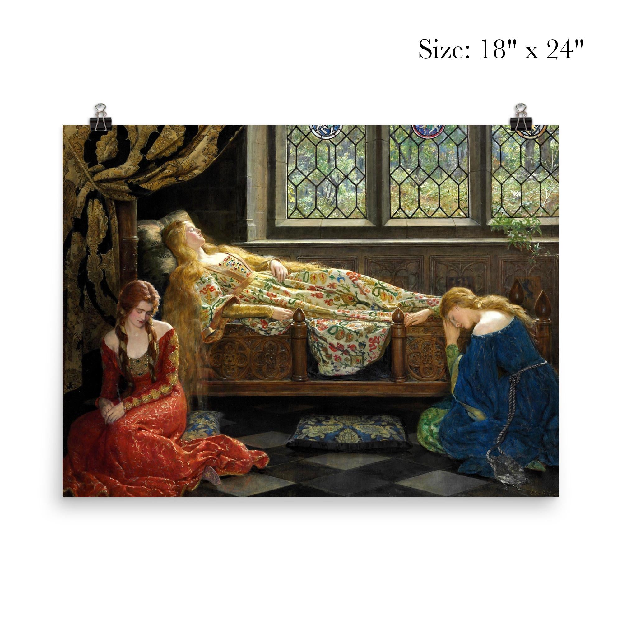 Sleeping Beauty John Collier 1921 Poster Print Vintage Art Wall Decor Classic Fairy Tale Illustration