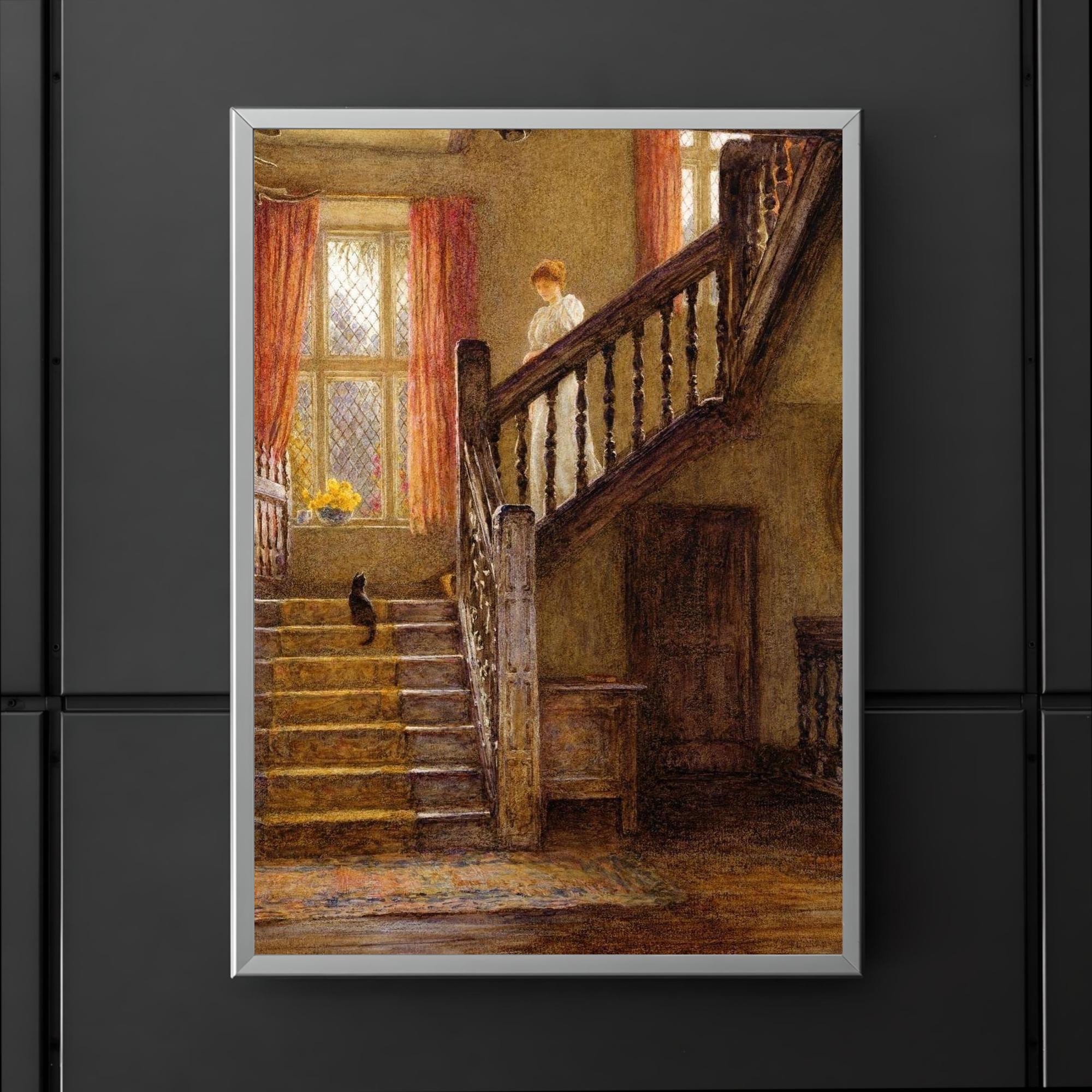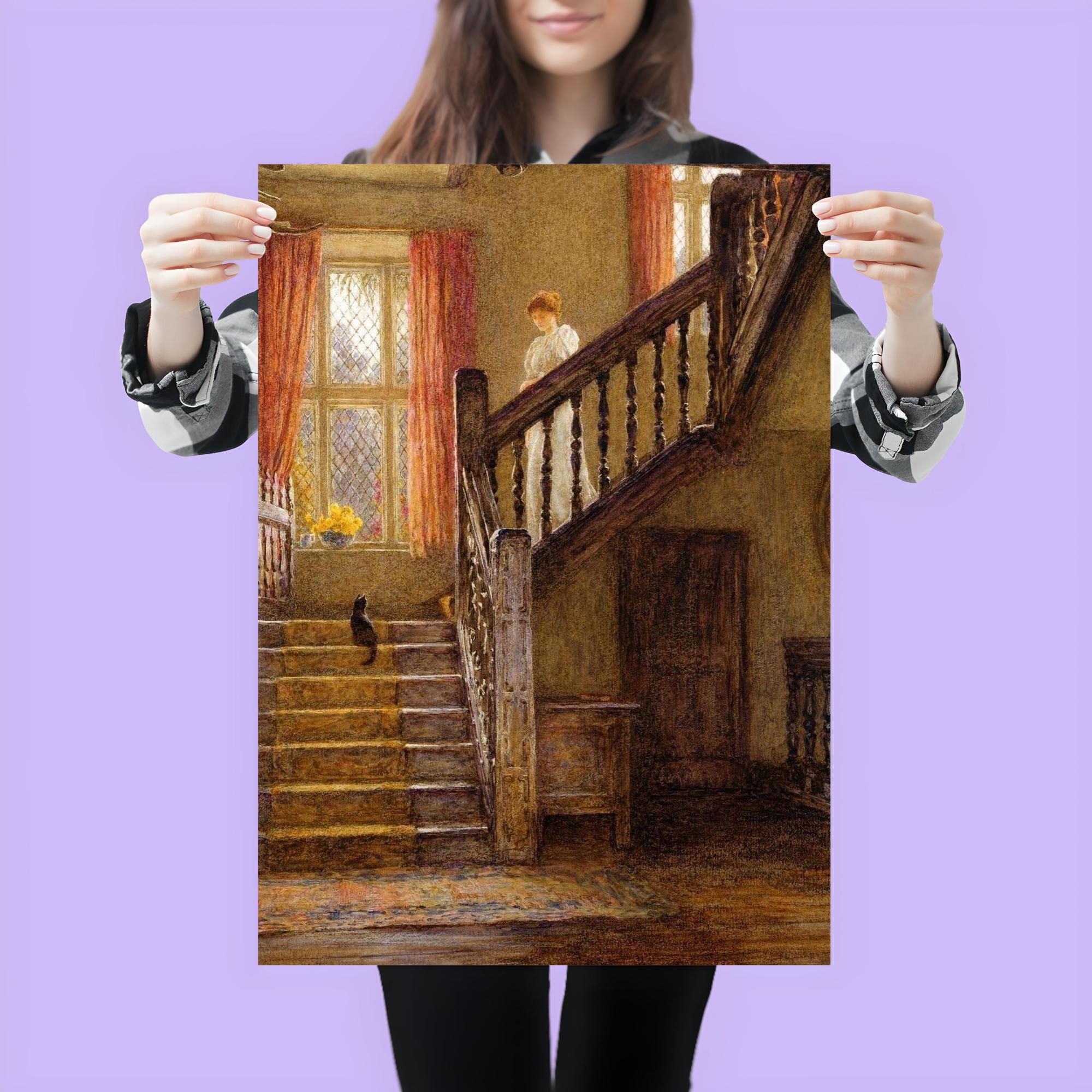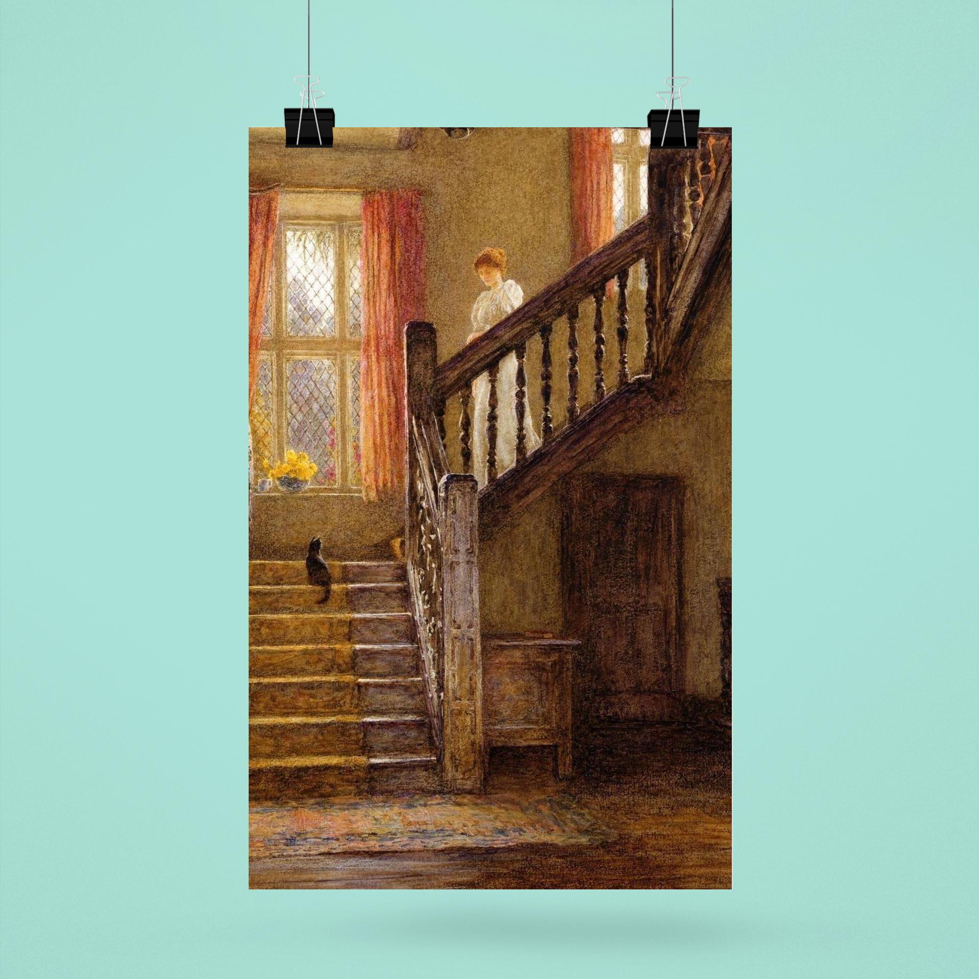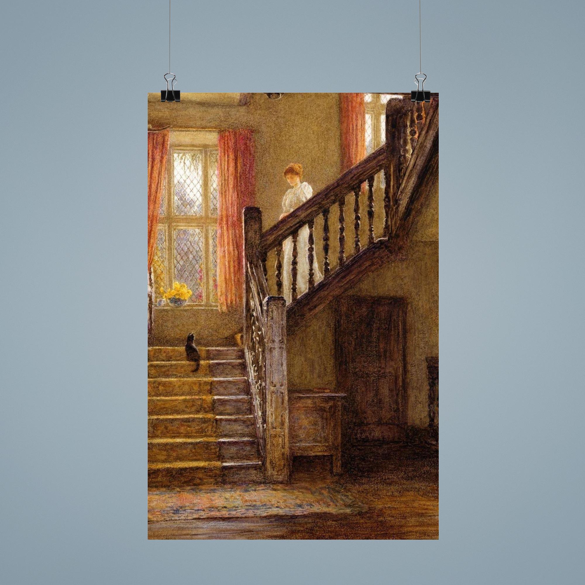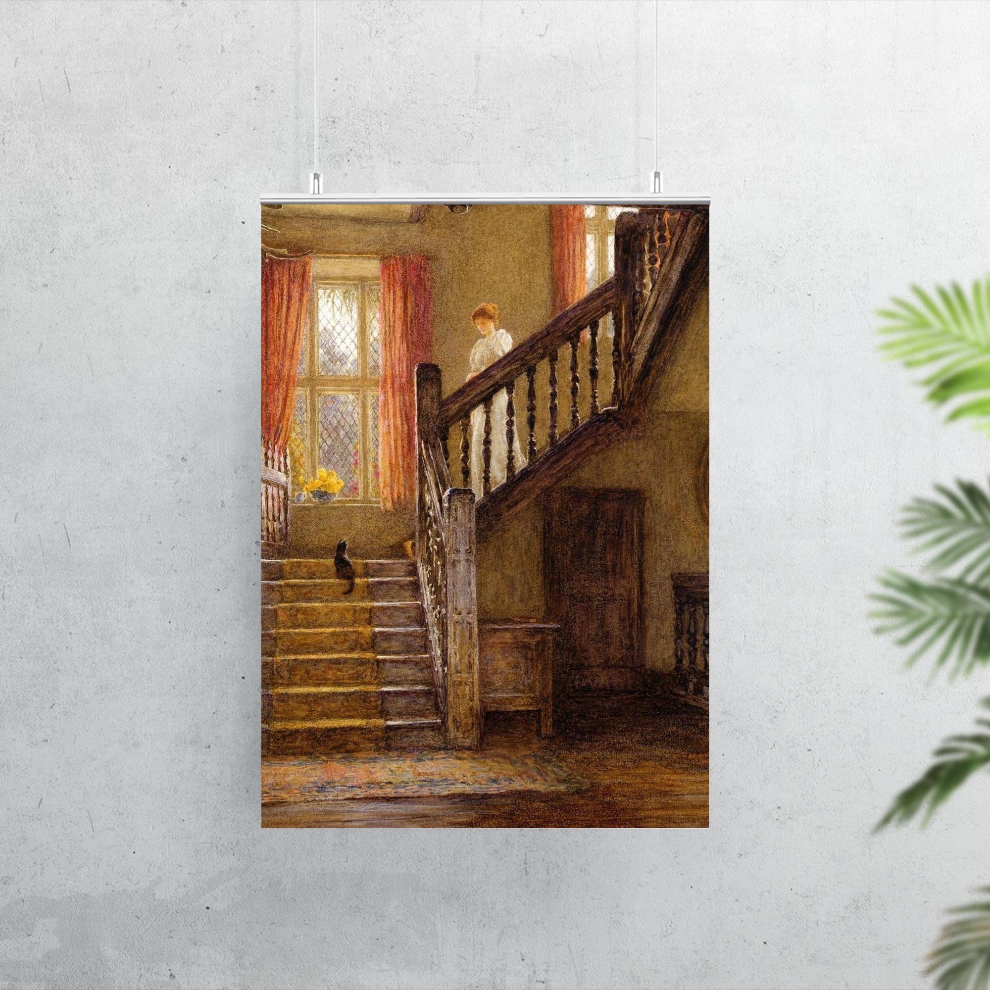 Helen Allingham The Staircase Poster Print – Vintage English Watercolor Wall Art for Elegant Home Decor