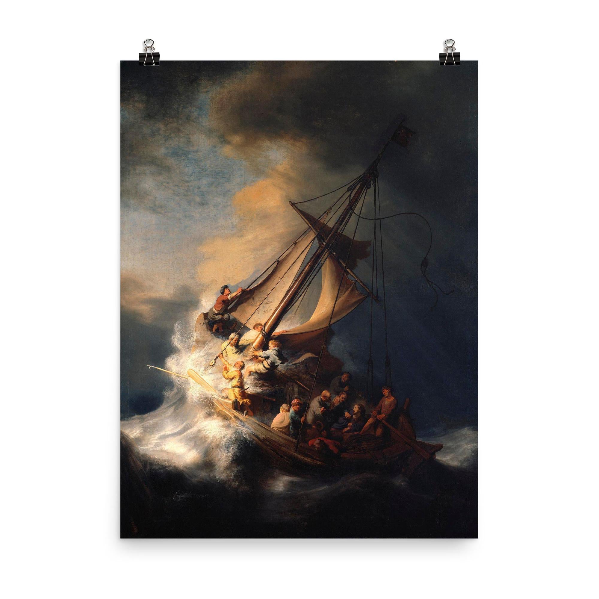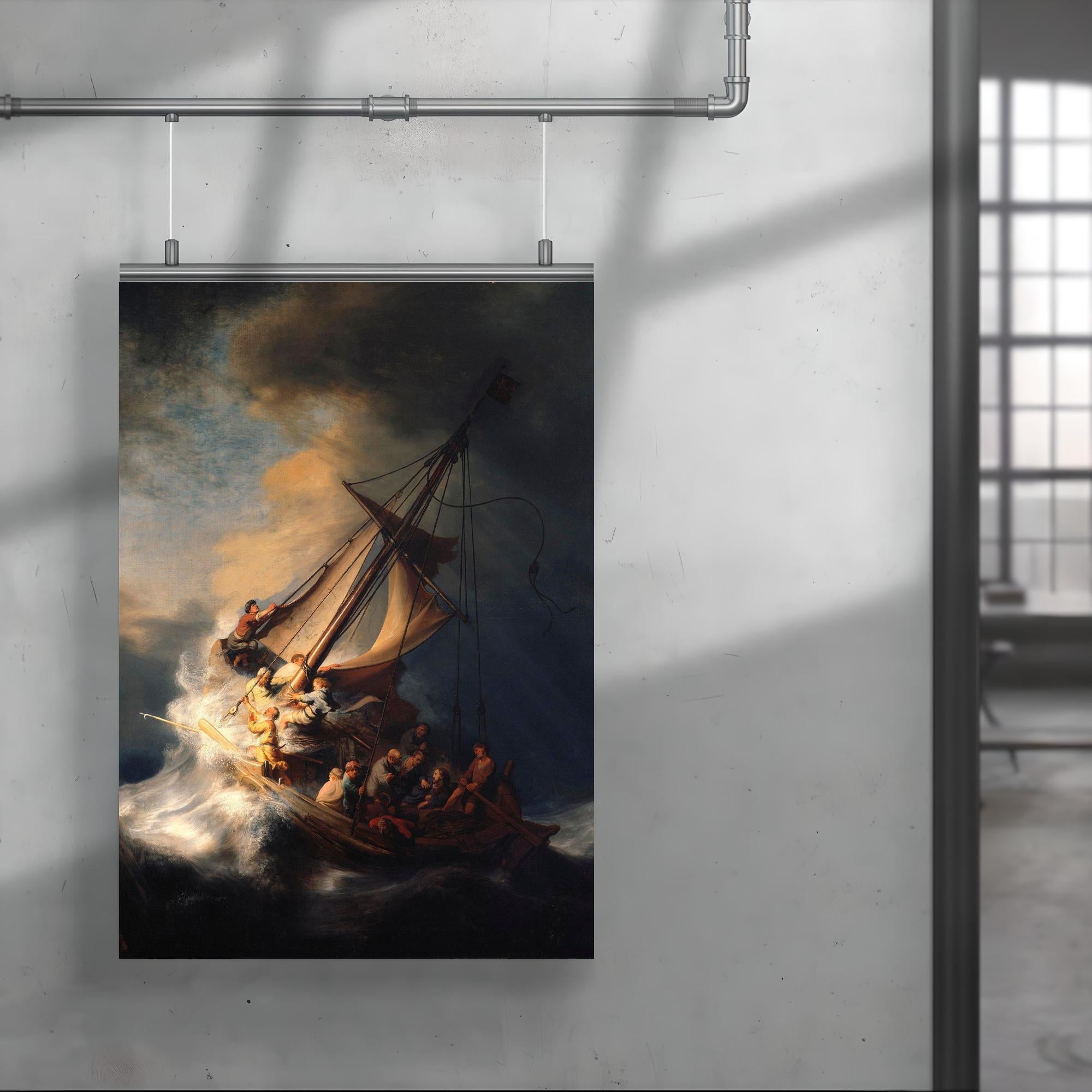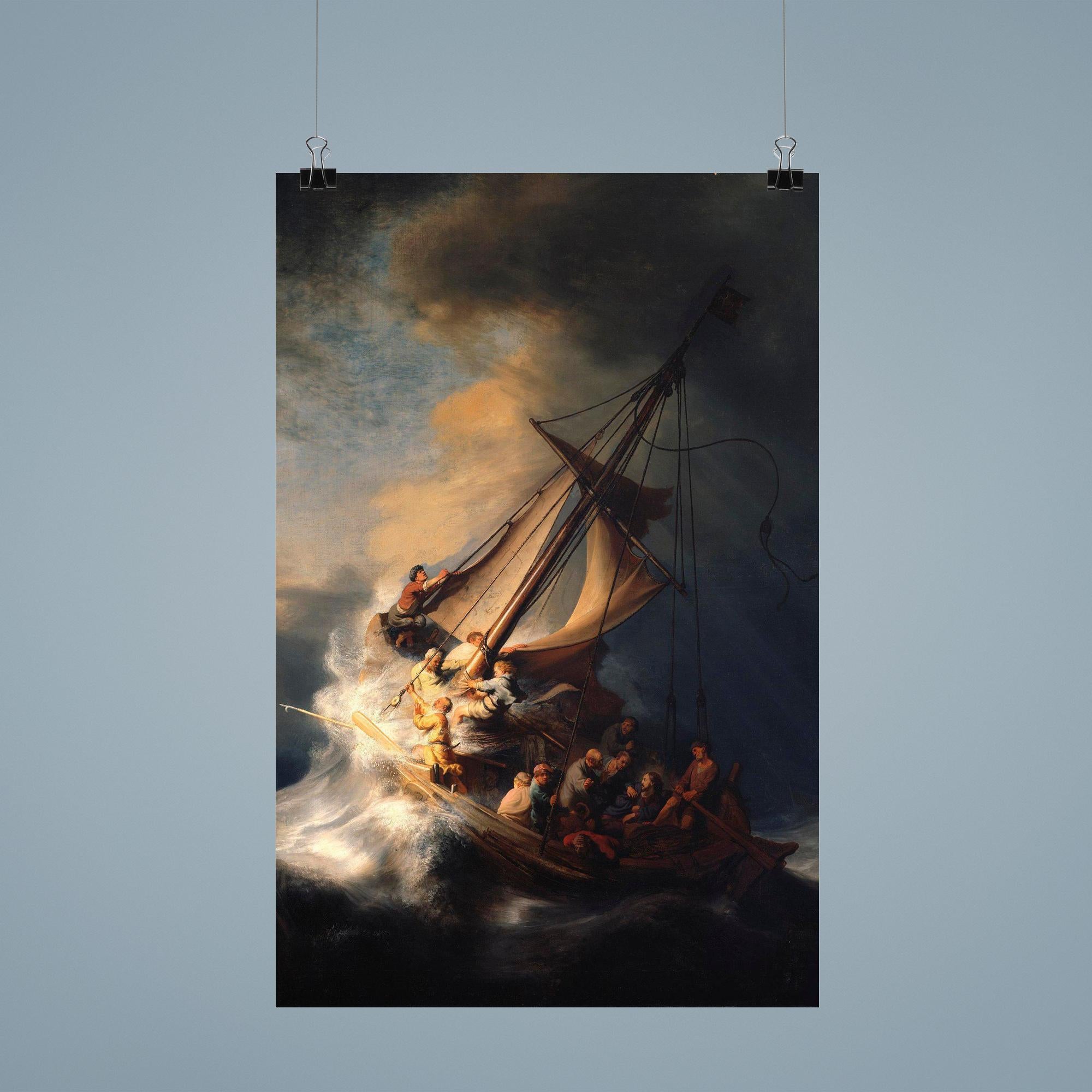 Transform your space with the dramatic intensity of Rembrandt’s *The Storm on the Sea of Galilee*. This stunning poster captures the masterful interplay of light and shadow as turbulent waves crash around a fragile boat, evoking both the power of nature and human resilience. Perfect for art lovers seeking a timeless masterpiece that sparks reflection and awe.