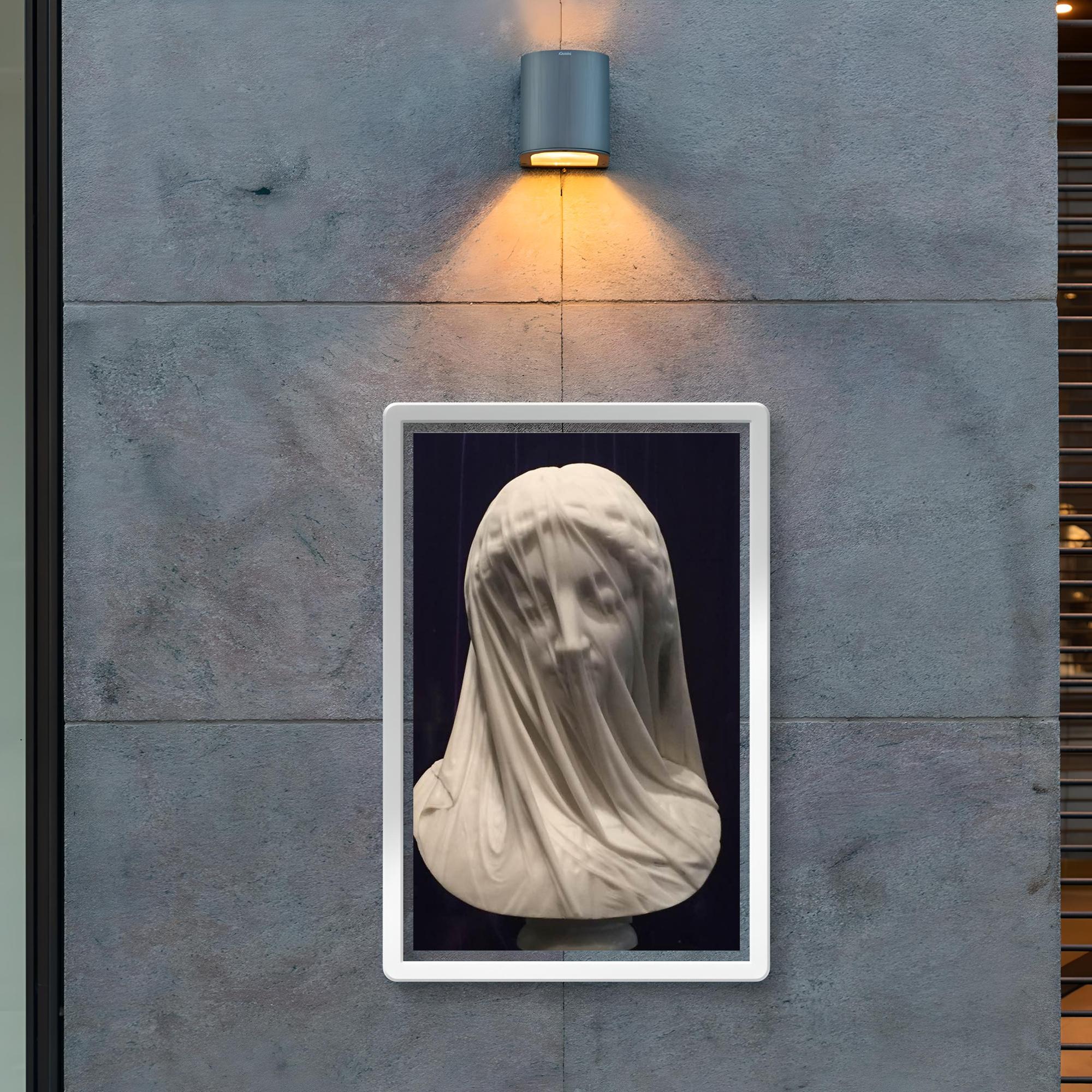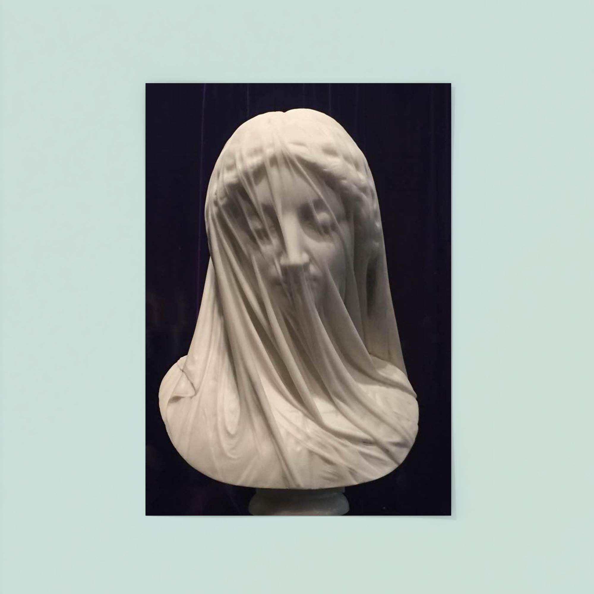Experience the haunting elegance of Giovanni Strazza’s *The Veiled Virgin*, masterfully captured in this exquisite poster. The delicate interplay of light and shadow reveals the intricate veil that shrouds the figure’s serene face, inviting you to explore the artistry and mystery of this 1850 masterpiece. Perfect for lovers of timeless sculpture and classic beauty, this poster breathes new life into a true work of art.