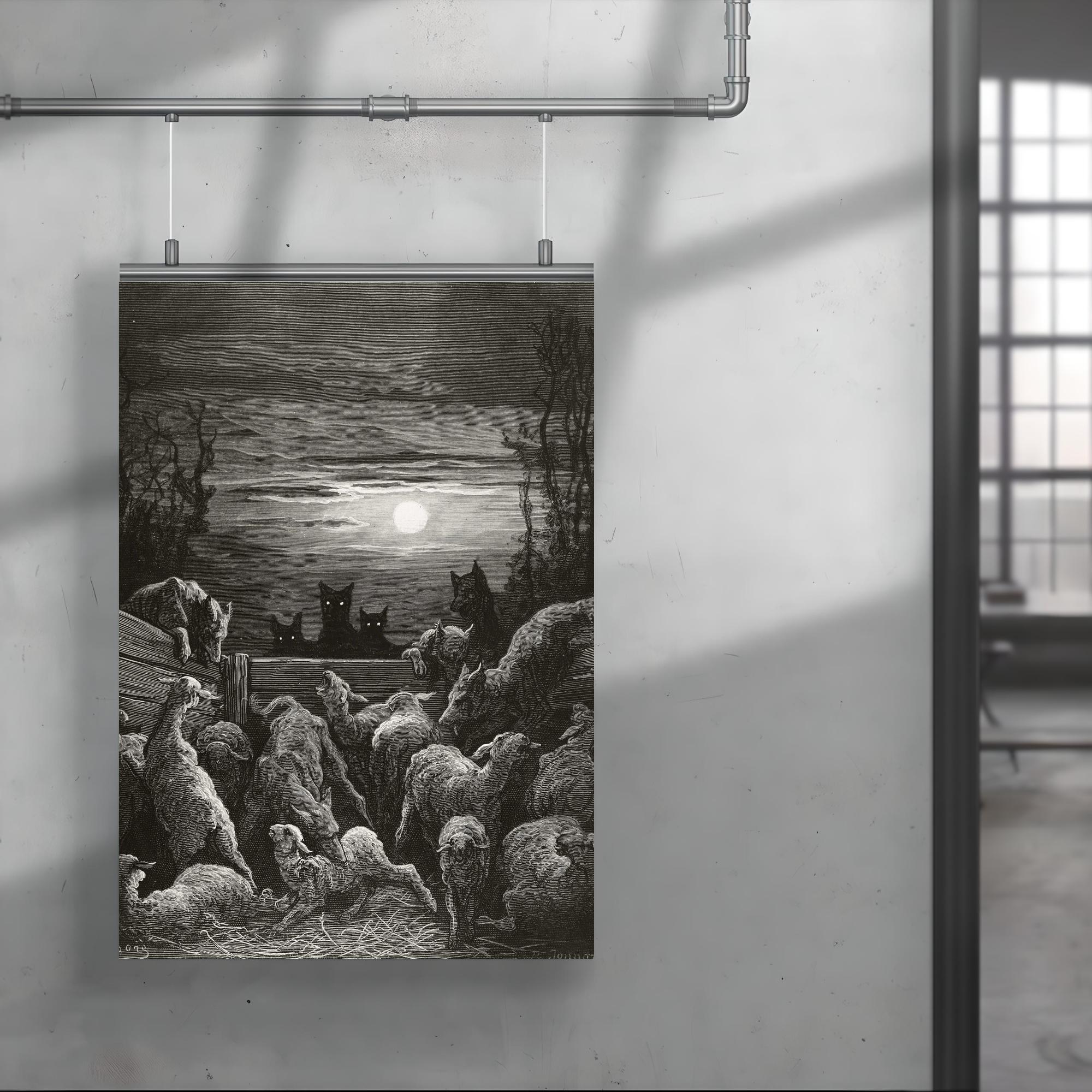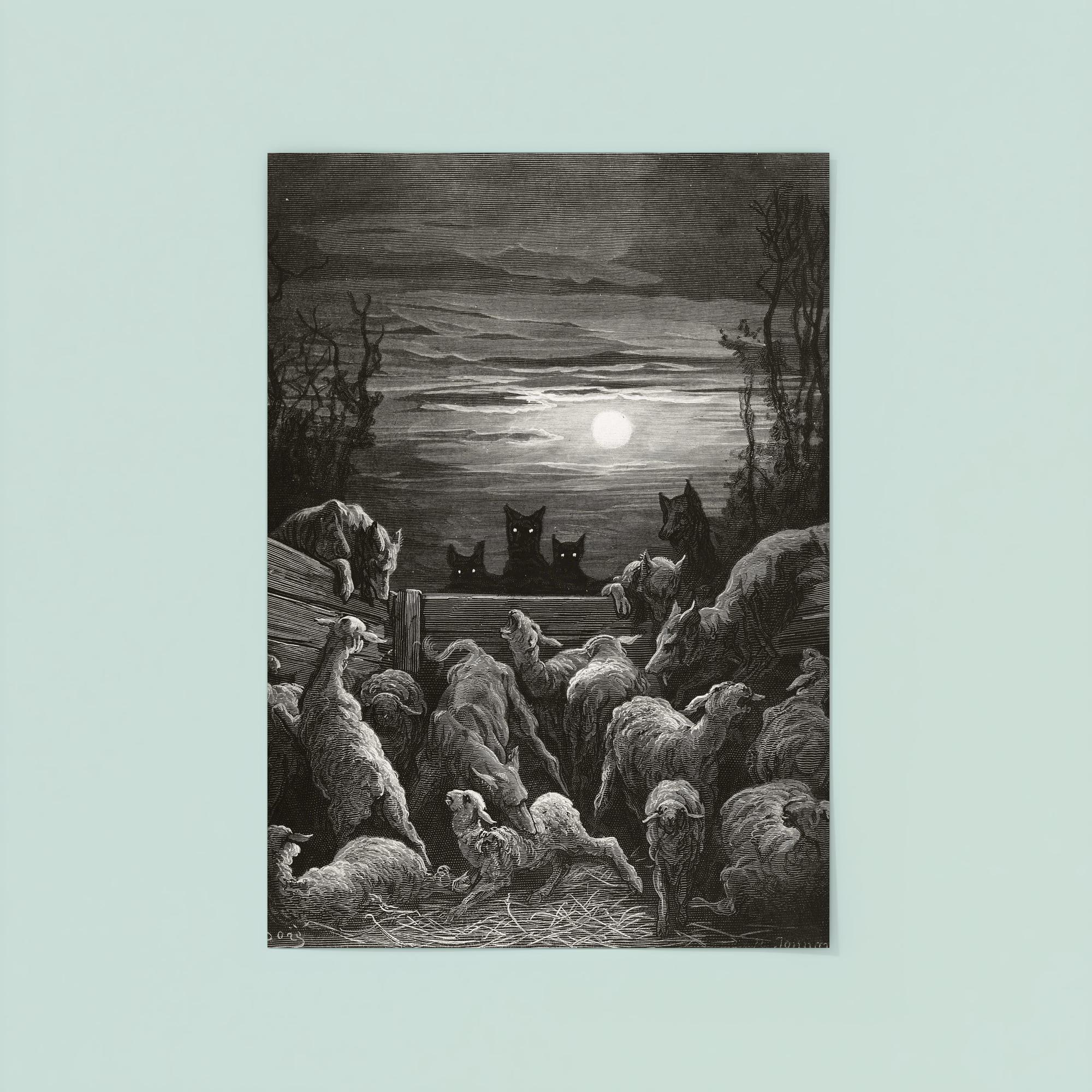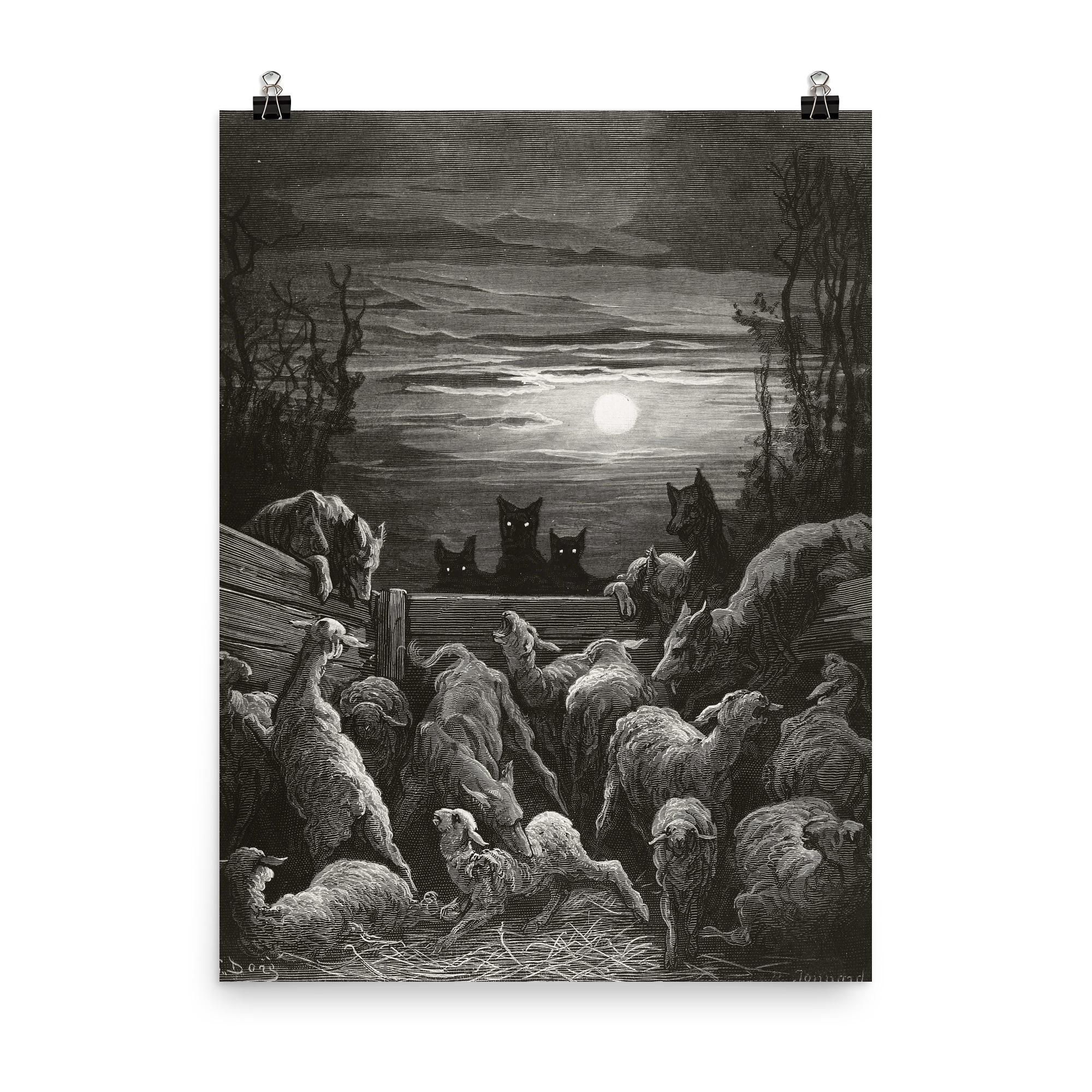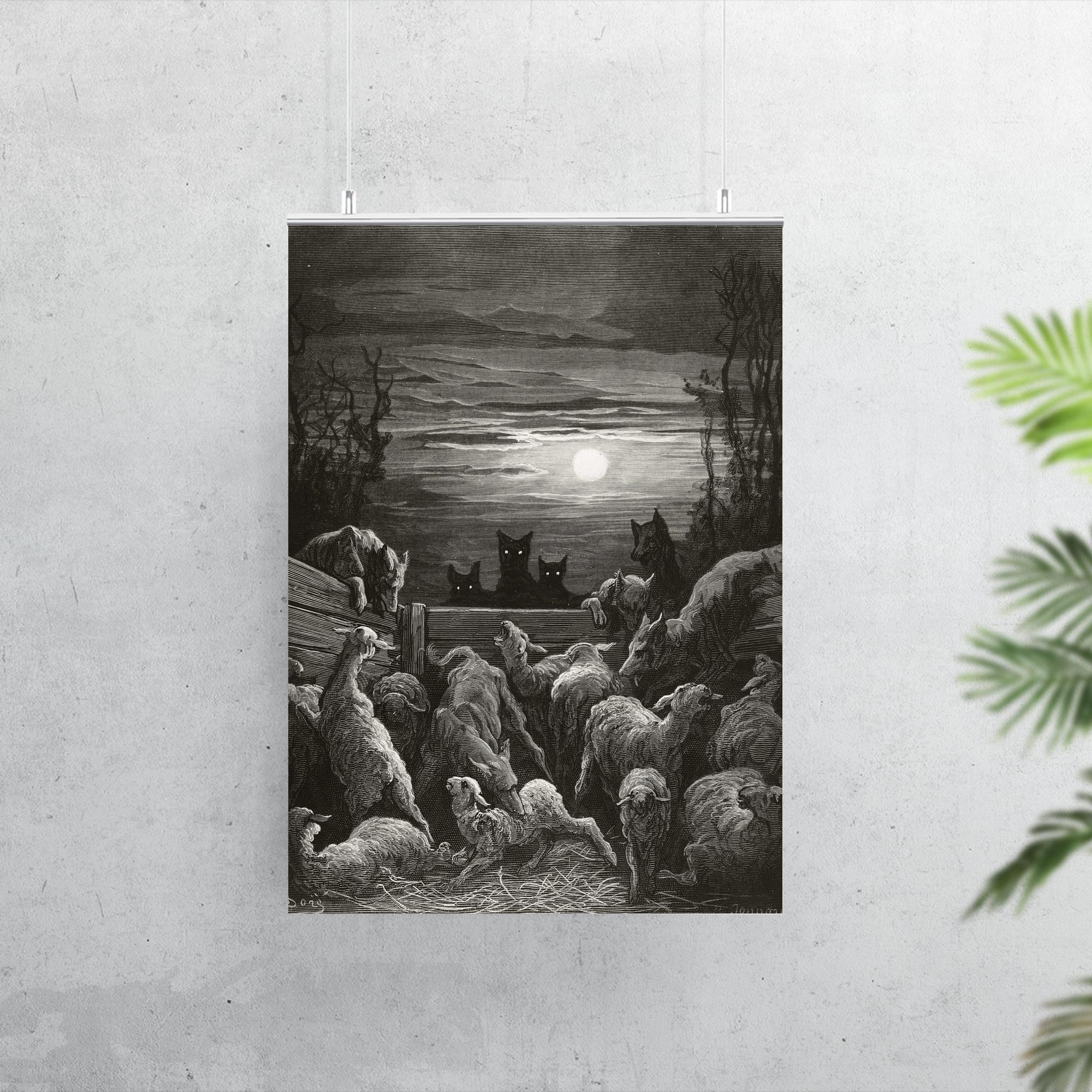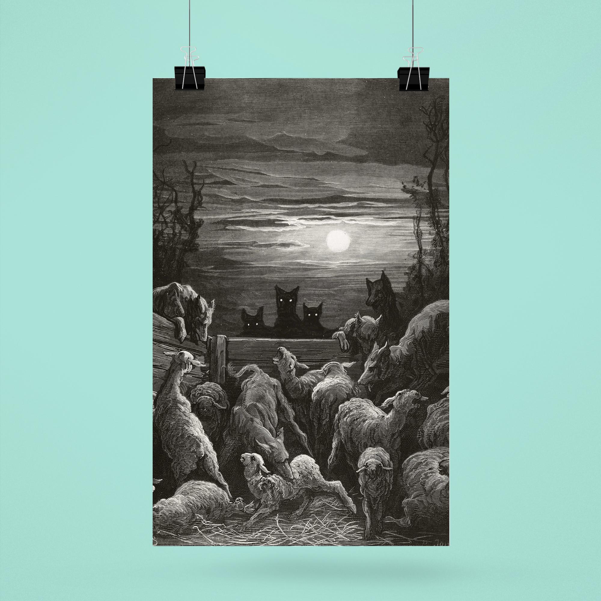 The Wolves and the Sheep 1867 Gustave Dore Vintage Art Poster Print – Dramatic Classic Wall Art for Home & Office Decor