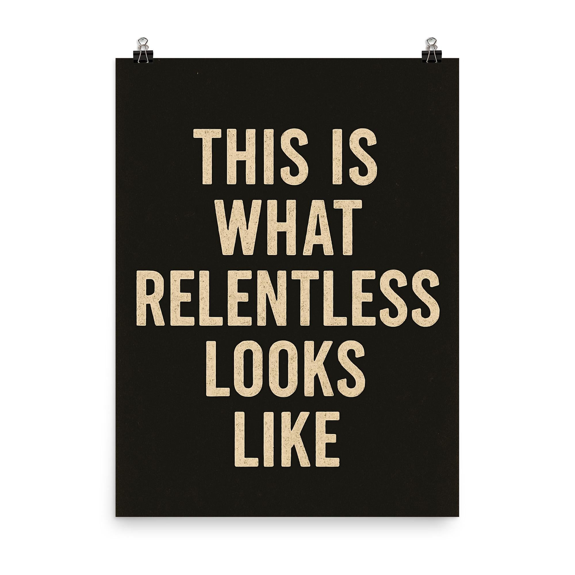 Channel unwavering determination into your daily routine with the "This is what relentless looks like" poster. A powerful reminder to keep going, this statement piece motivates you to push past obstacles and redefine your limits—day after day. Perfect for any space where ambition matters.
