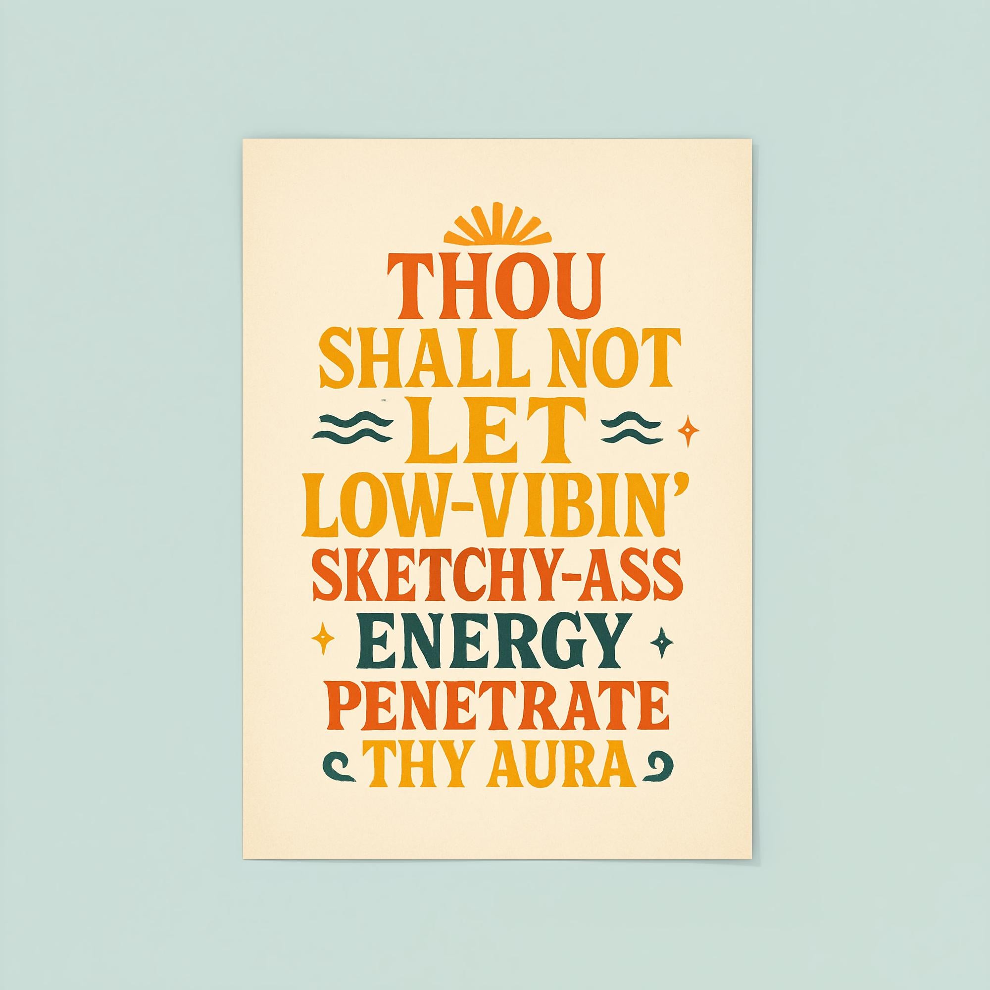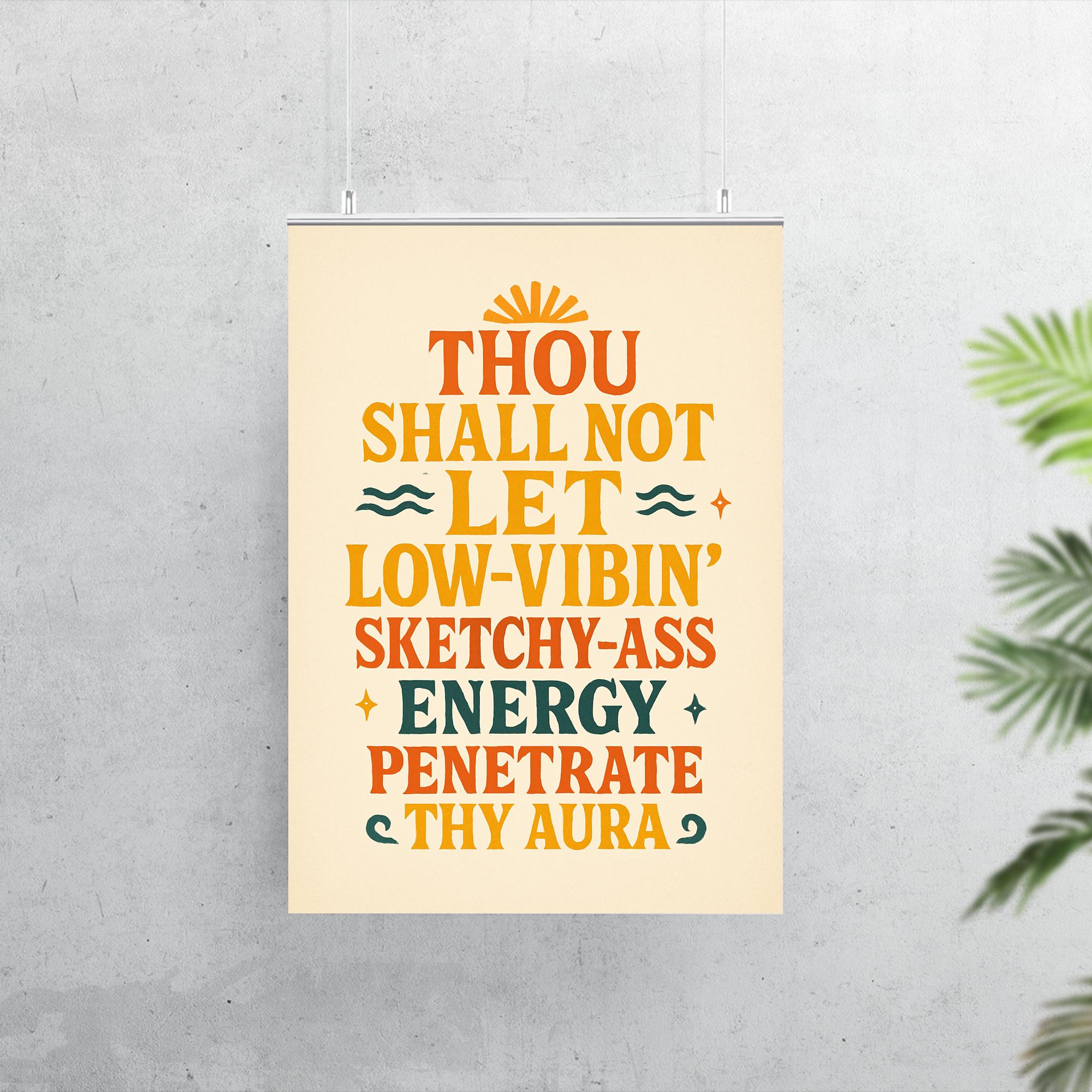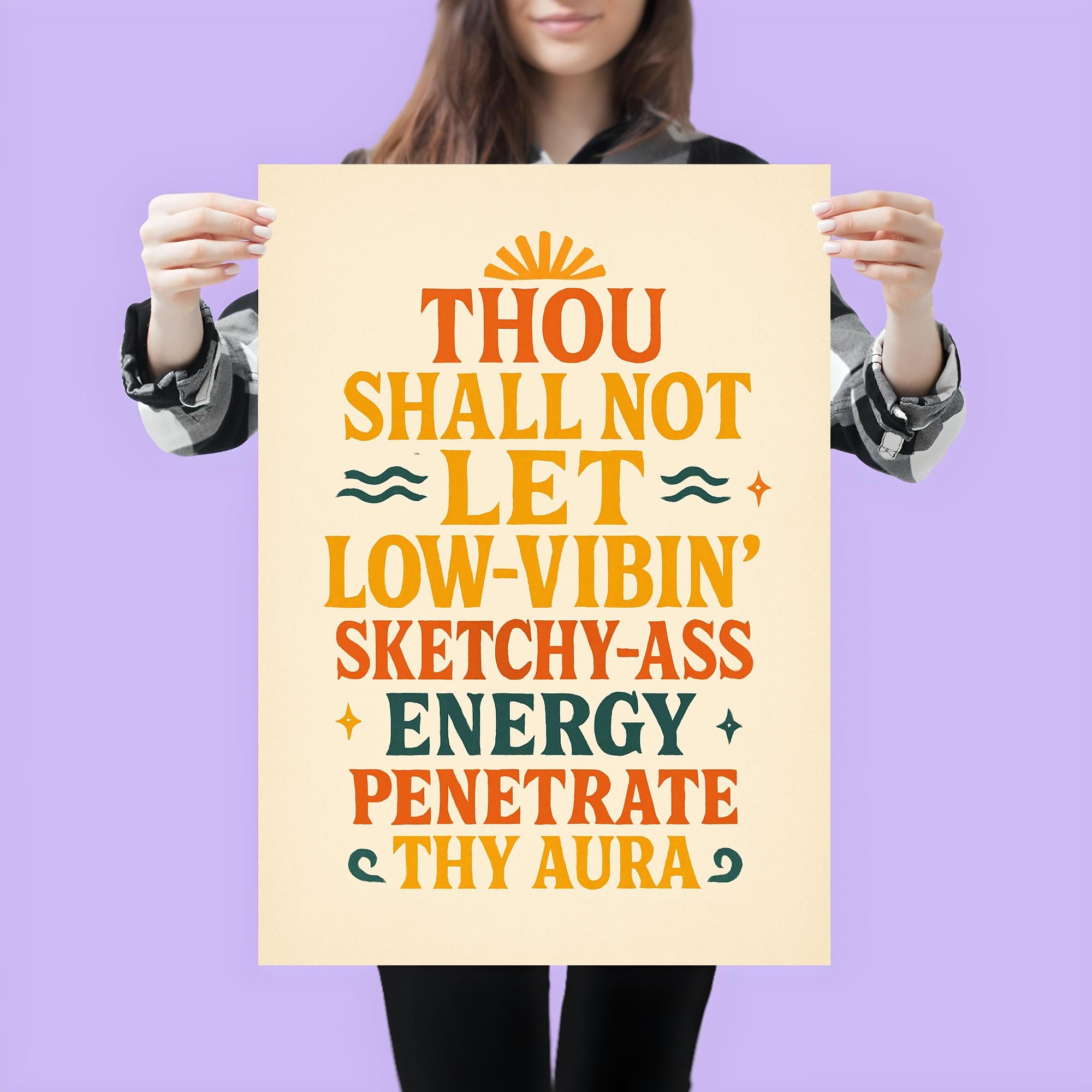 Infuse your space with a bold declaration of positive vibes only. This poster delivers a powerful reminder to shield your energy from negativity and keep your aura strong. Perfect for anyone ready to set clear boundaries and embrace uplifting energy every day.