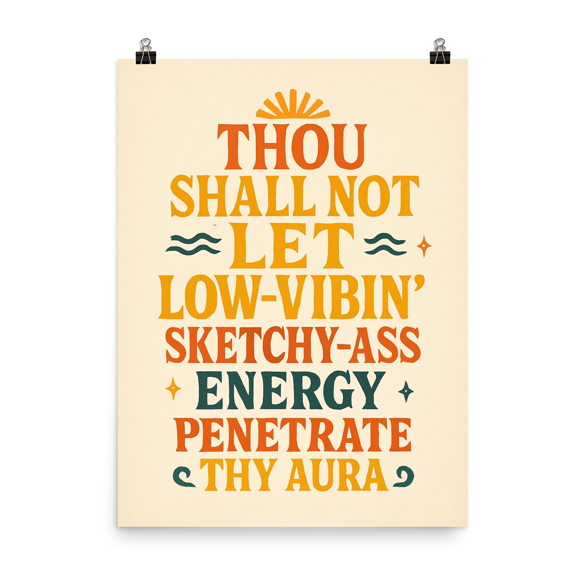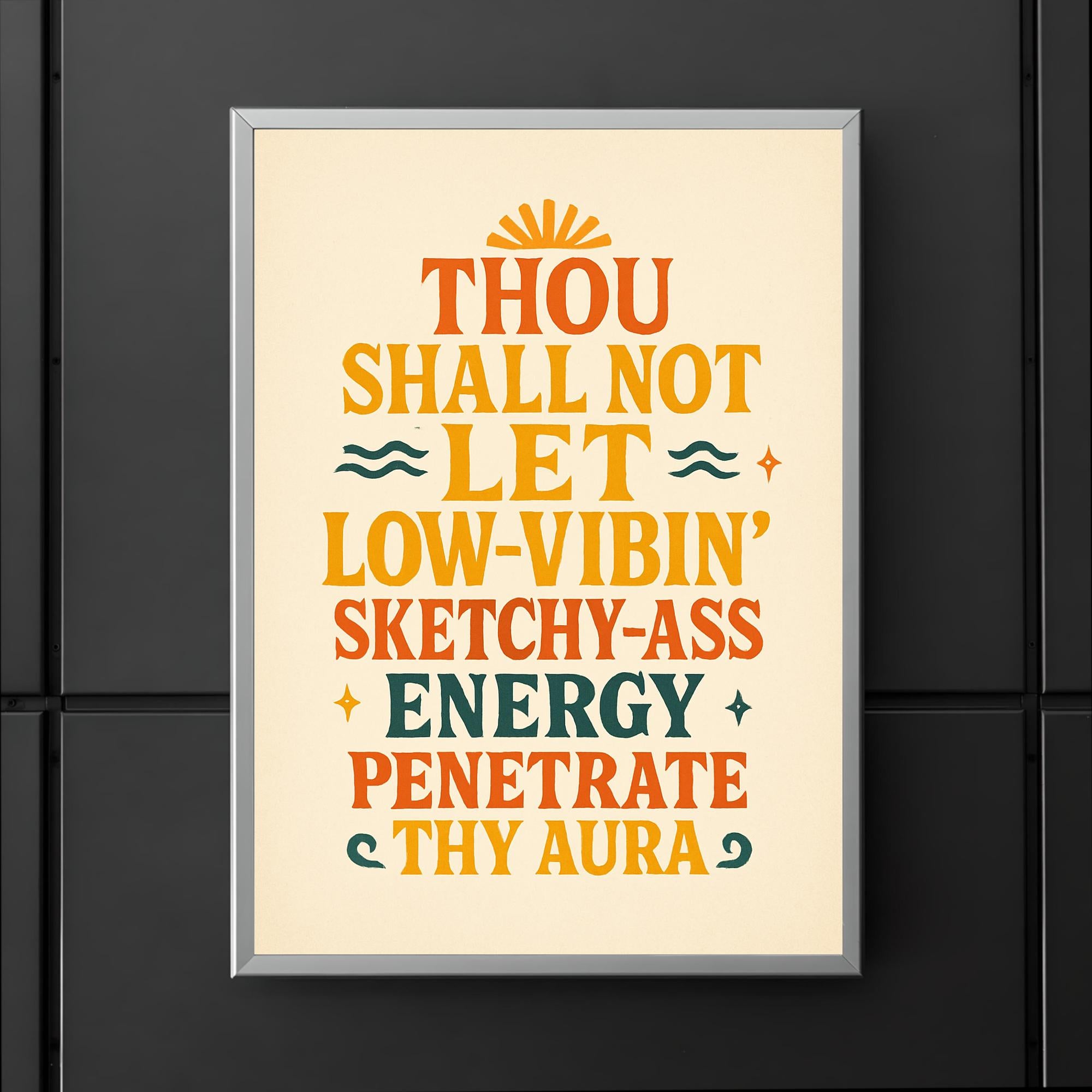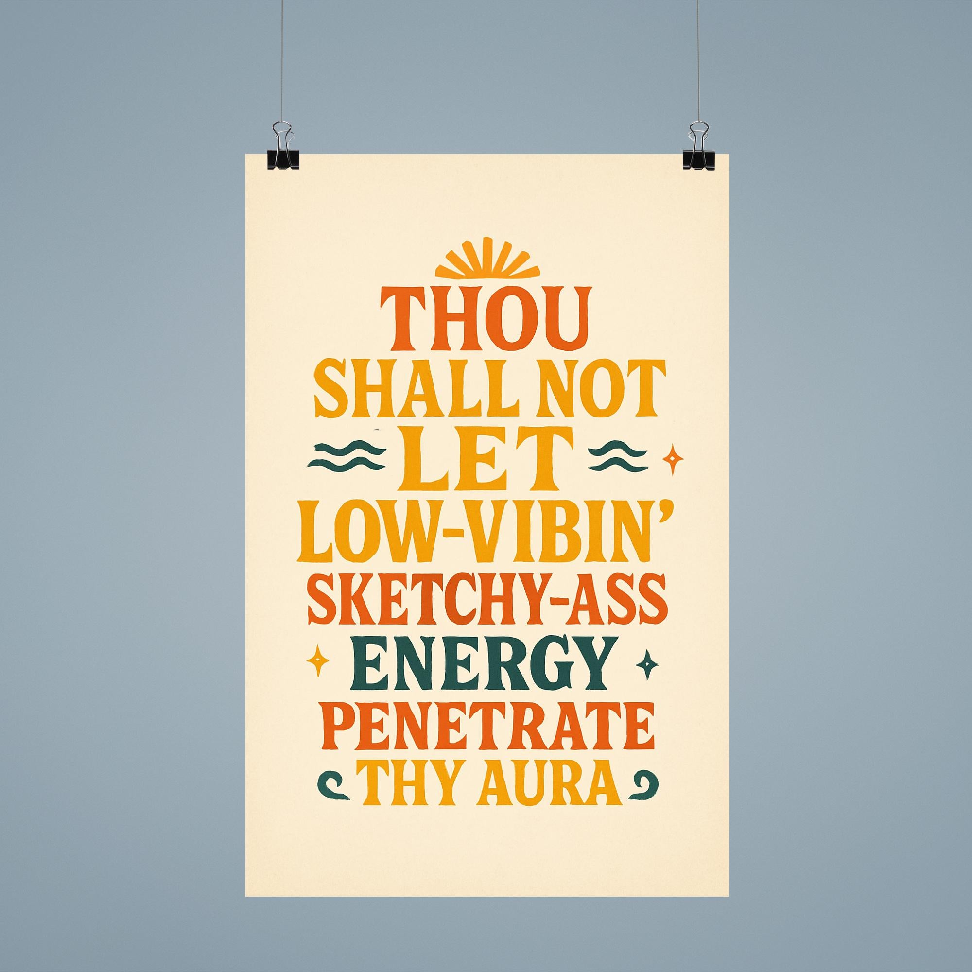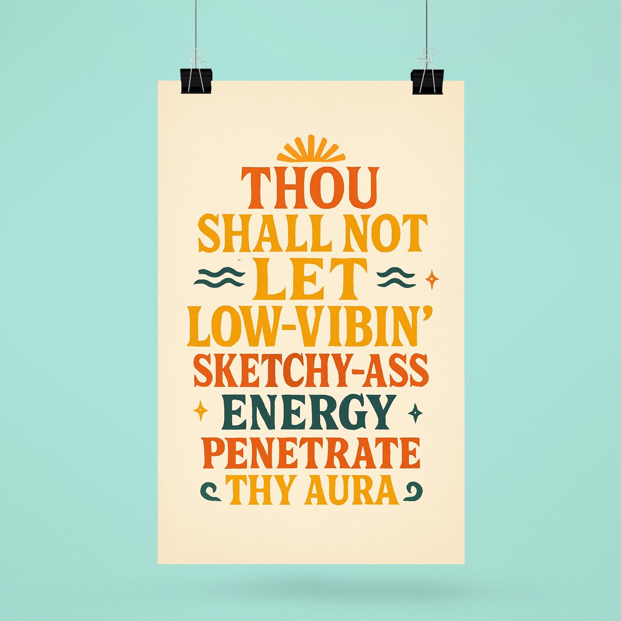 Infuse your space with a bold declaration of positive vibes only. This poster delivers a powerful reminder to shield your energy from negativity and keep your aura strong. Perfect for anyone ready to set clear boundaries and embrace uplifting energy every day.