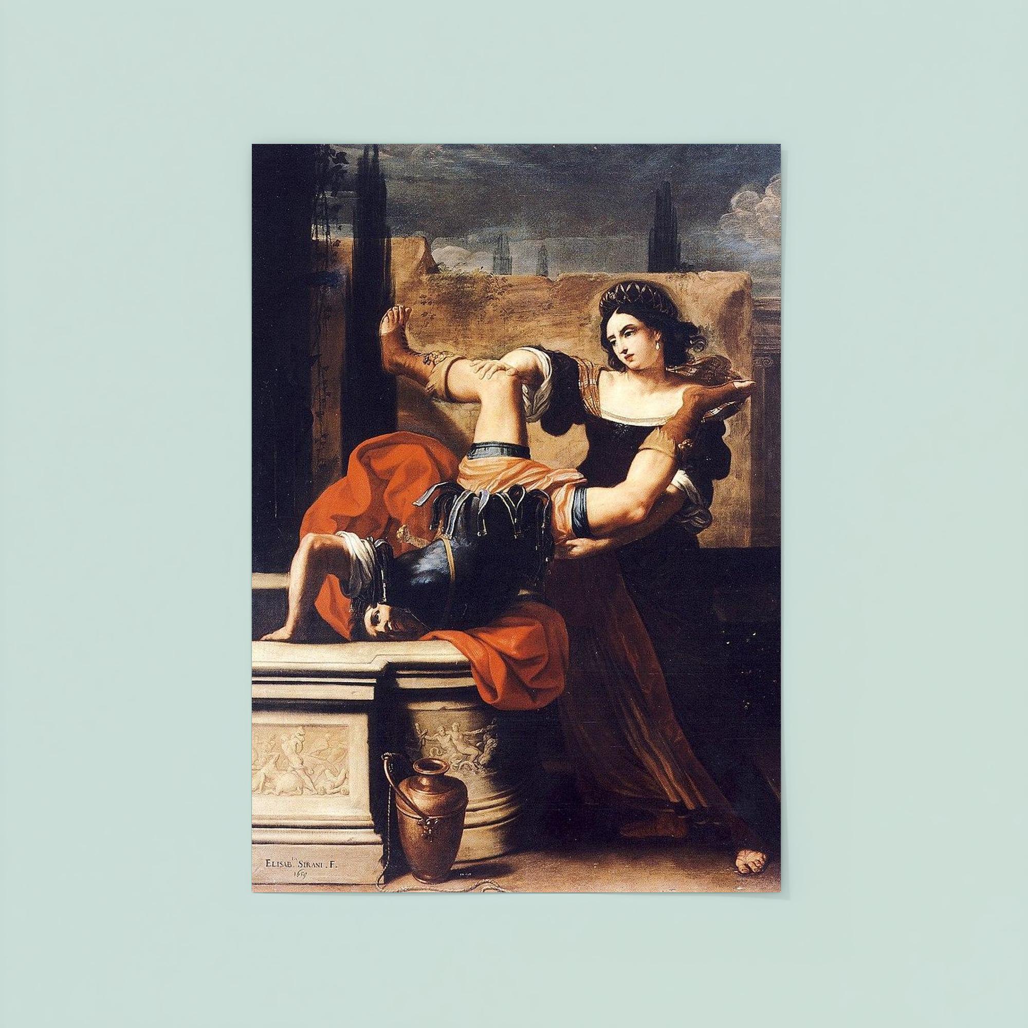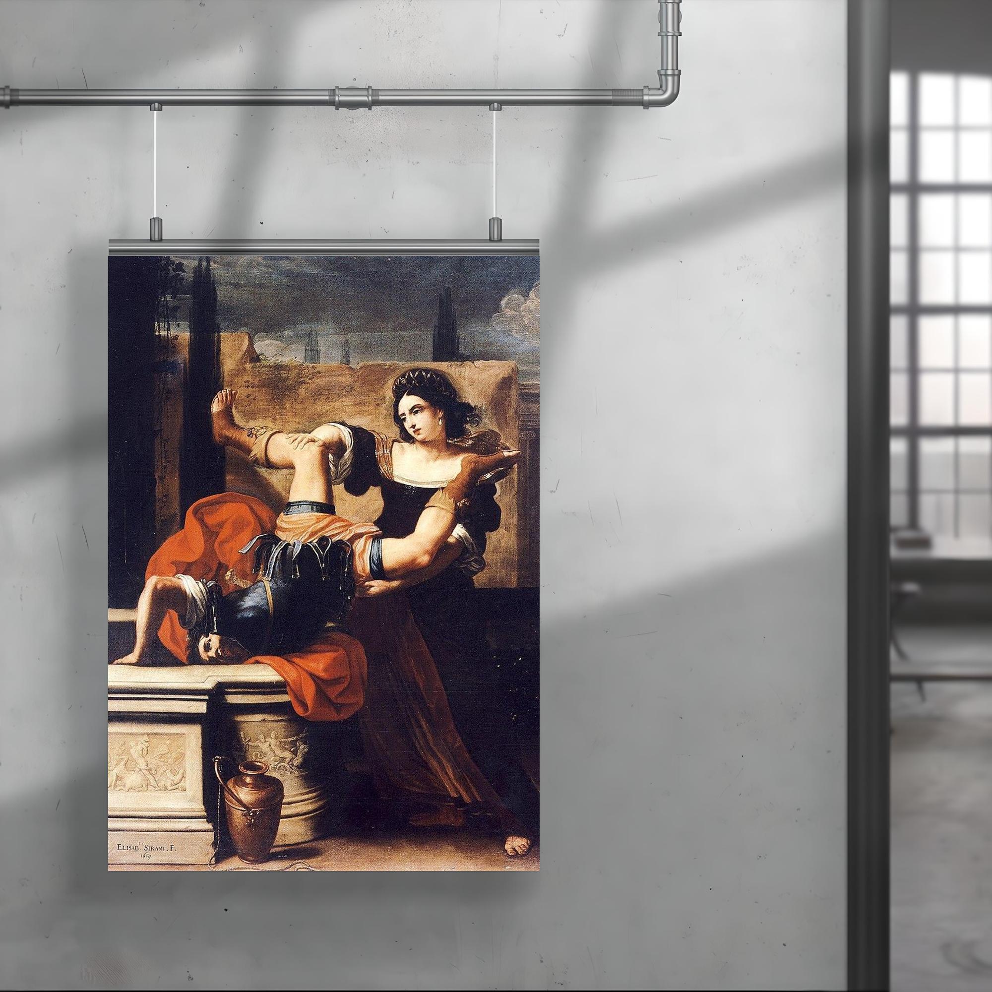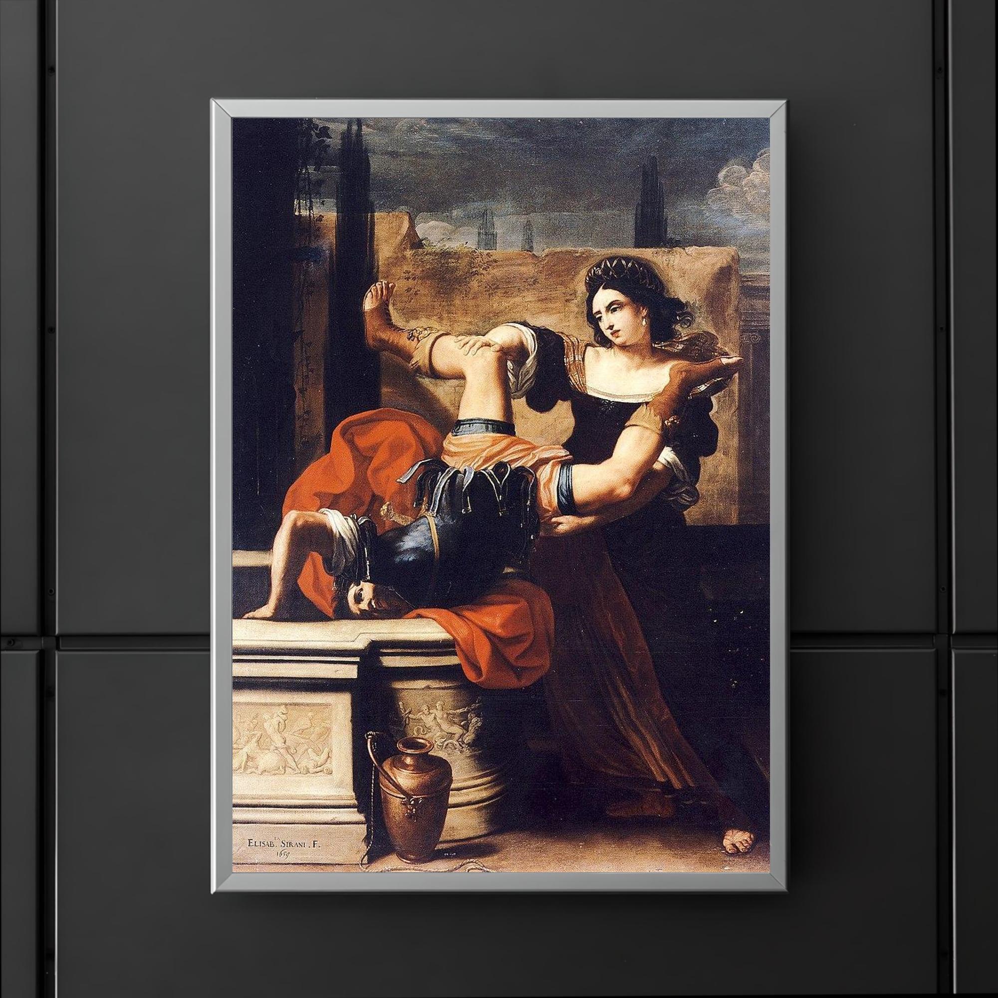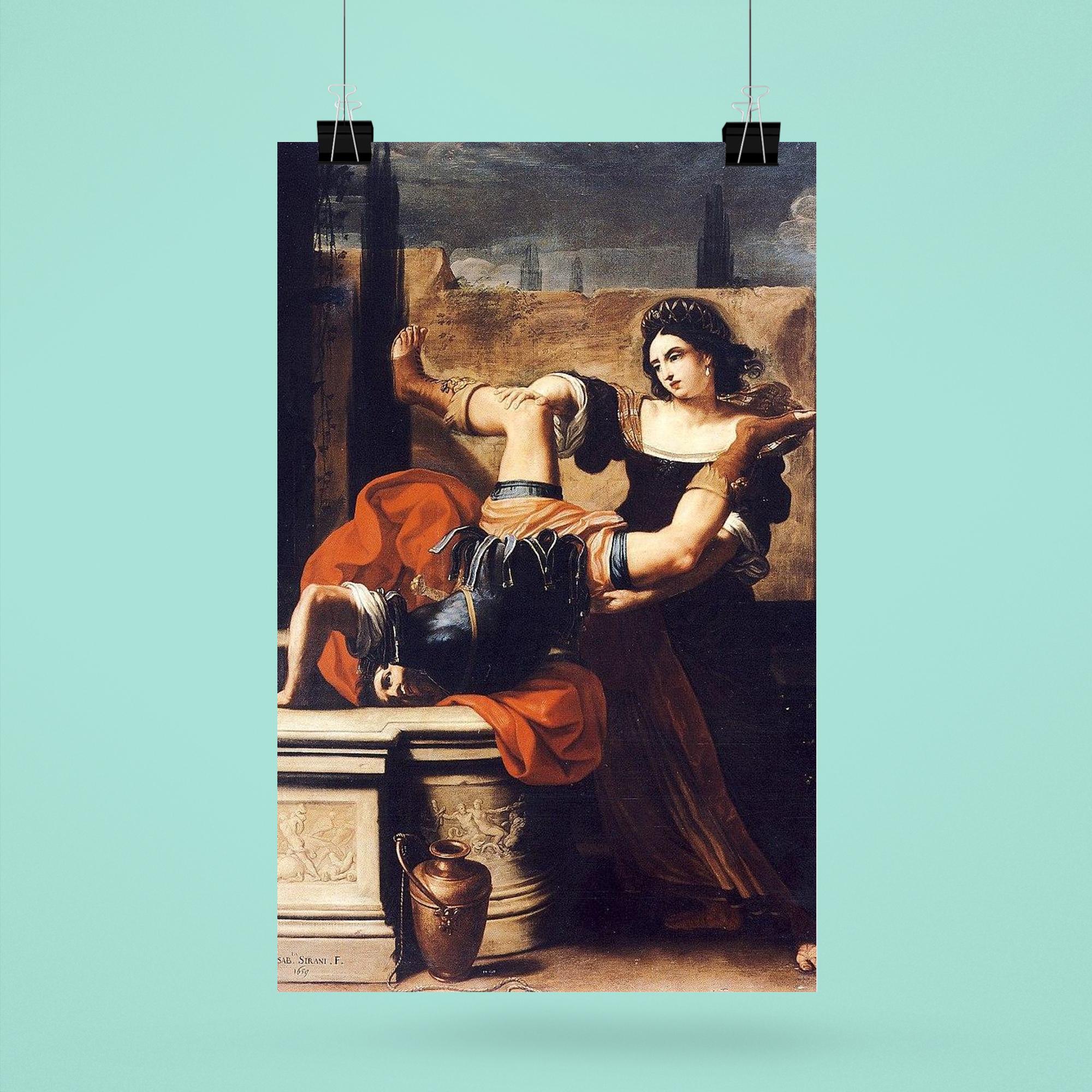 Capture a moment of fierce courage with this striking poster of Elisabetta Sirani’s 1659 masterpiece, *Timoclea Kills the Captain of Alexander the Great*. Celebrating the bold defiance of Timoclea, the artwork radiates powerful energy and timeless strength, making it a compelling centerpiece for any space that honors history and heroism.