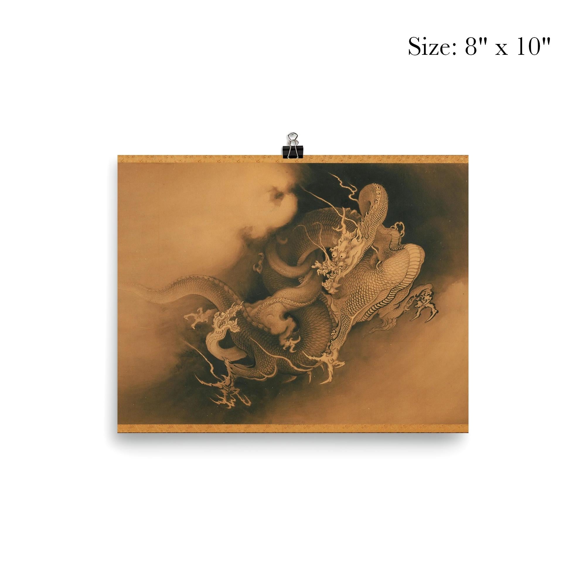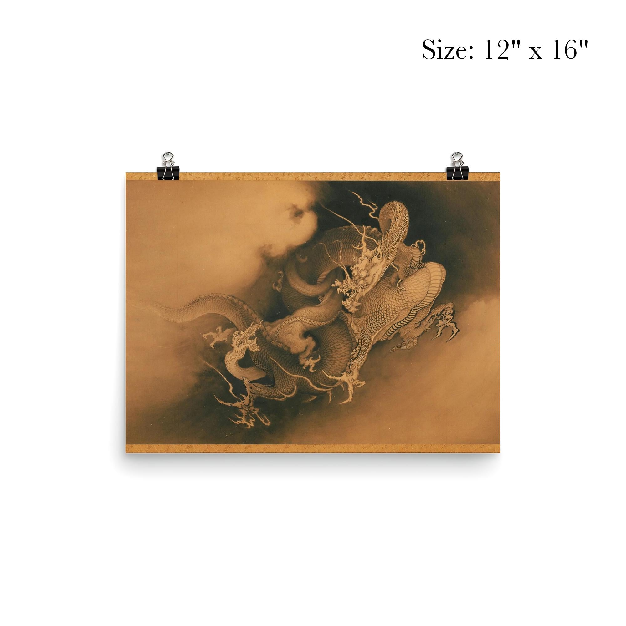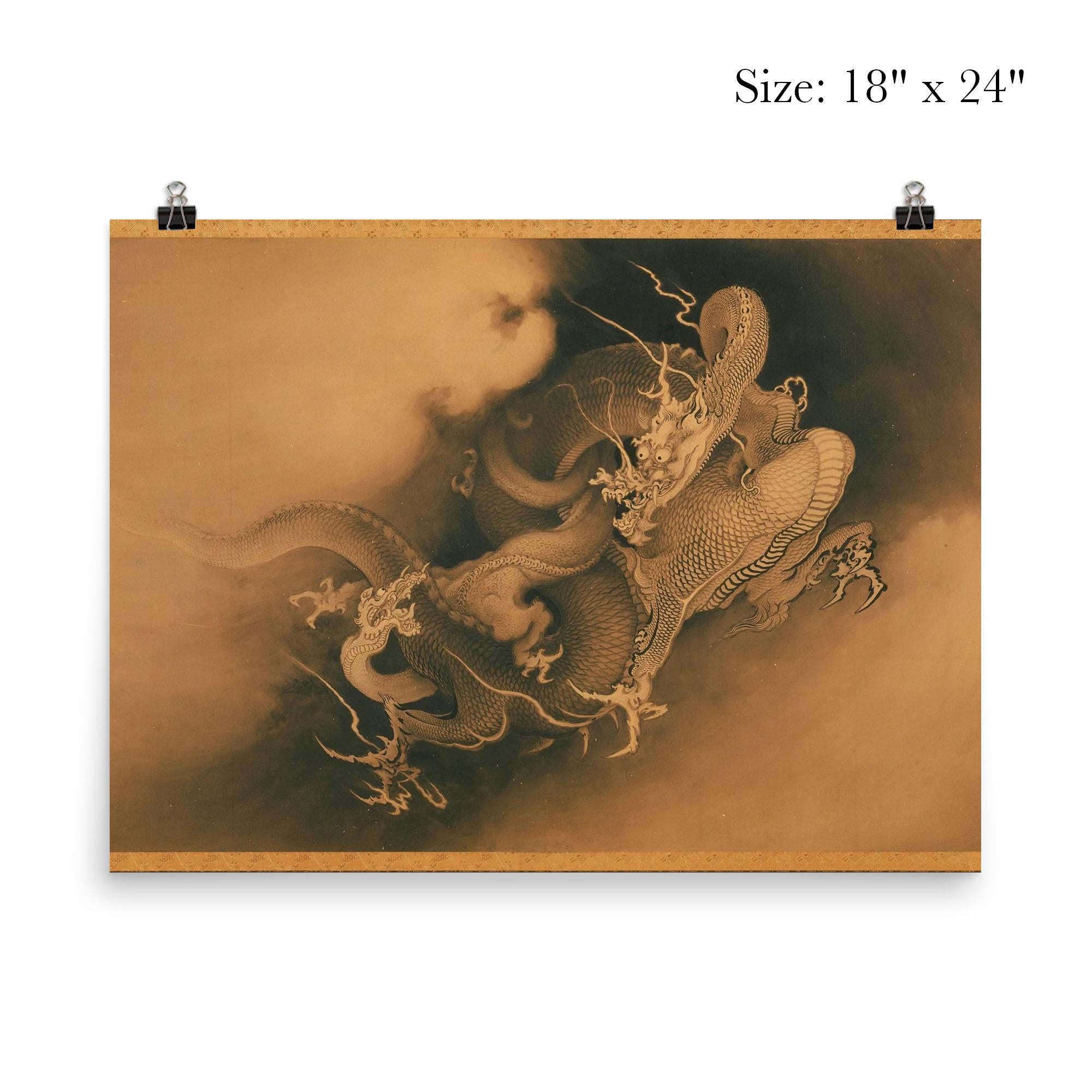 Two Dragons in Clouds Poster Print by Kano Hogai 1885 – Authentic Japanese Art Wall Decor, Vintage Asian Dragon Illustration, Premium Matte Finish