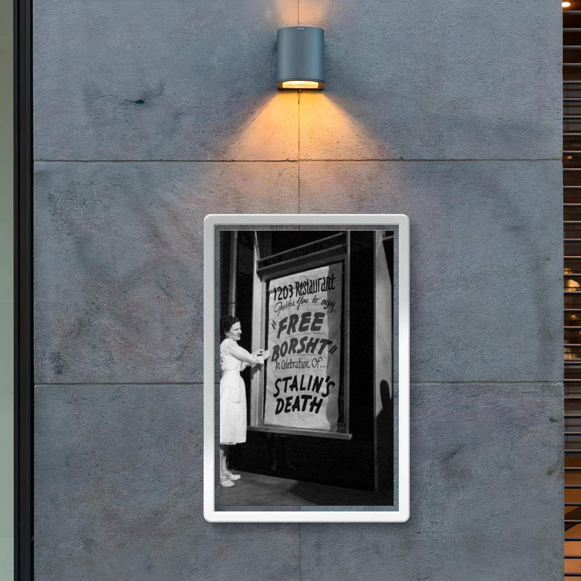 Capture a poignant moment in history with this striking poster of a Ukrainian immigrant after Stalin's death in 1953. The artwork speaks volumes about resilience and hope during a time of profound change. Perfect for history enthusiasts and anyone drawn to powerful stories of courage and transition.