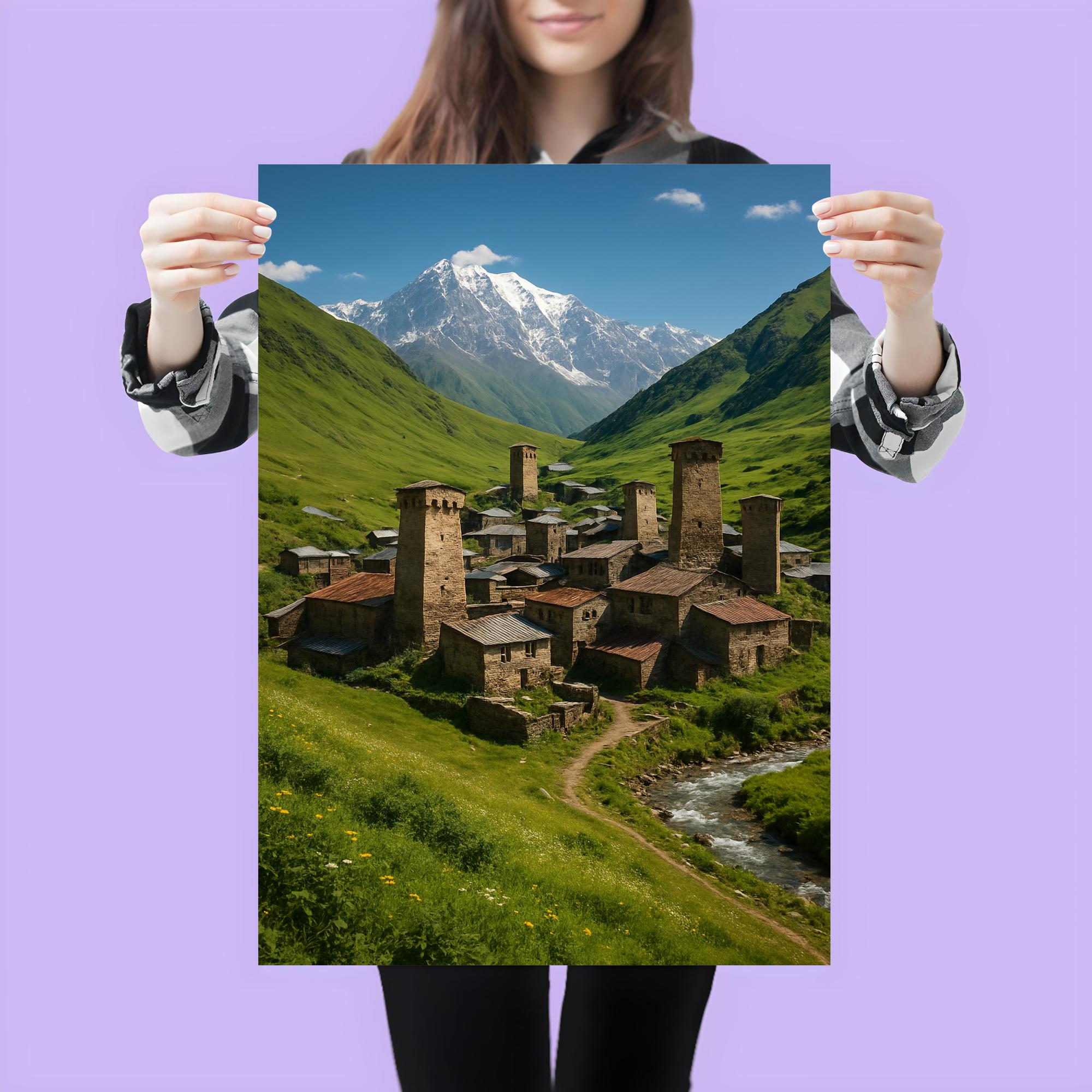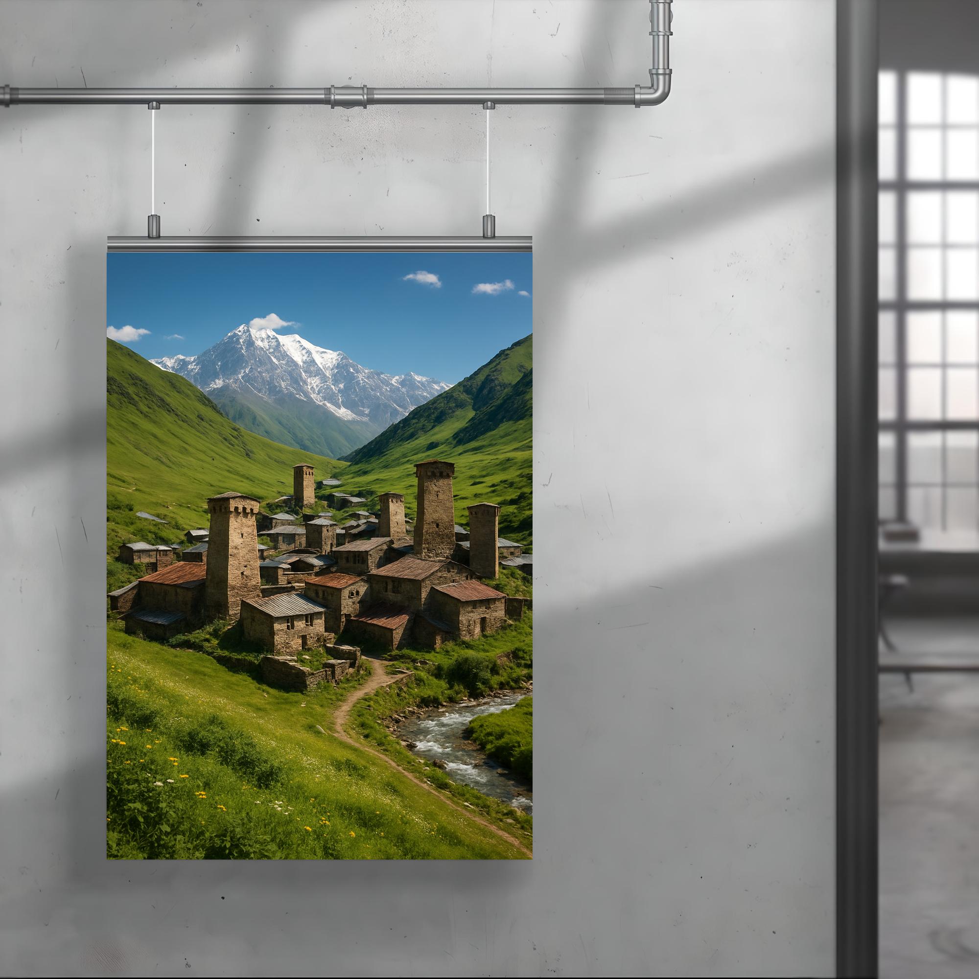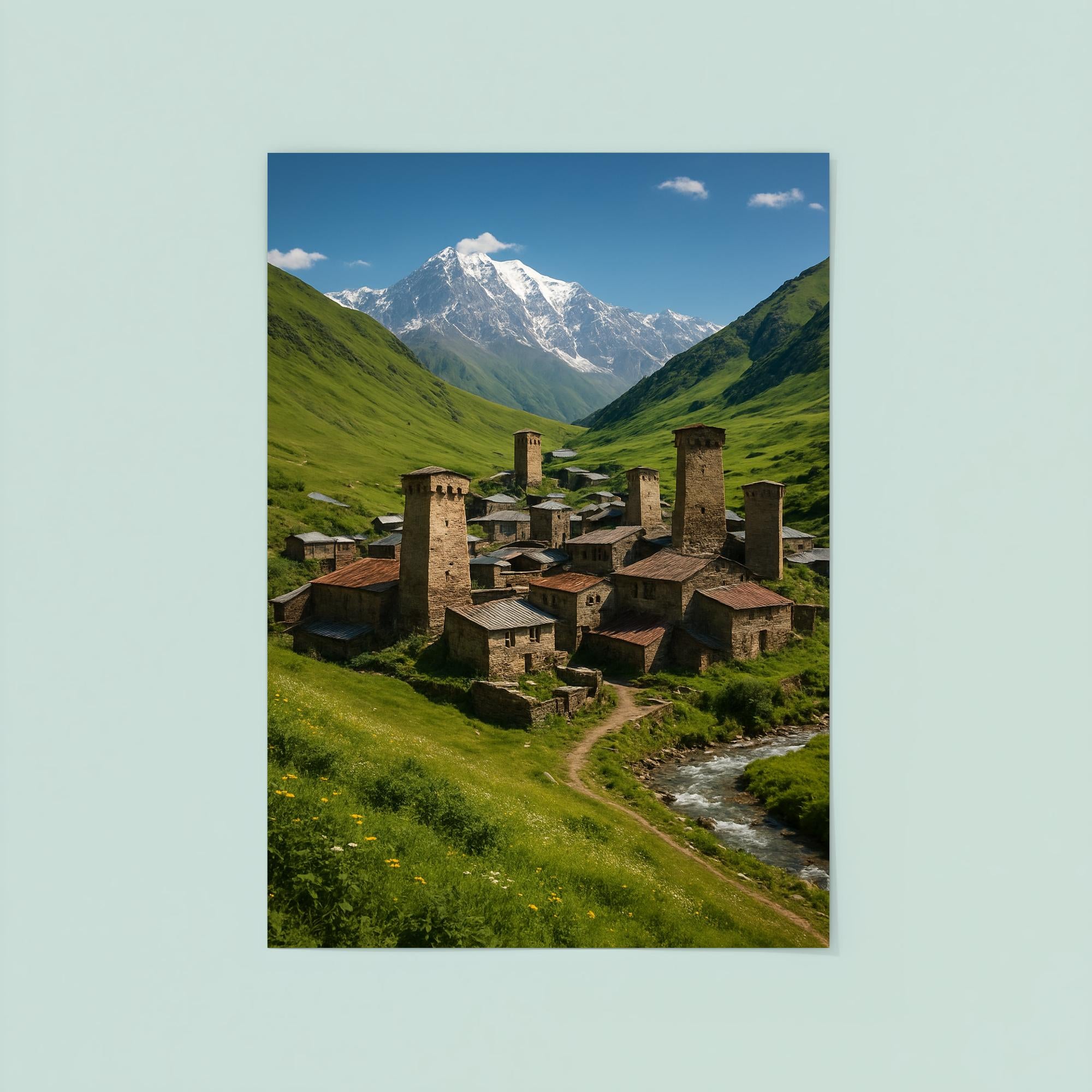 Capture the timeless allure of Ushguli’s iconic Svan Towers with this stunning poster, a tribute to Georgia’s architectural heritage and breathtaking mountain landscapes. Perfect for adding a touch of history and rugged beauty to any space, it invites you to experience the spirit of one of the highest inhabited villages in Europe every day.