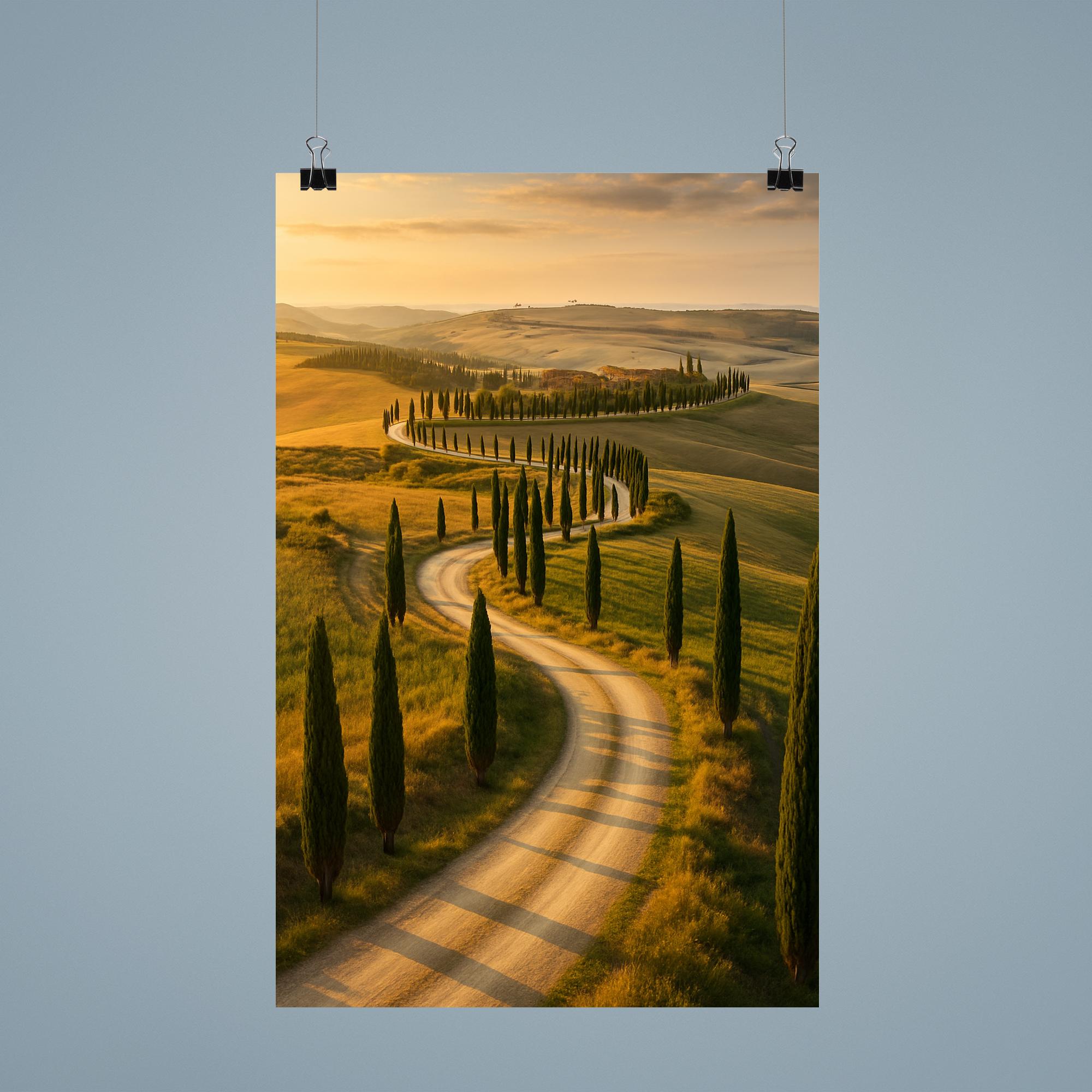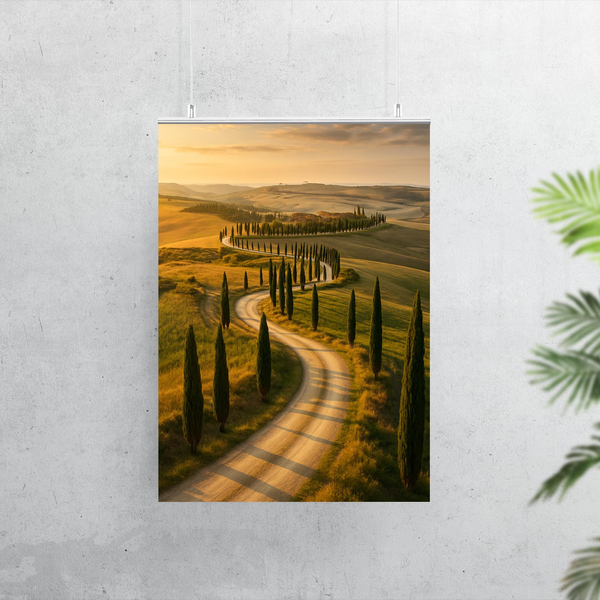 Transform your space with the serene beauty of our Val d'Orcia Cypress Roads poster. This stunning piece captures the timeless charm of Italy’s iconic landscapes, inviting a sense of calm and wanderlust into any room. Perfect for those who cherish elegant simplicity and the allure of nature’s pathways.