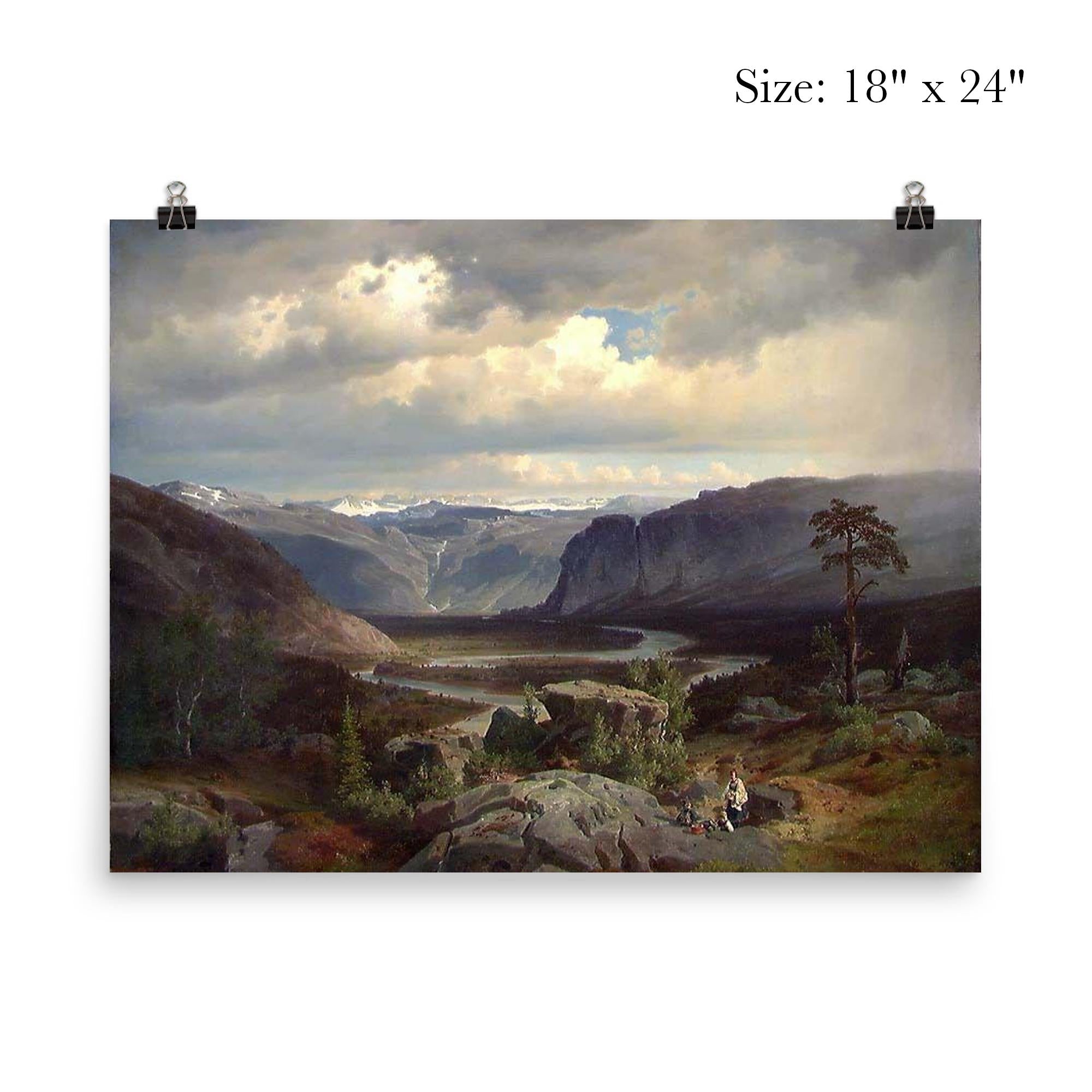 Immerse yourself in the timeless beauty of 19th-century Norway with Johan Fredrik Eckersberg’s "View From Valle in Setesdal," painted in 1852. This exquisite poster captures the serene landscape and historic charm of Setesdal, inviting you to bring a touch of classic Scandinavian elegance to your space. Perfect for art lovers and history enthusiasts alike, it transforms any room into a window to the past.