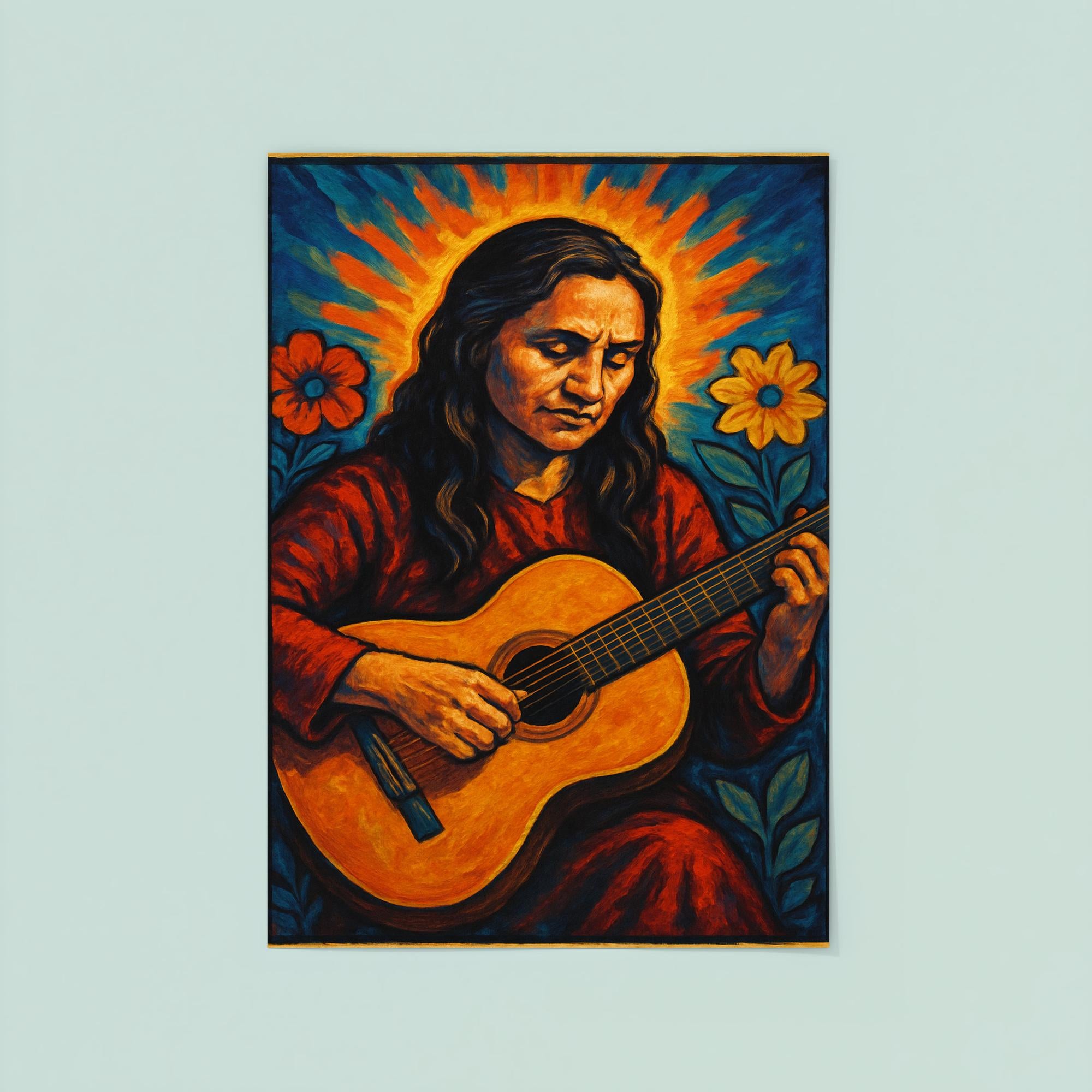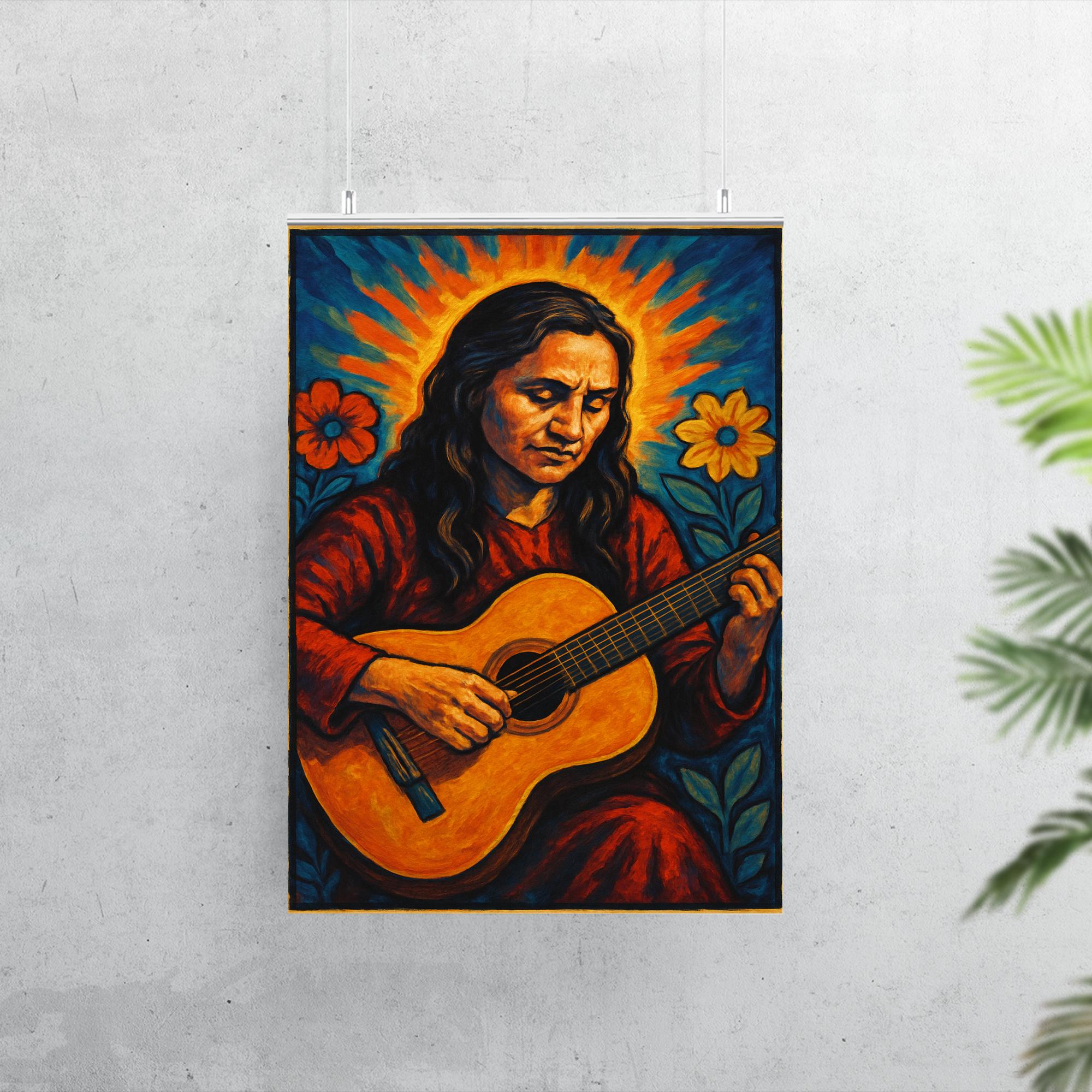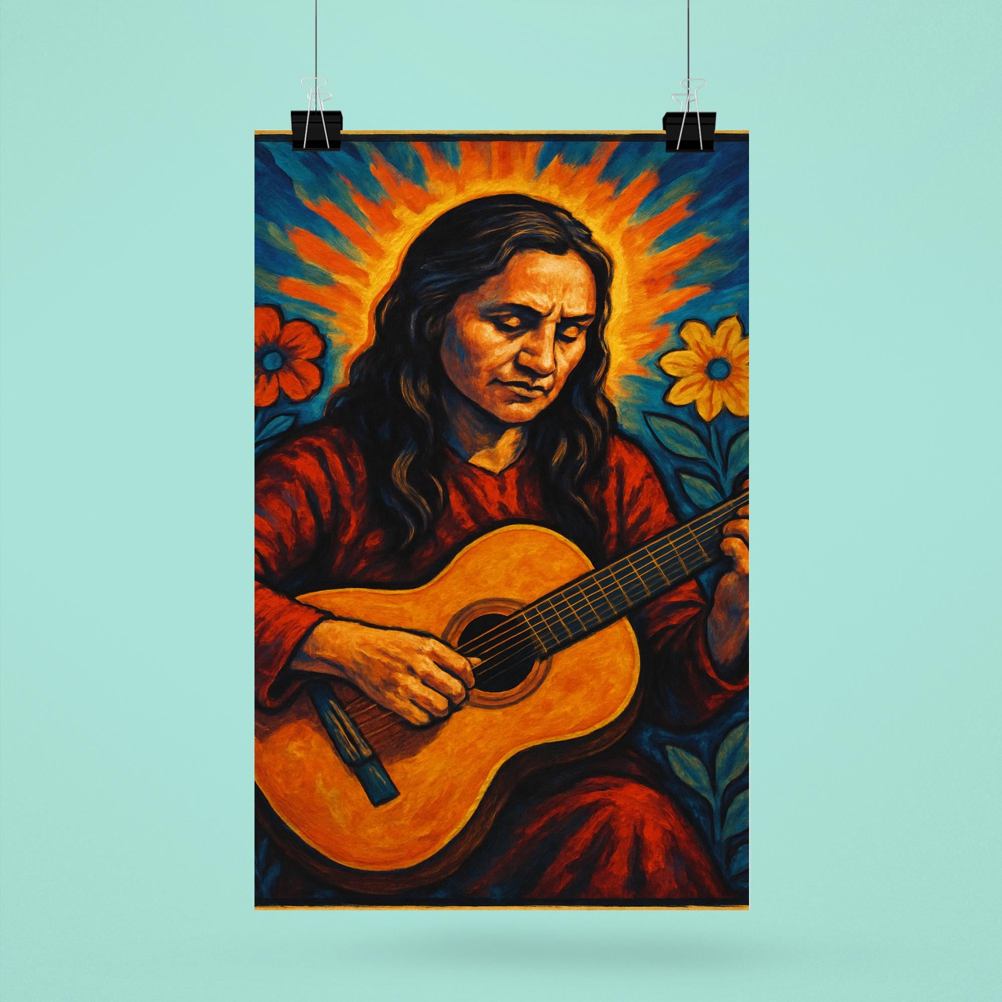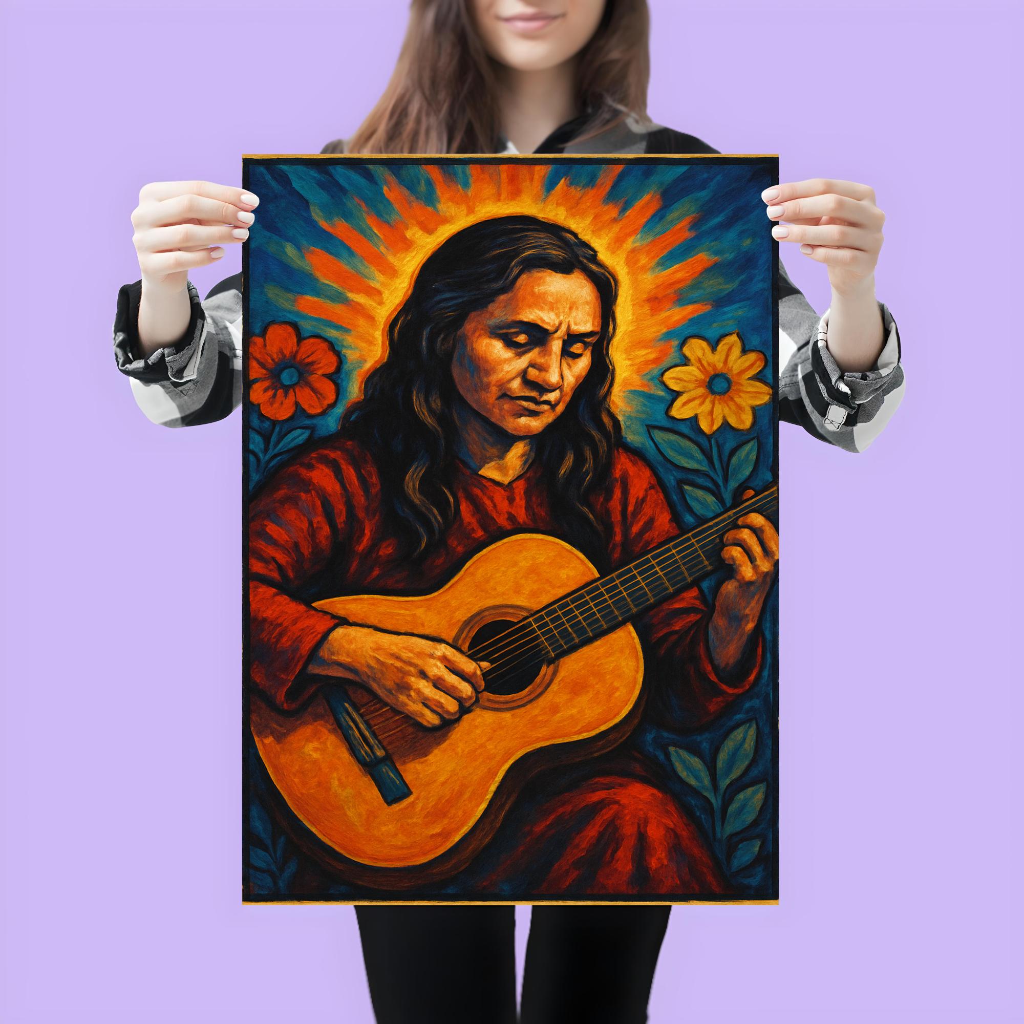 Celebrate the enduring legacy of Violeta Parra with this striking poster, capturing the spirit of one of Chile’s most iconic folk artists. Perfect for music lovers and cultural enthusiasts alike, it brings a bold tribute to your space, inspiring creativity and passion every day. A timeless piece that honors a true legend.