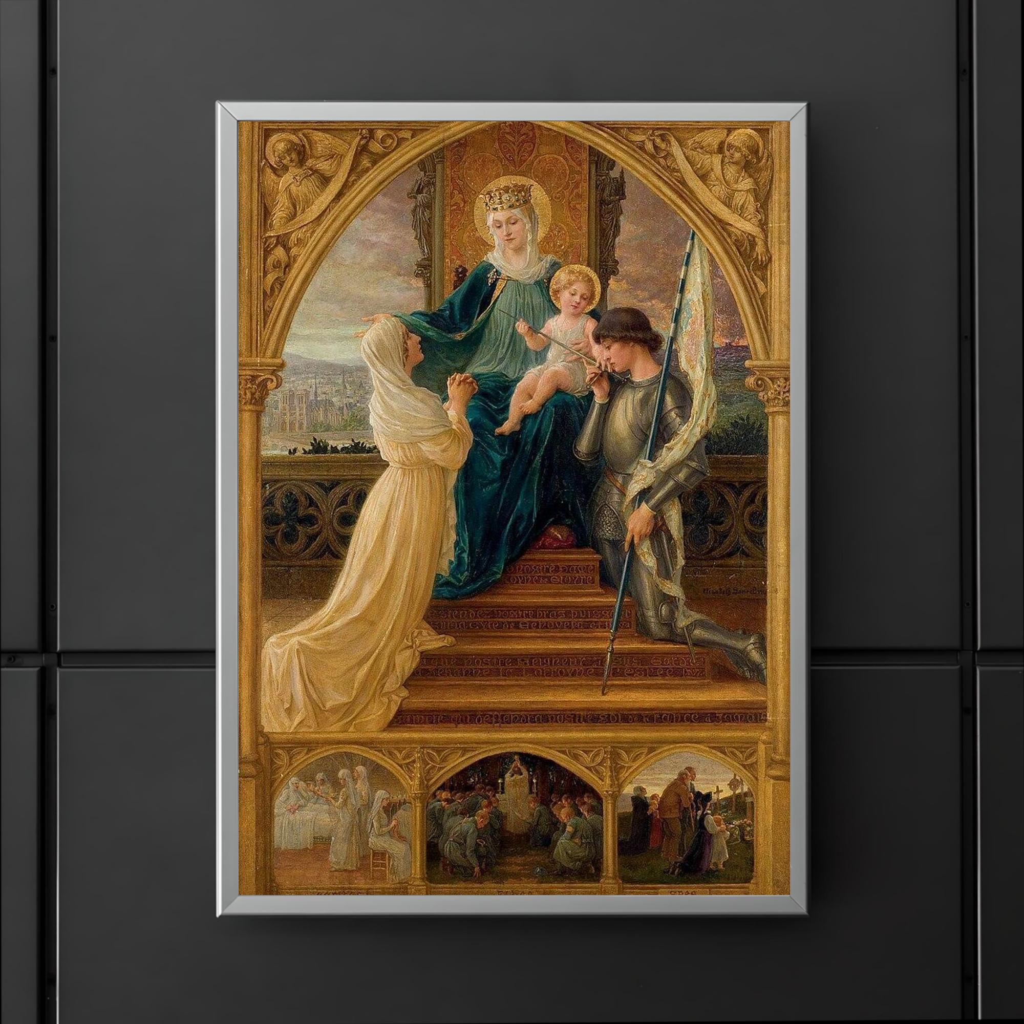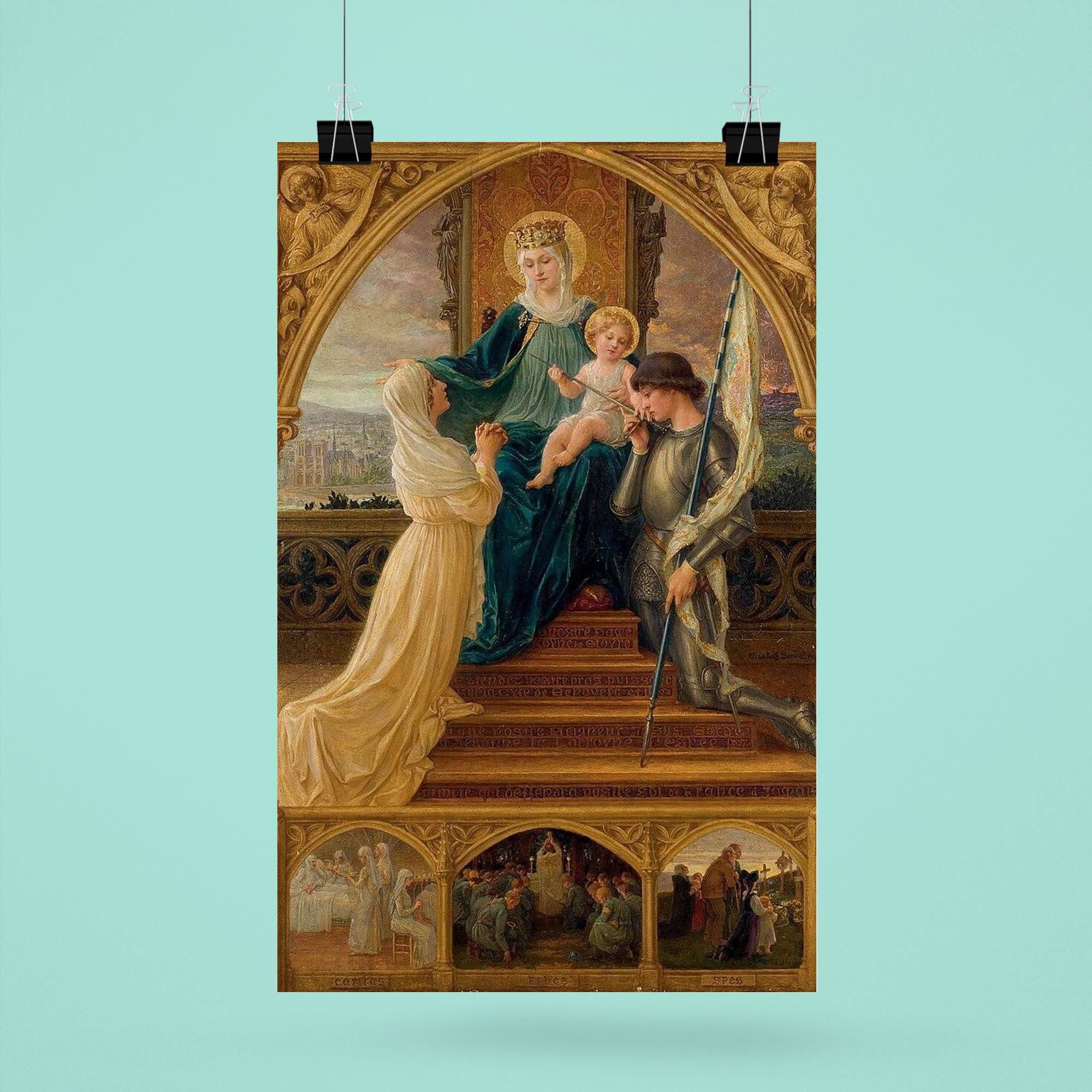 Bring timeless grace to your space with this exquisite poster of *Virgin and Child with Saint Geneviève and Joan of Arc* by Élisabeth Sonrel, painted in 1916. Celebrating devotion and strength, this artwork beautifully captures the serene presence of the Virgin and Child alongside two iconic French saints, inviting reflection and inspiration into any room. Perfect for art lovers and history enthusiasts alike, this poster transforms your walls into a sanctuary of faith and elegance.