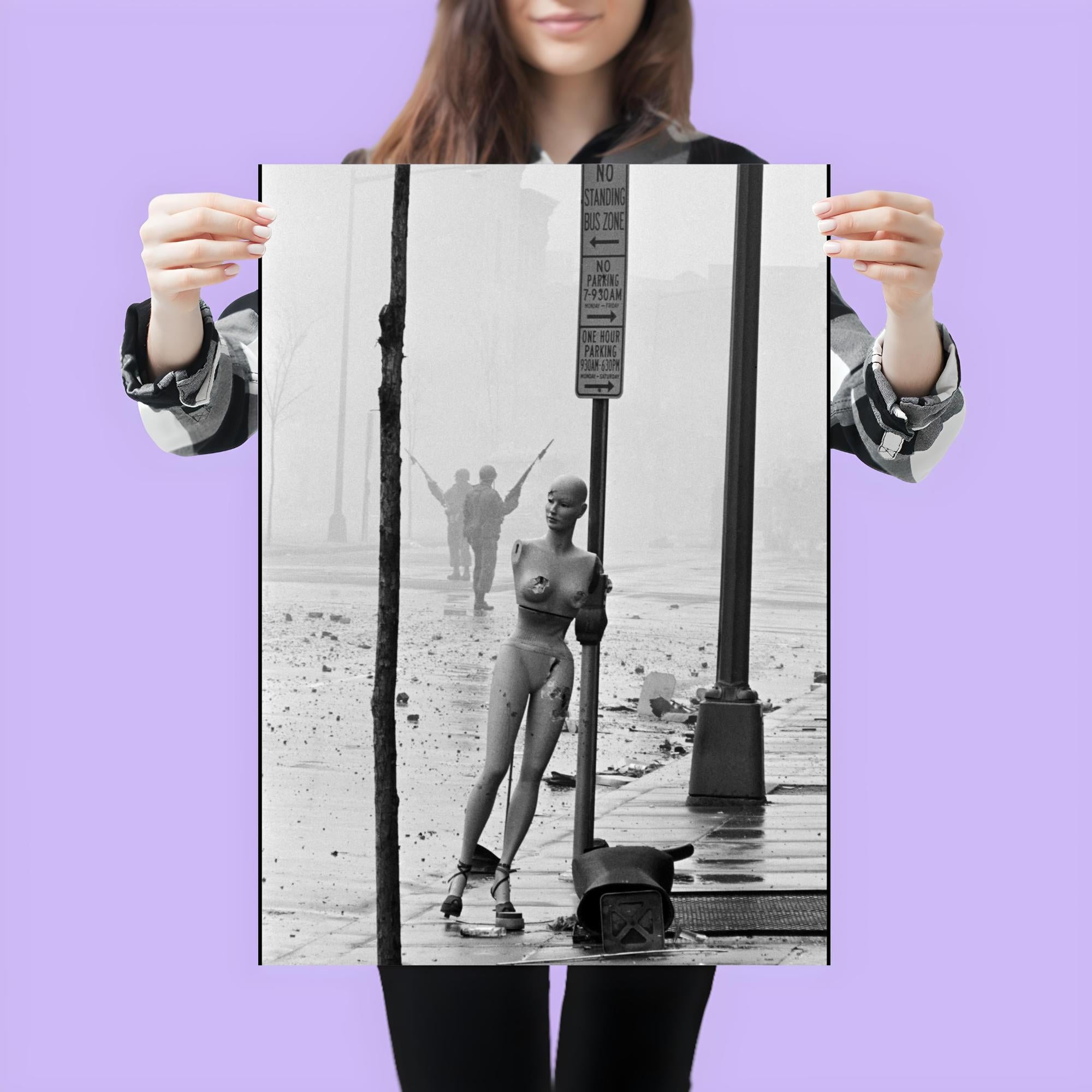 Capture a profound moment in history with this striking poster of Washington D.C. on April 5, 1968—the day after Martin Luther King Jr.'s assassination. Evoking the somber stillness and the weight of a city in mourning, this powerful image invites reflection on a pivotal chapter in the struggle for justice and equality. Perfect for those who seek to honor the legacy of a leader whose impact reverberates through time.