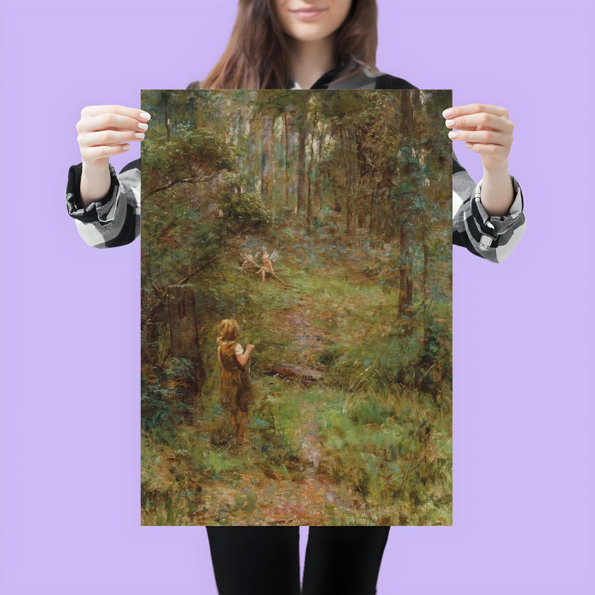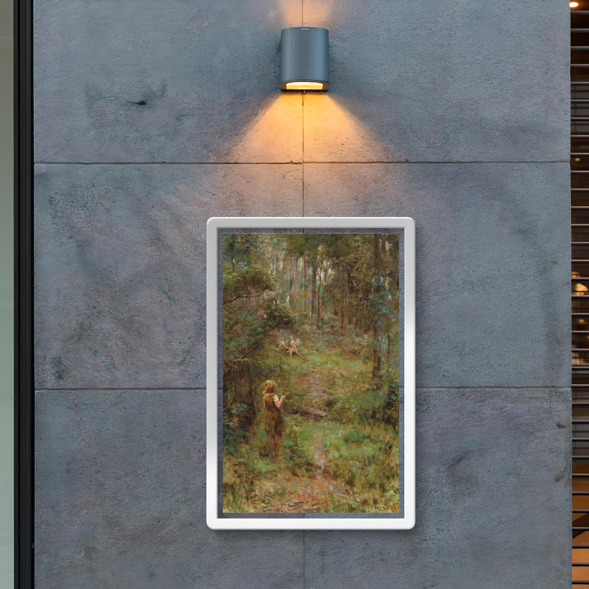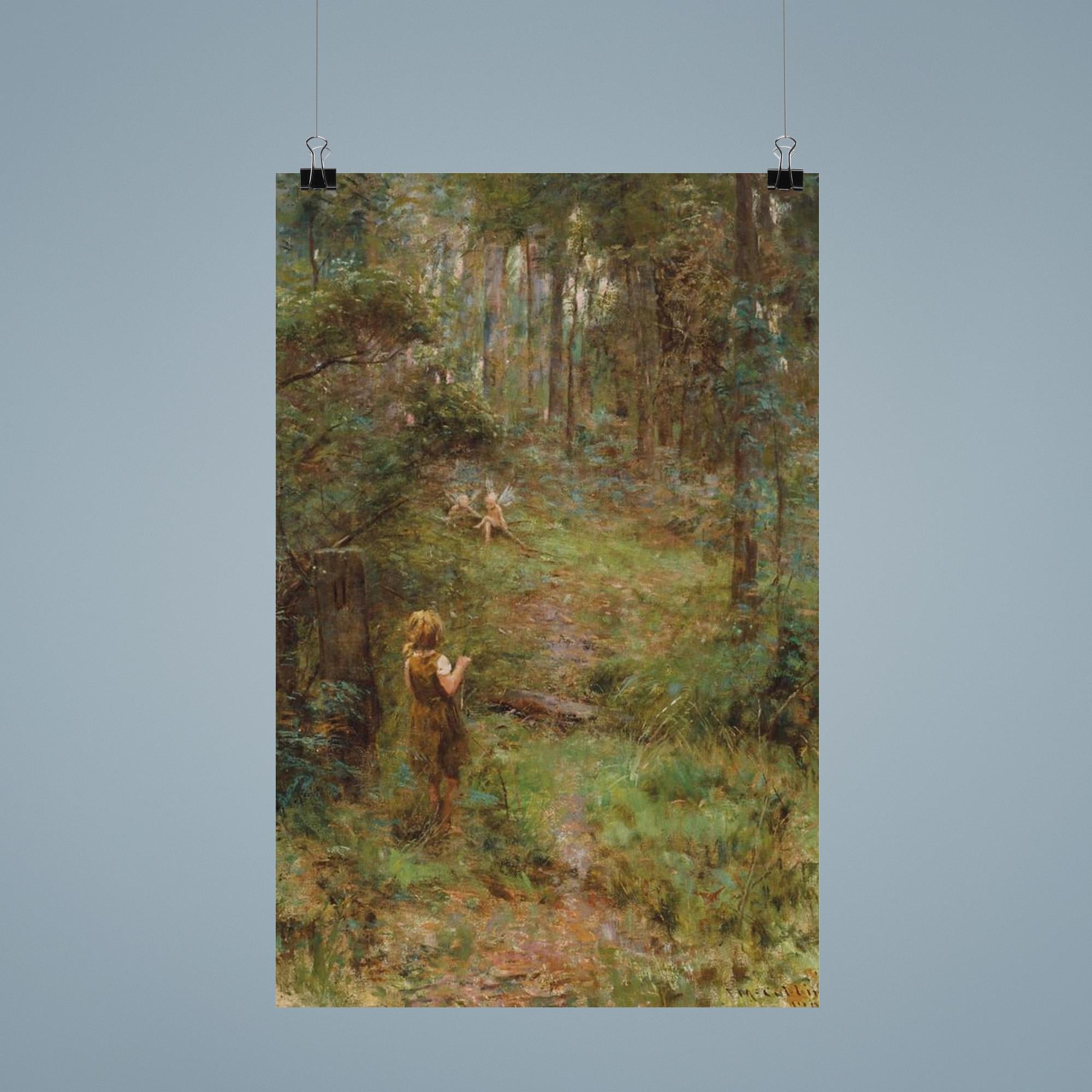 Bring a timeless piece of Australian art into your space with this stunning poster reproduction of Frederick McCubbin's 1904 masterpiece, *What the Little Girl Saw in the Bush*. Rich in detail and atmosphere, this artwork captures a moment steeped in mystery and nature’s quiet beauty, inviting you to explore the stories hidden within the landscape. Perfect for art lovers and collectors alike, this poster adds depth and character to any room.