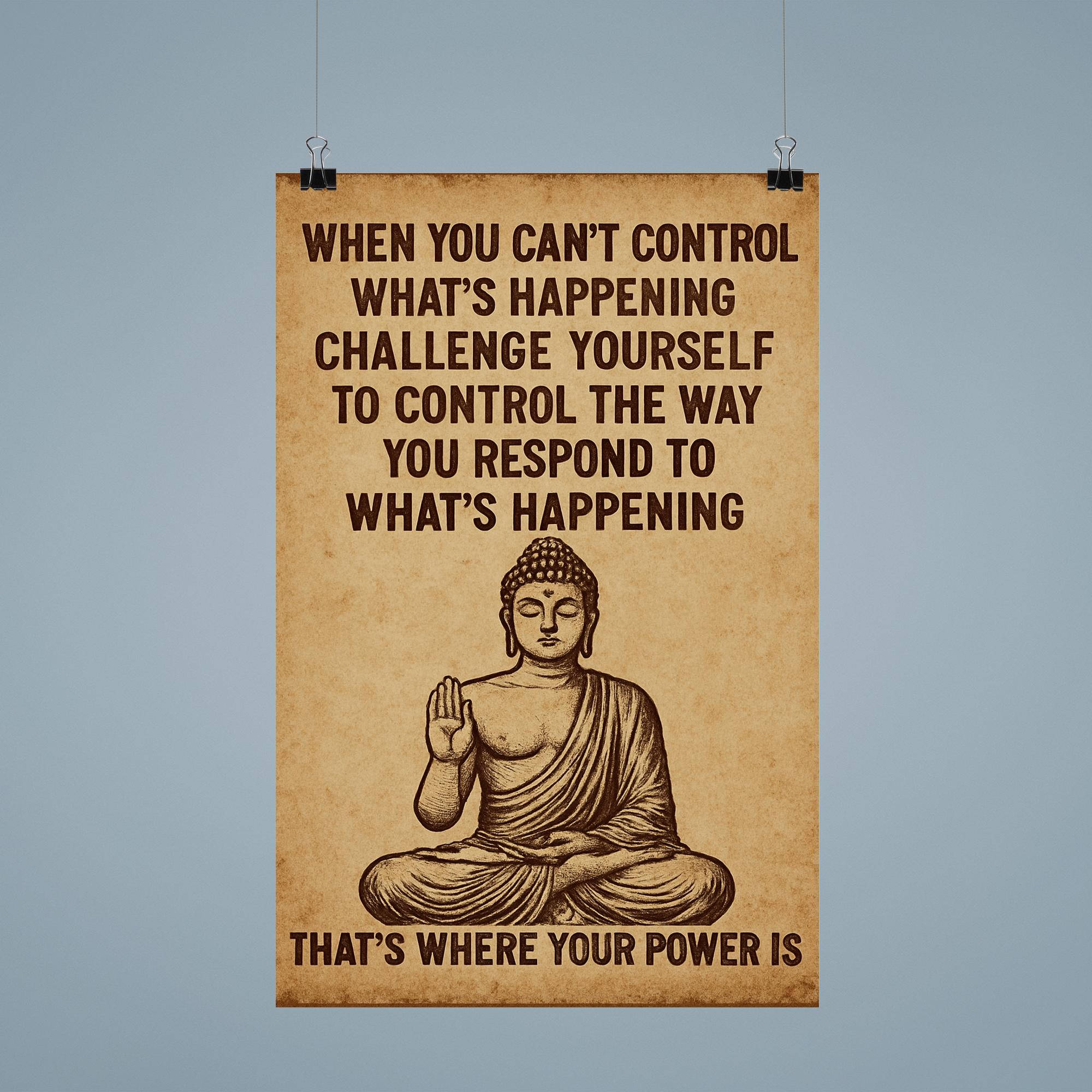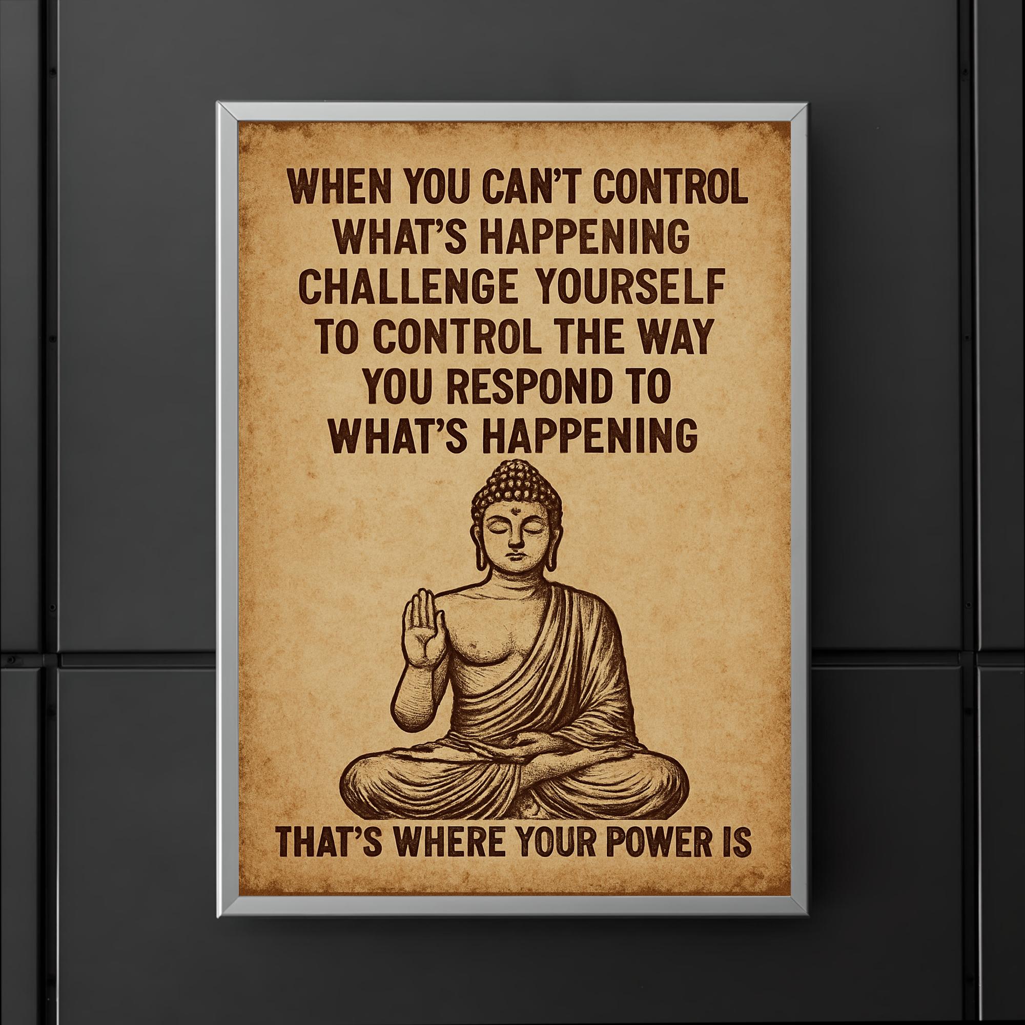 Embrace serenity and mindfulness with this inspiring Buddha art poster, reminding you that while you may not control every event, you hold the power over your response. Perfect for creating a calm, reflective space, it encourages inner peace and thoughtful living every day.