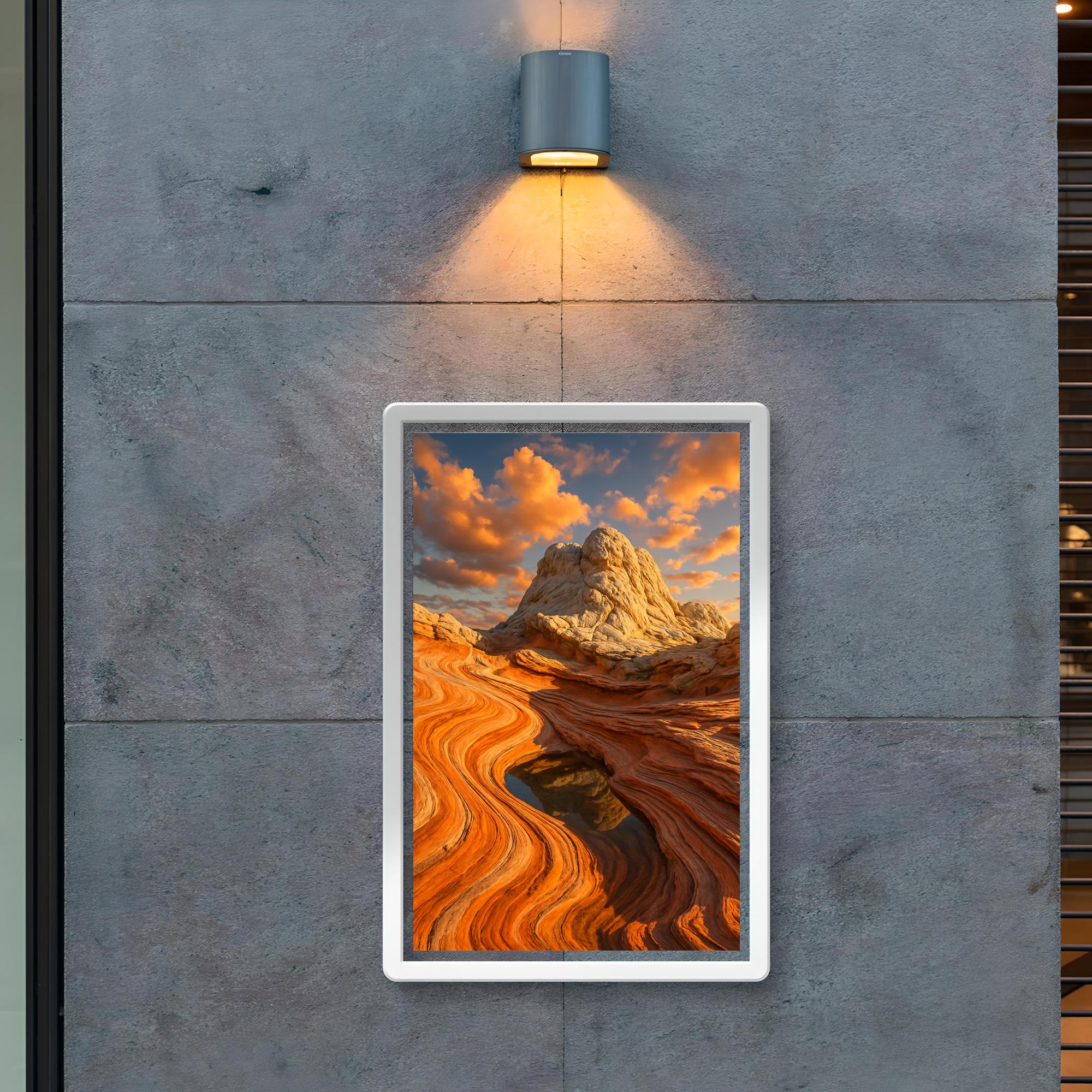 Transform your space with this stunning poster of White Pocket, Arizona—a rare and breathtaking geological marvel. The intricate patterns and natural textures captured in this artwork invite you to explore the beauty of one of the Southwest’s most unique landscapes right from your home. Perfect for adventurers and art lovers alike, this poster brings a slice of the wild, untouched desert into any room.