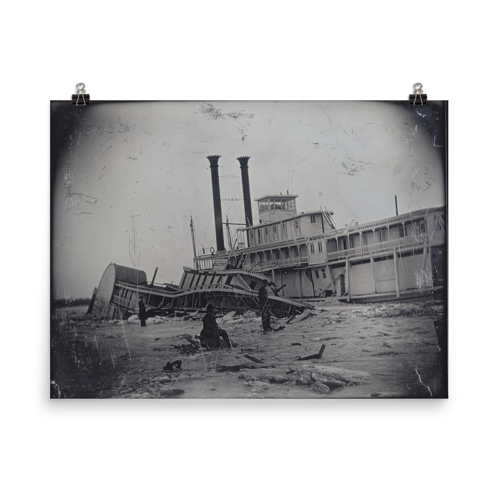 Wreck of Steamer Calypso & Empire City on Ice 1865 Historic Missouri Poster Print Wall Art by Thomas Easterly